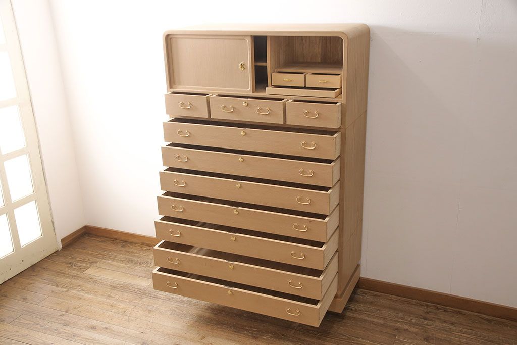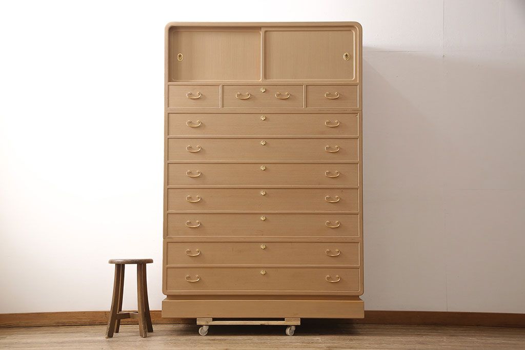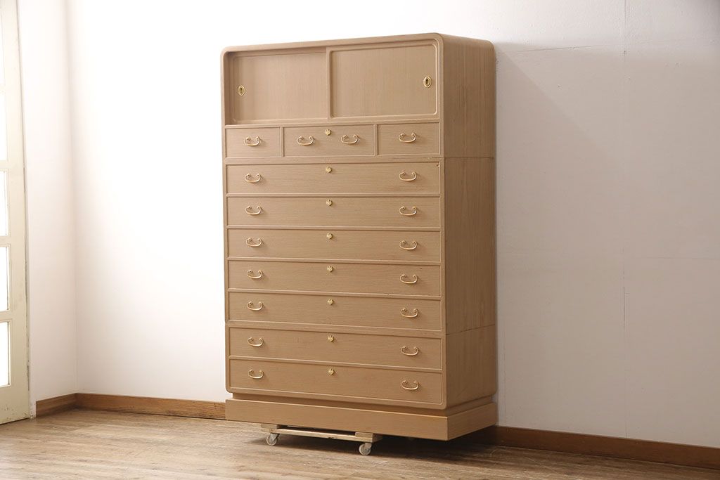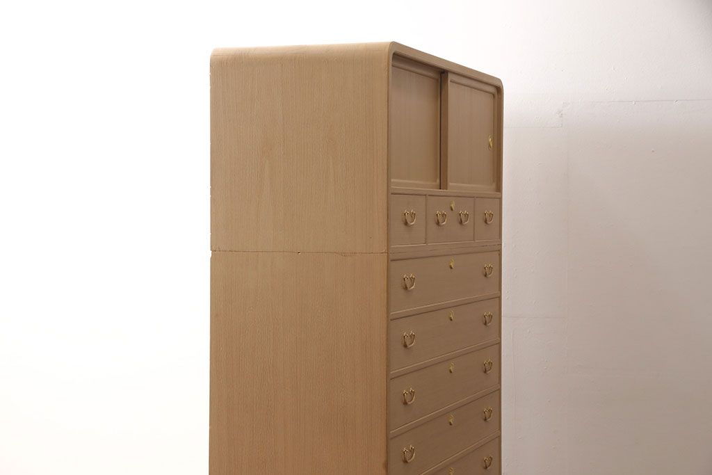 ラフジュ工房> 民芸家具 > 中古 伝統工芸 上品な佇まいが魅力の総桐紀州箪笥(四方丸、胴厚、総桐箪笥、桐たんす、引き出し、チェスト、衣装箪笥)(定価約140万円)(R-053579)