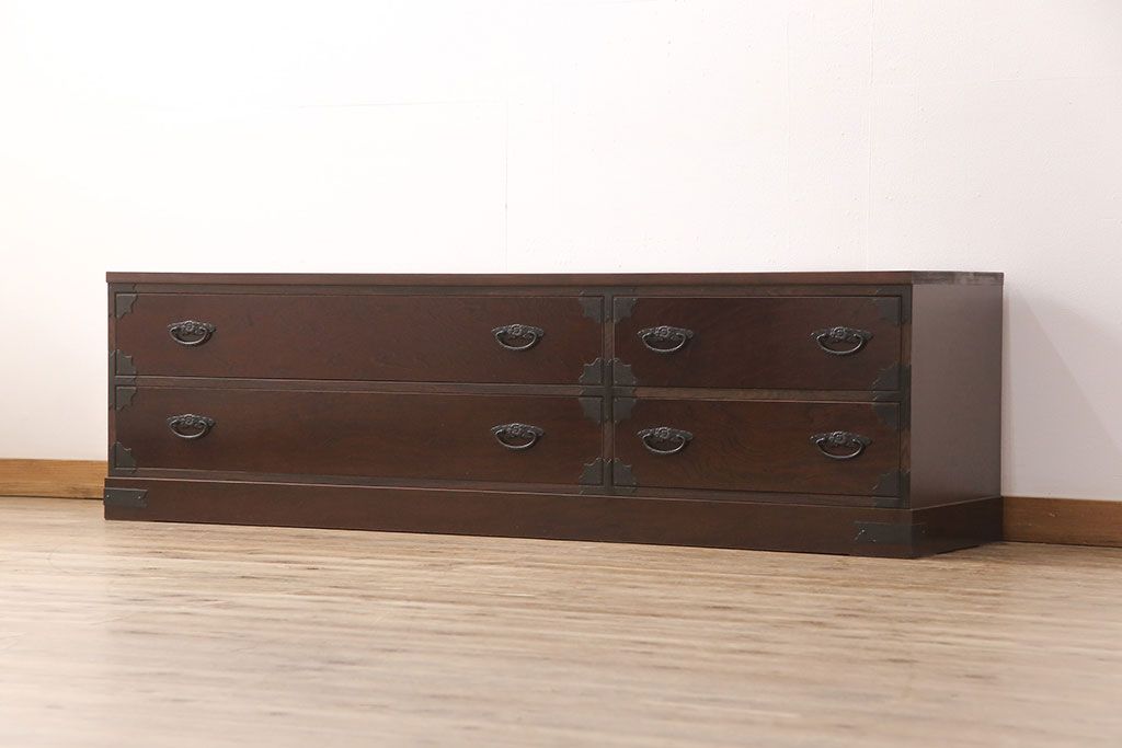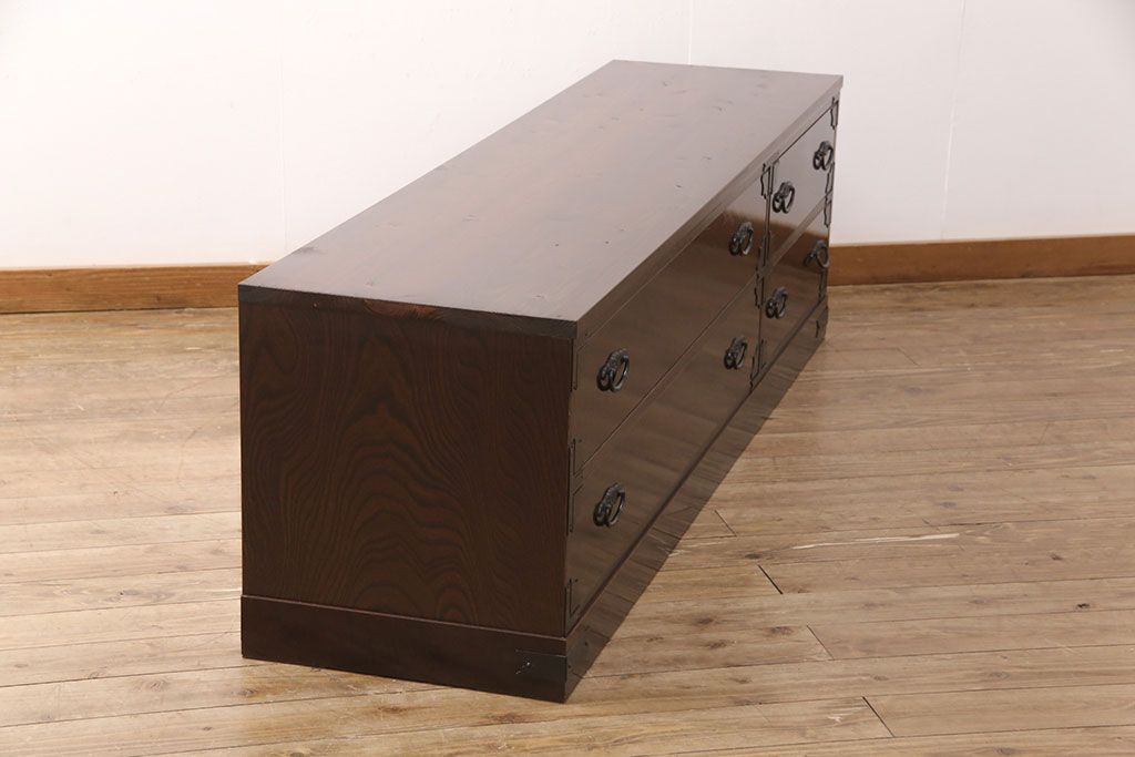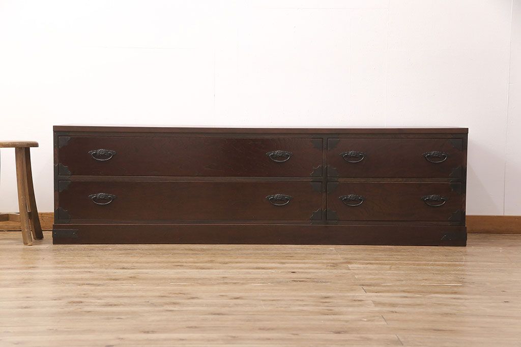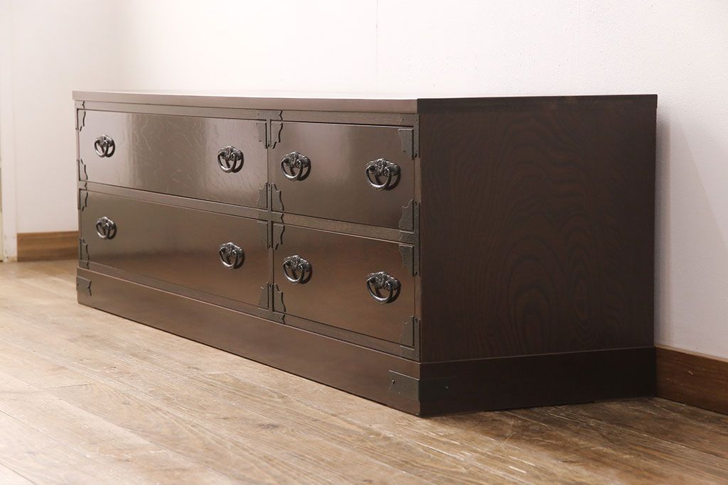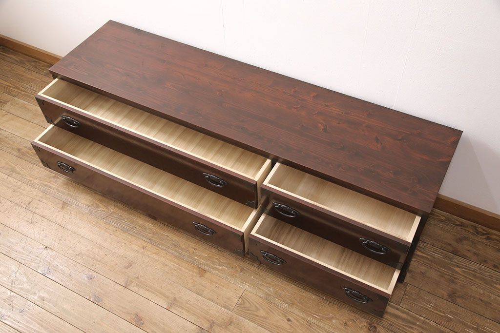 キャビネット・戸棚> テレビ台・ローボード > 民芸箪笥をリペア&カスタム!3段から2段へ段数を変更しローボードにリメイク。天板を新たに製作。1トーン落ち着いた色味に着色し仕上げ。(トーチェスト、テレビ台、テレビボード、引き出し)