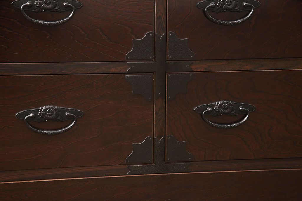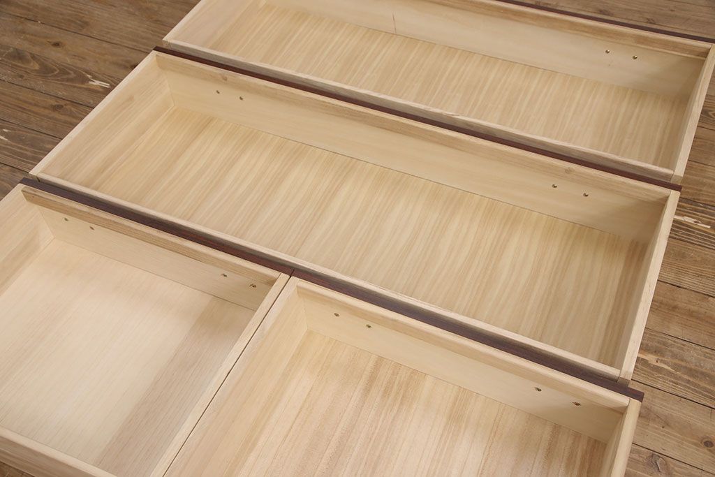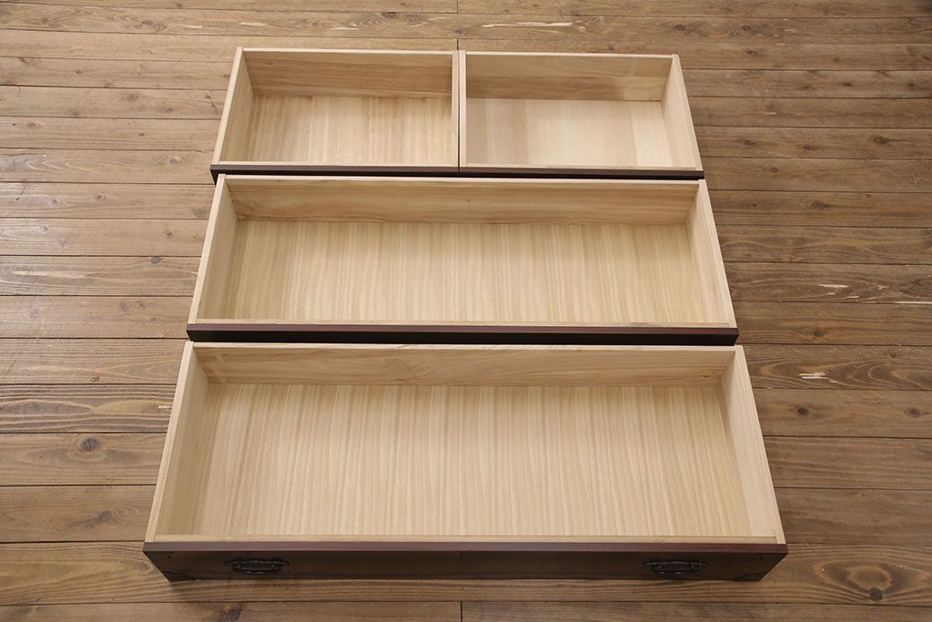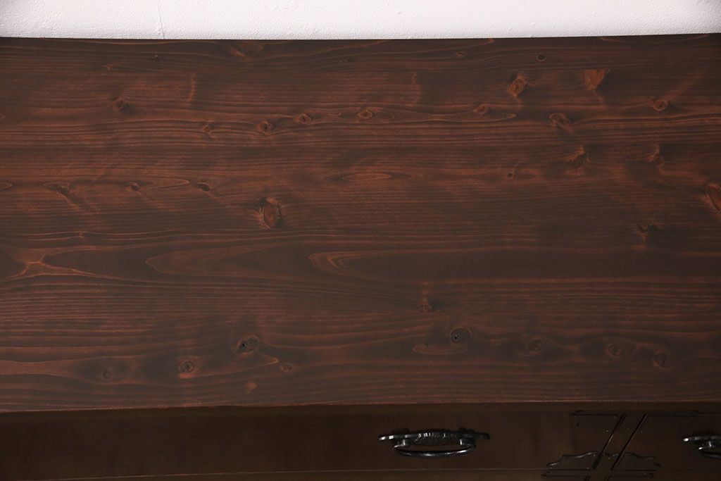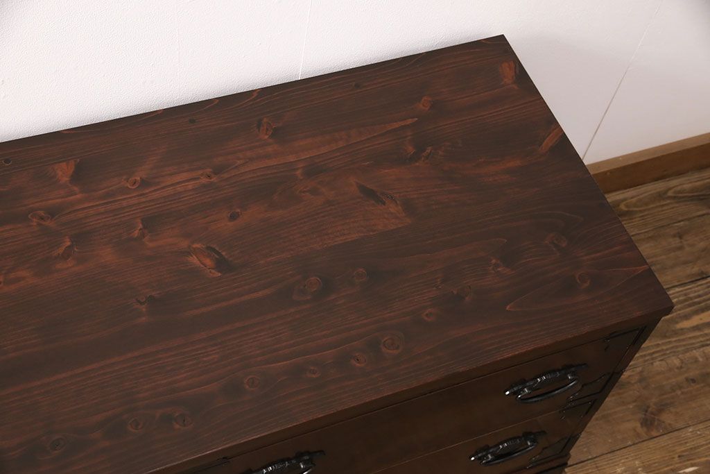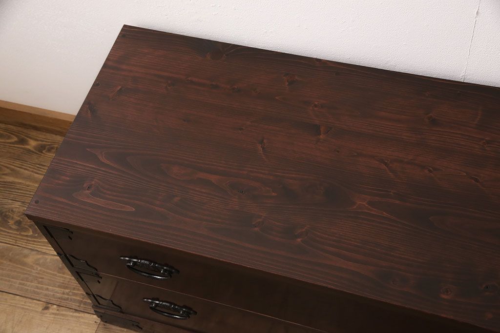 民芸家具 > 民芸箪笥をリペア&カスタム!3段から2段へ段数を変更しローボードにリメイク。天板を新たに製作。1トーン落ち着いた色味に着色し仕上げ。(トーチェスト、テレビ台、テレビボード、引き出し)
