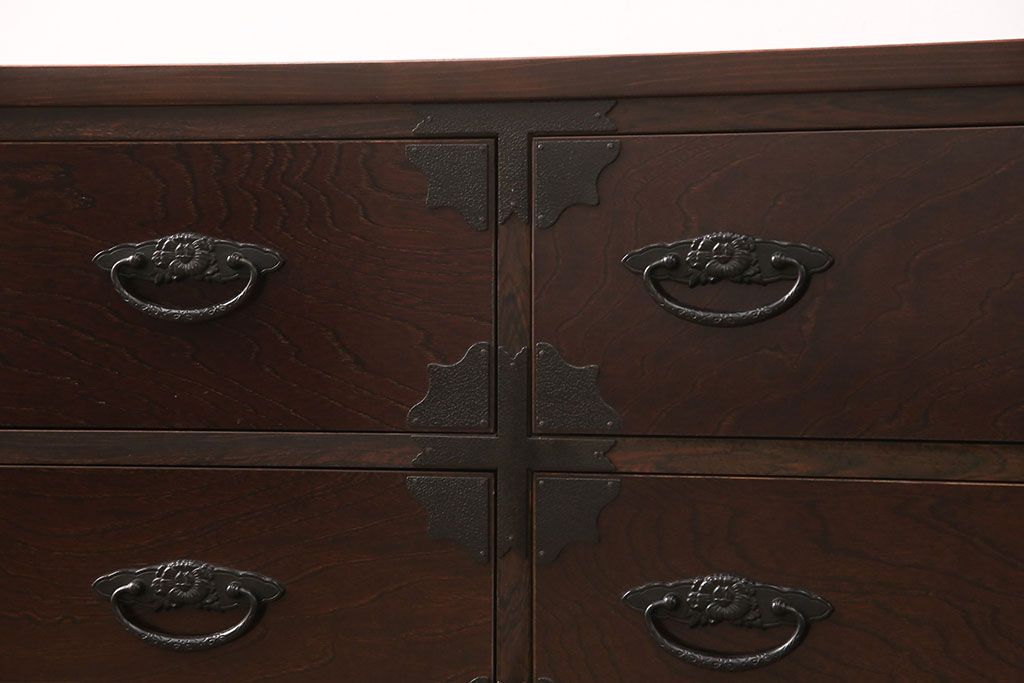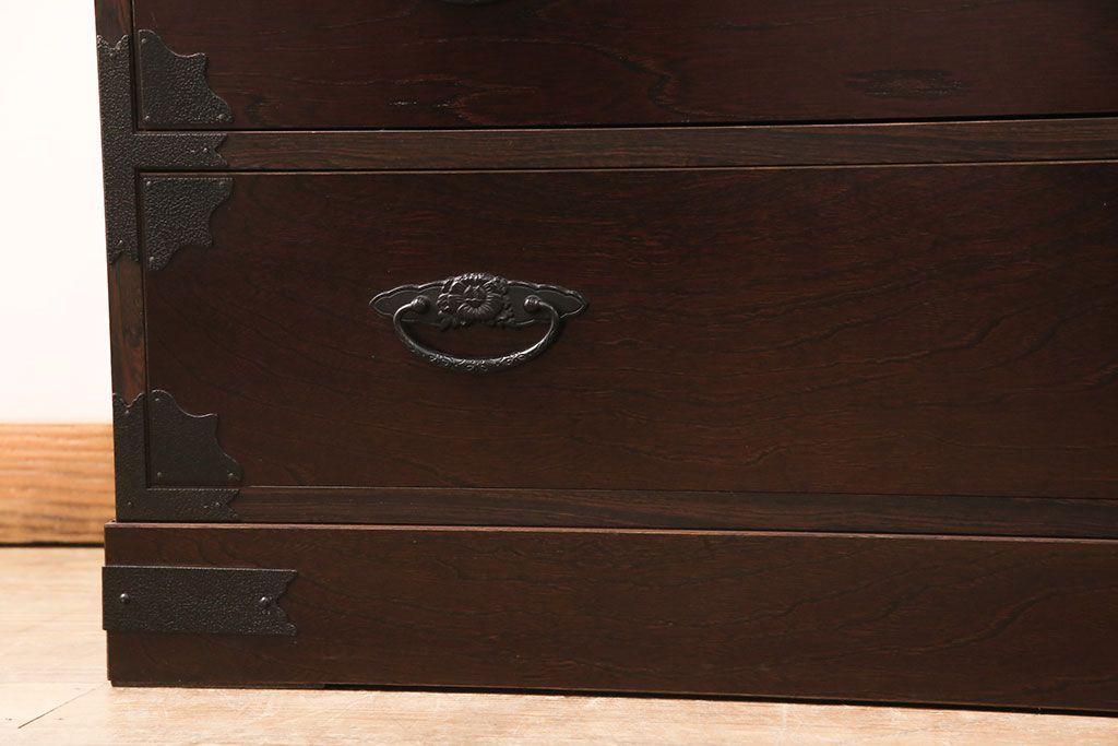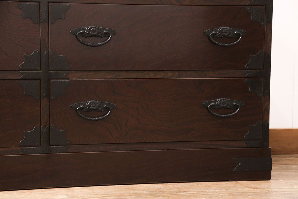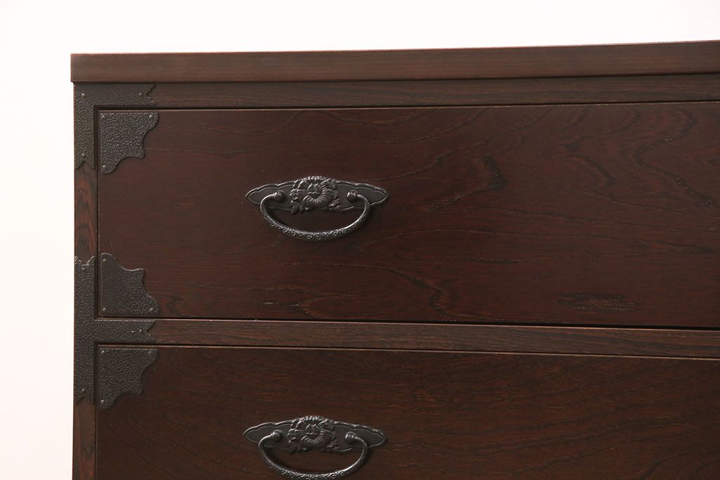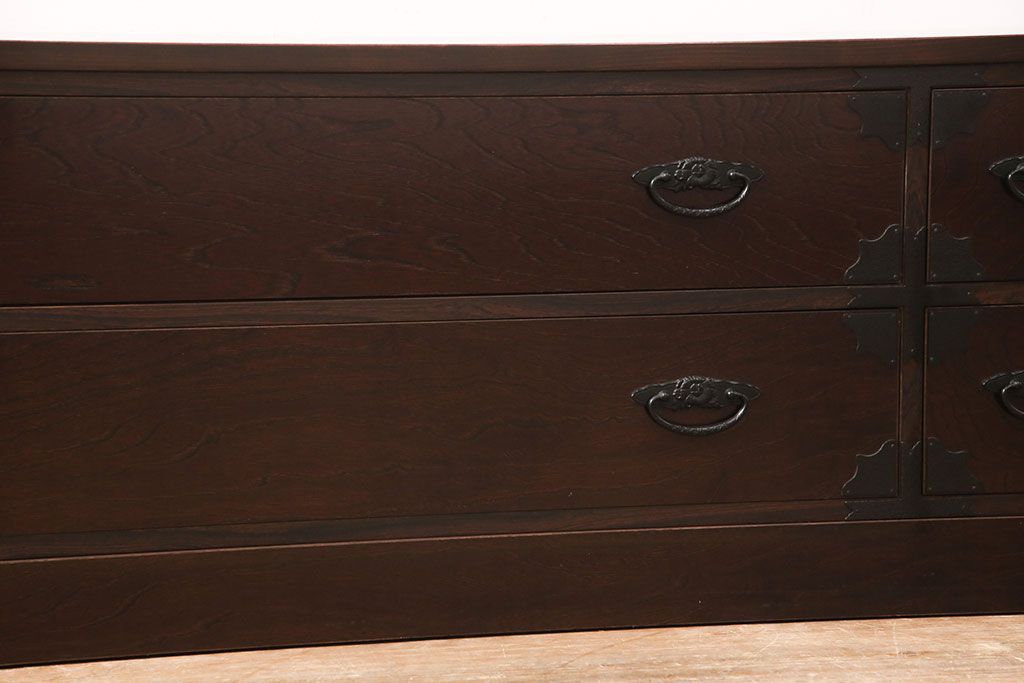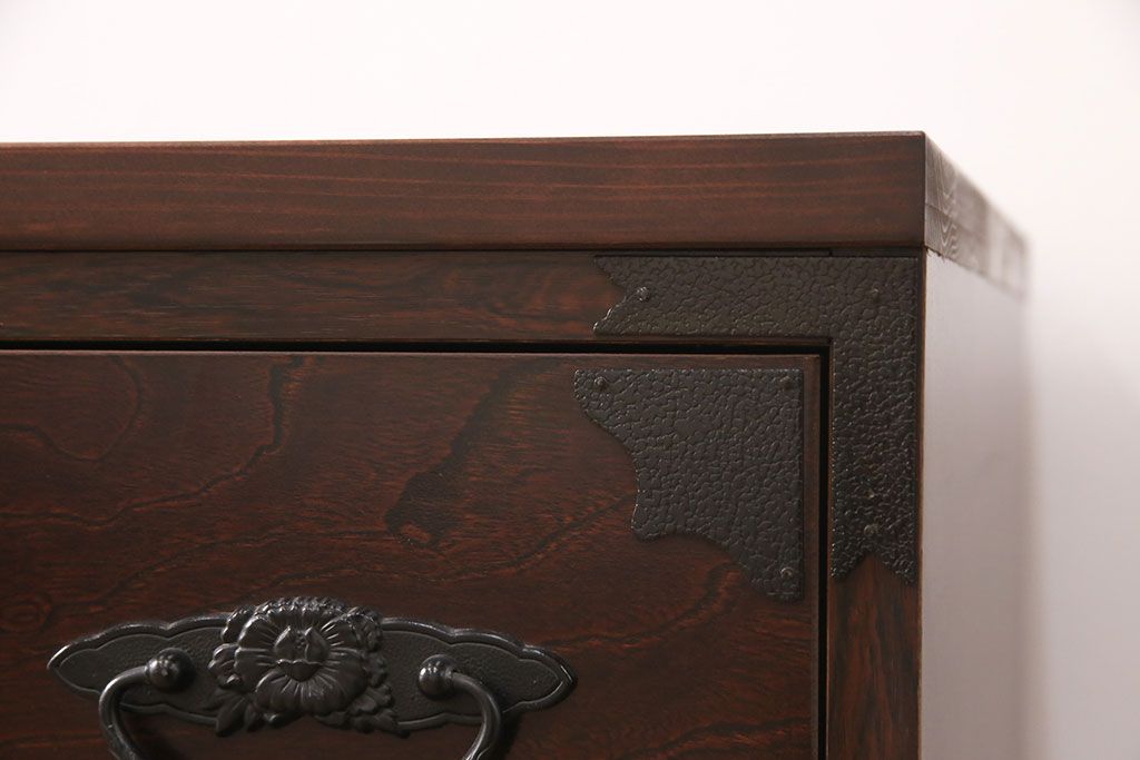 民芸家具 > 民芸箪笥をリペア&カスタム!3段から2段へ段数を変更しローボードにリメイク。天板を新たに製作。1トーン落ち着いた色味に着色し仕上げ。(トーチェスト、テレビ台、テレビボード、引き出し)