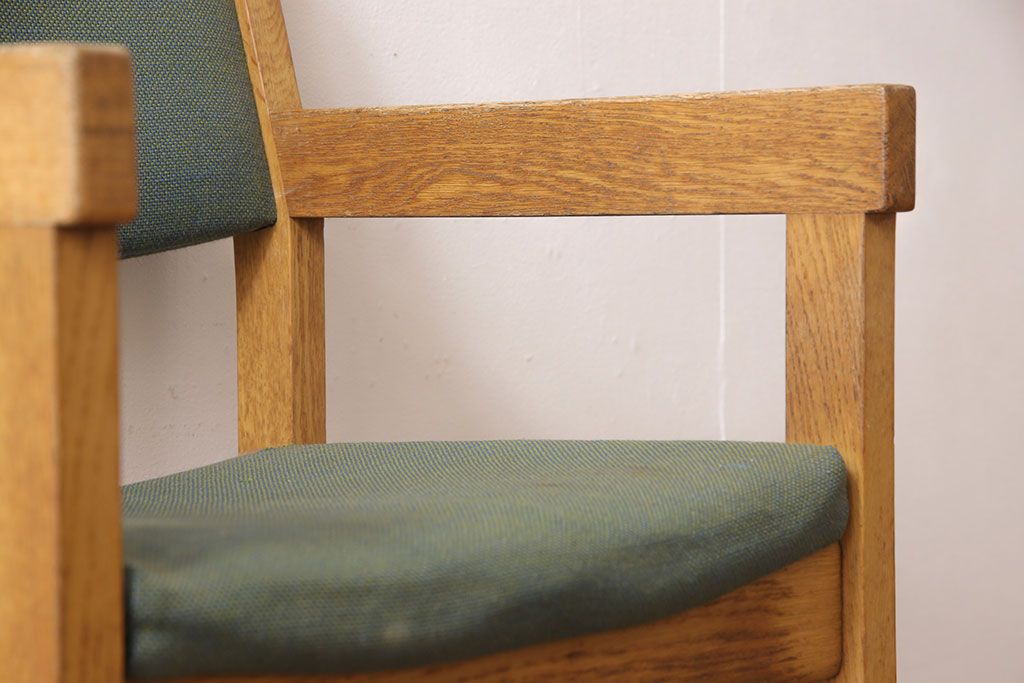 状態が気になる方には現状販売はおすすめできませんので、慎重なご検討をお願いいたします。デンマークビンテージ Hans J Wegner(ハンス・J・ウェグナー) GETAMA(ゲタマ) CONFERENCECHAIR オーク材 洗練された佇まいが目を引くカンファレンスチェア(アームチェア、イス、椅子、ダイニングチェア、ヴィンテージ)(R-052926)です。
