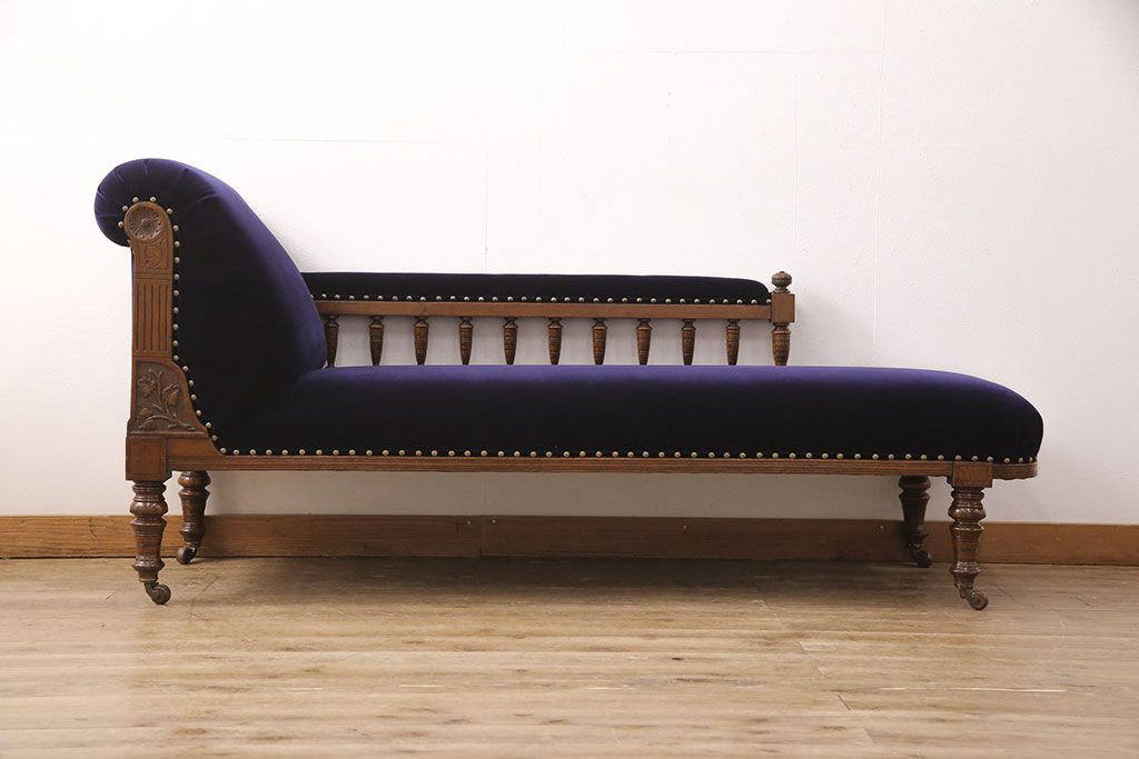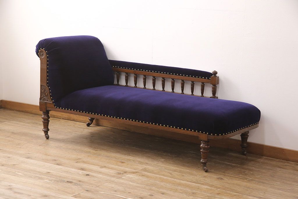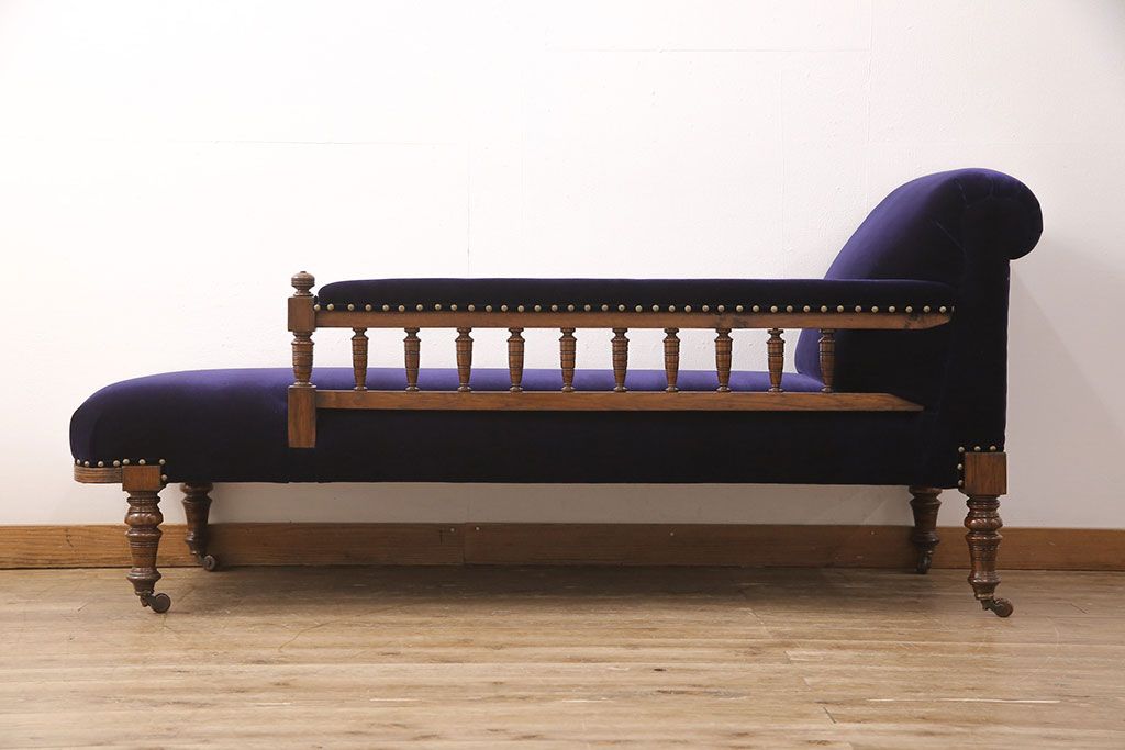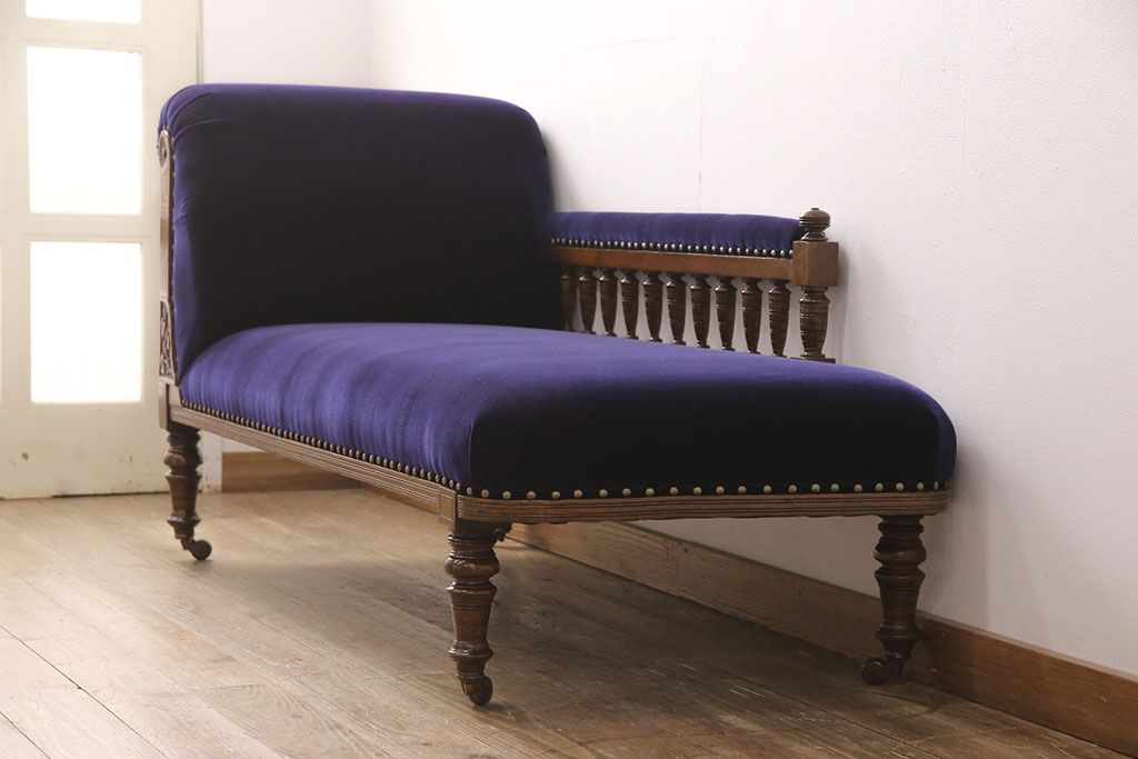 ソファ > イギリスアンティークのシェーズロングをリペア&カスタム!座面と肘置きのウレタンを交換し、指定の生地に張り替え。(カウチソファ、長椅子)