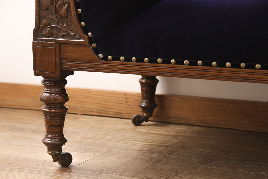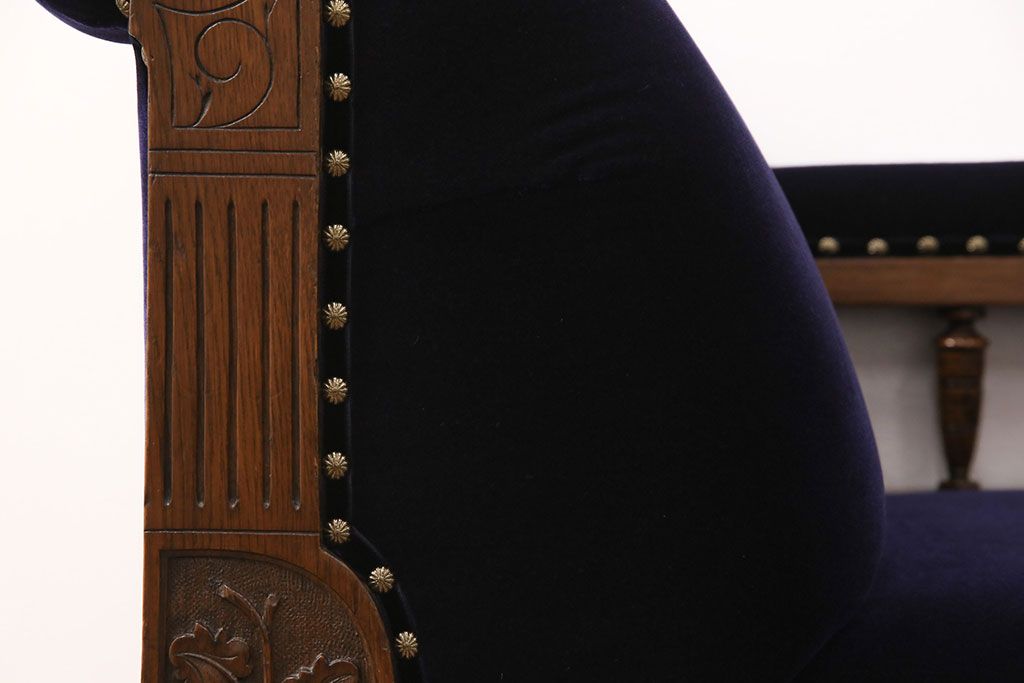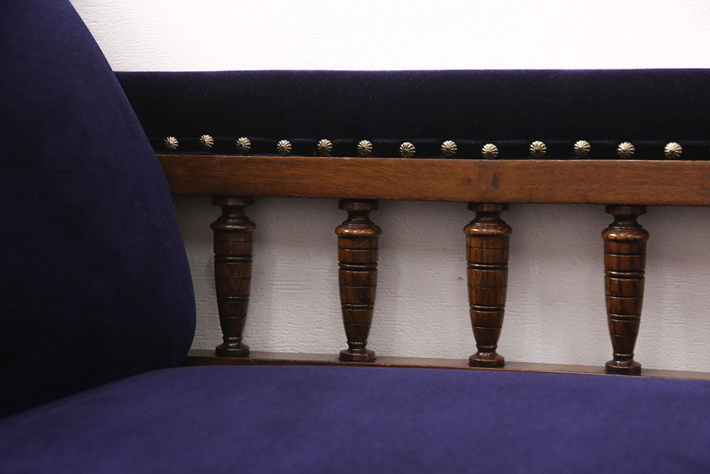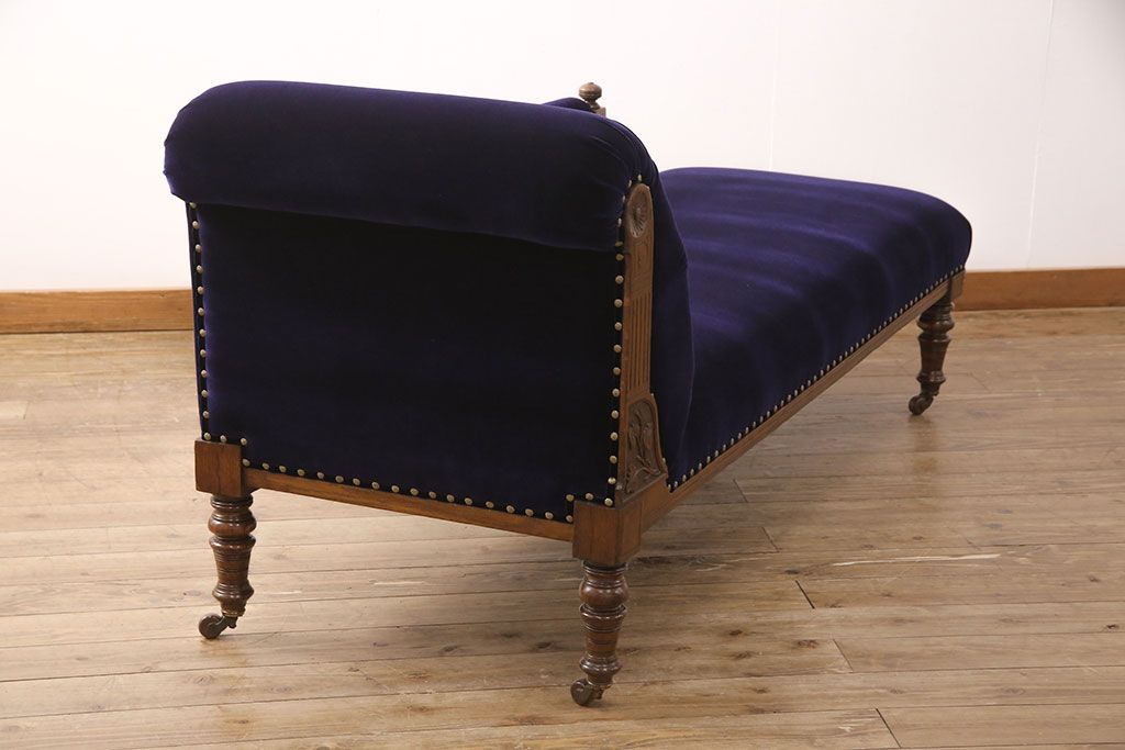 ソファ> 2人掛けソファ > イギリスアンティークのシェーズロングをリペア&カスタム!座面と肘置きのウレタンを交換し、指定の生地に張り替え。(カウチソファ、長椅子)