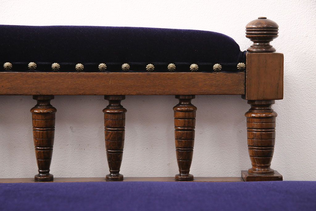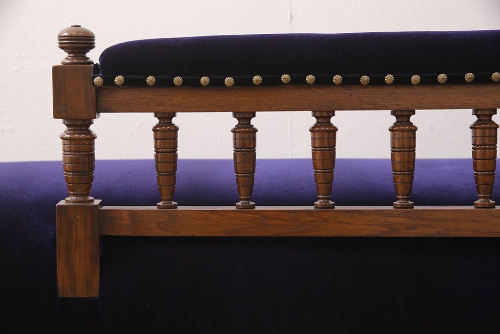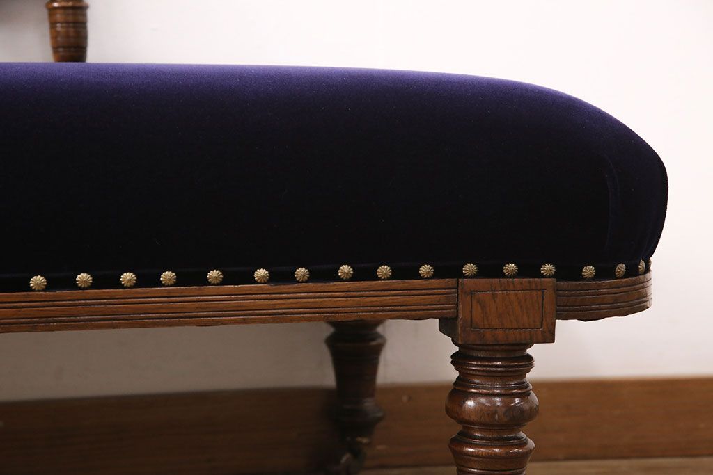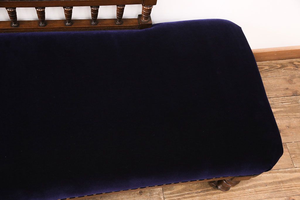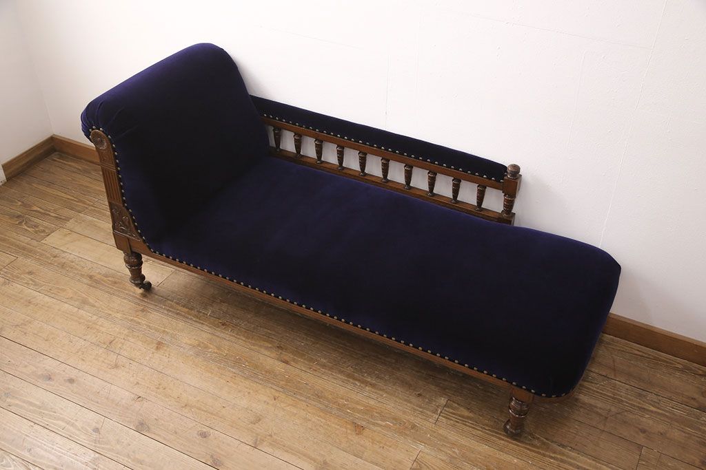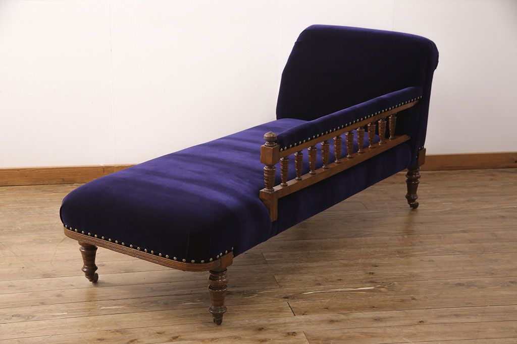 イギリスアンティークのシェーズロングをリペア&カスタム!座面と肘置きのウレタンを交換し、指定の生地に張り替え。(カウチソファ、長椅子)