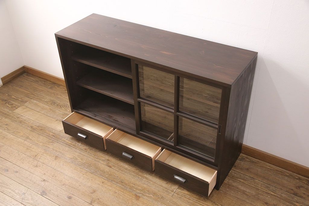収納棚を新規製作!過去のオーダー家具を再現。濃い茶色に着色し仕上げ。(戸棚、食器棚、キャビネット)