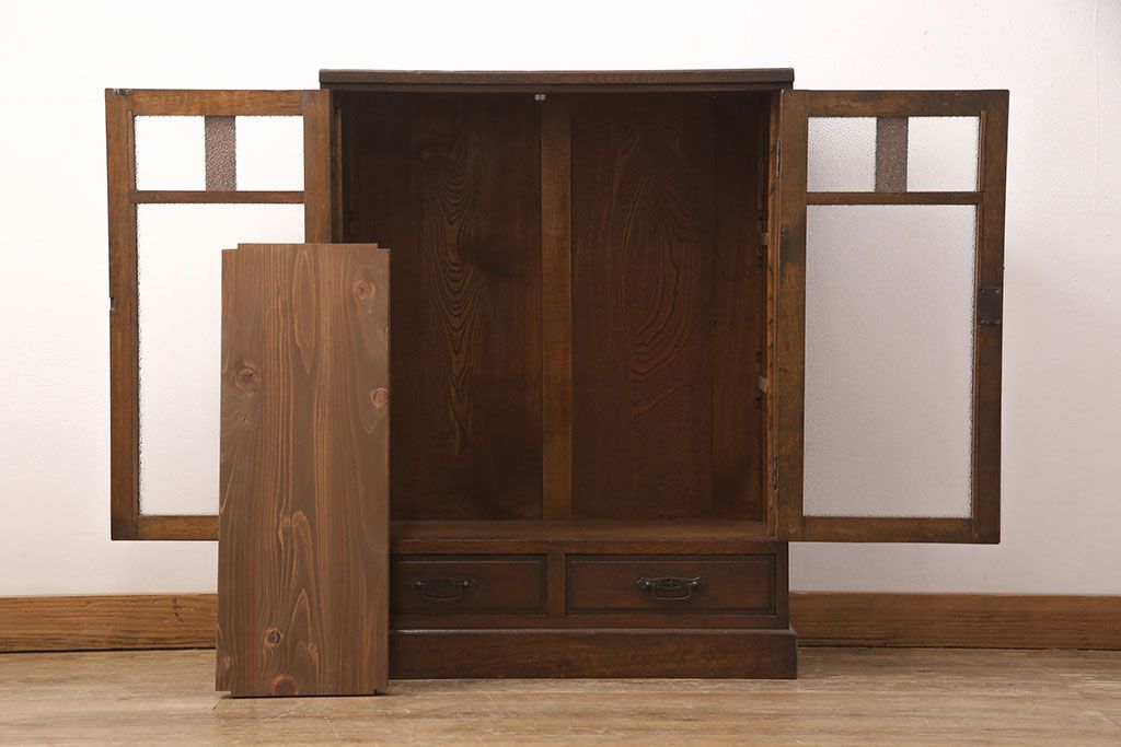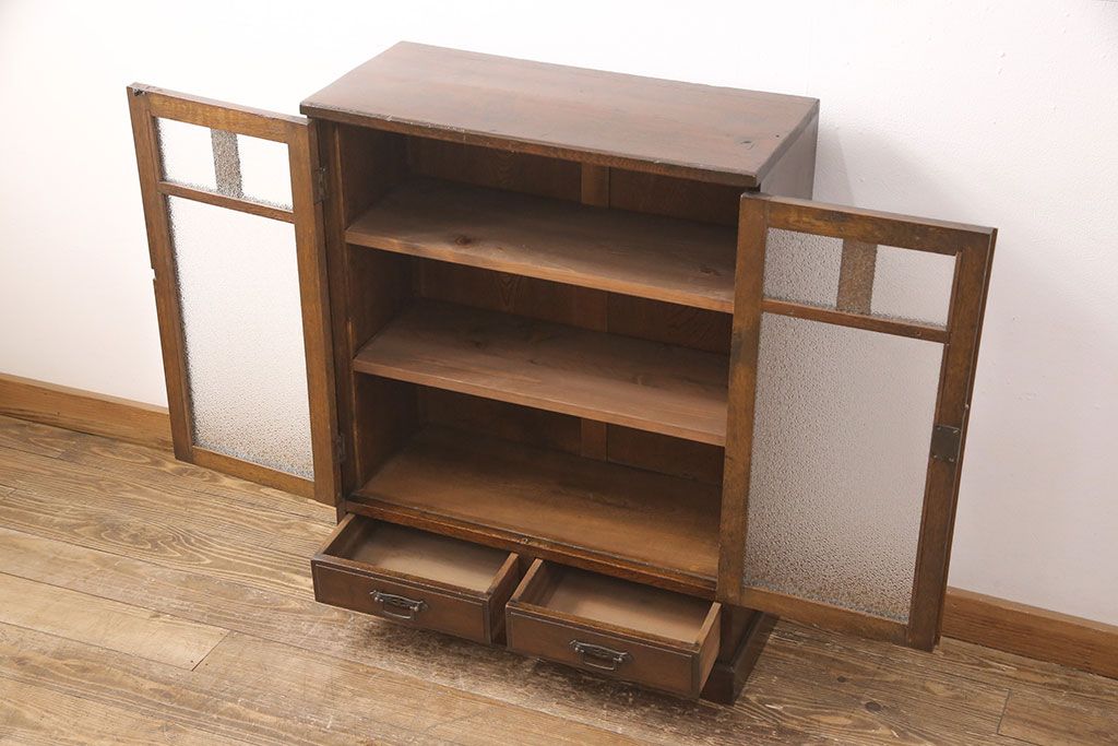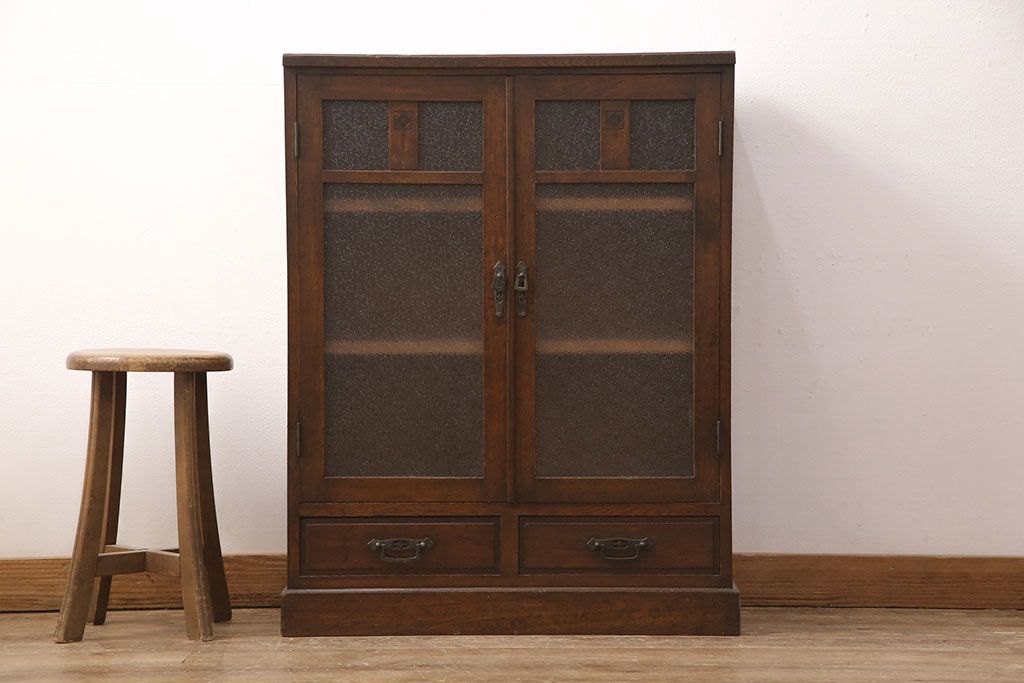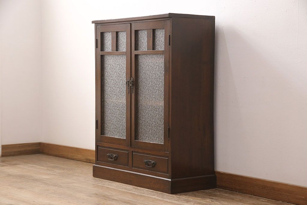 セミオーダー家具実績 > ガラス戸棚を見た目を変えずに綺麗にリペア!欠損した金具を類似品に差し替え、現状に近しい色味に着色し仕上げ。(収納棚、キャビネット)