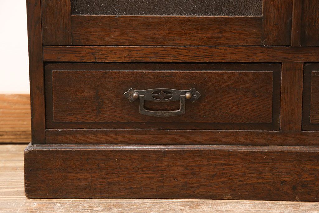 ガラス戸棚を見た目を変えずに綺麗にリペア!欠損した金具を類似品に差し替え、現状に近しい色味に着色し仕上げ。(収納棚、キャビネット)