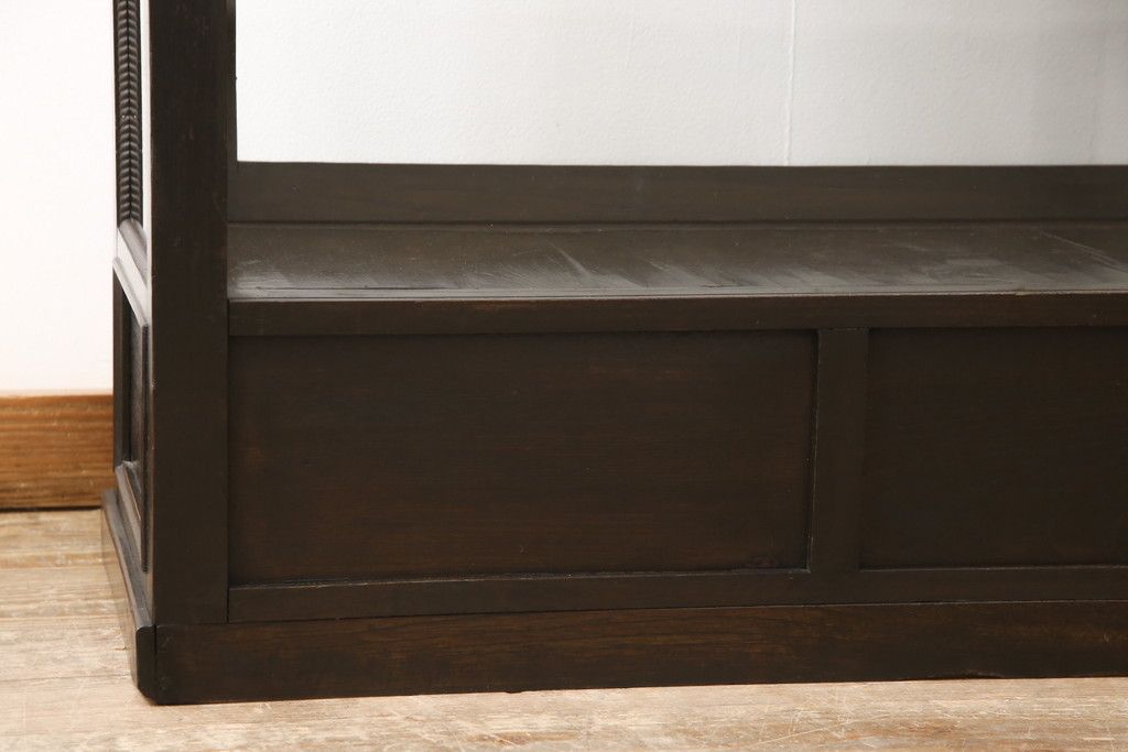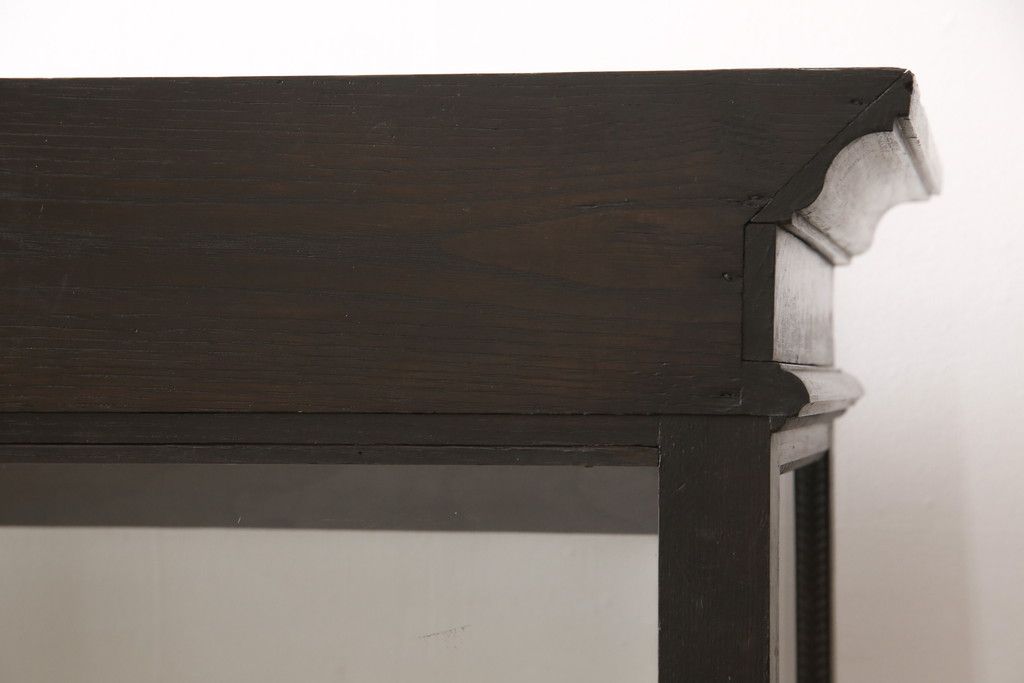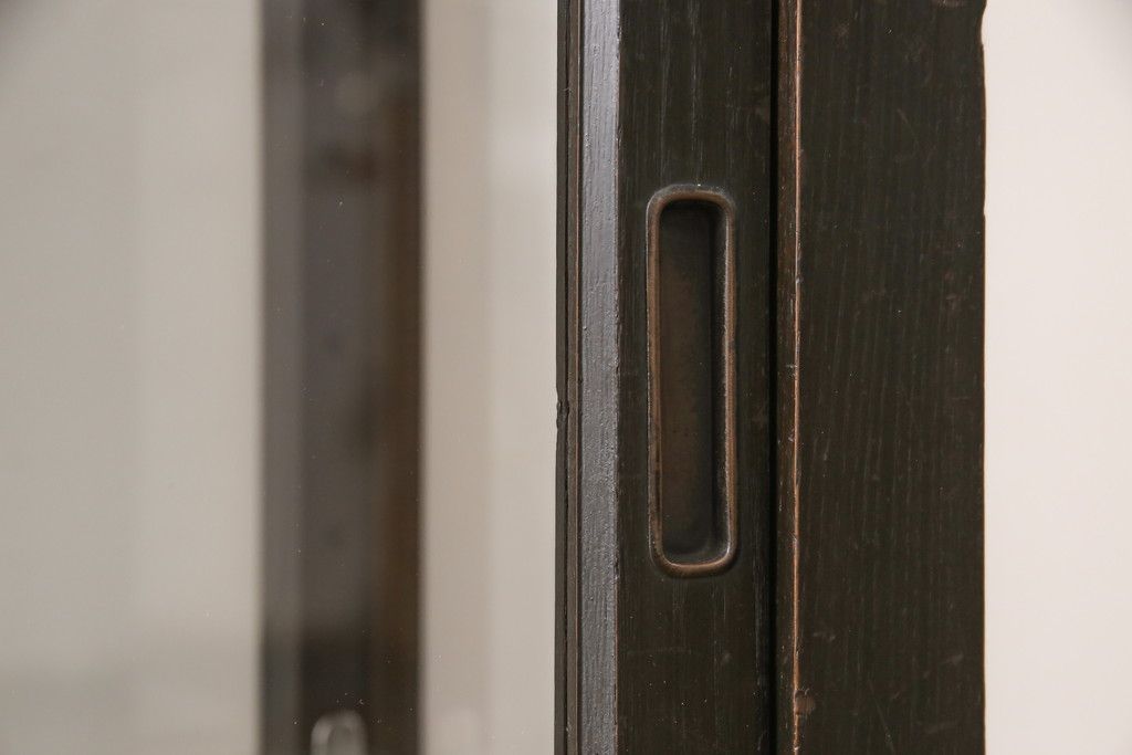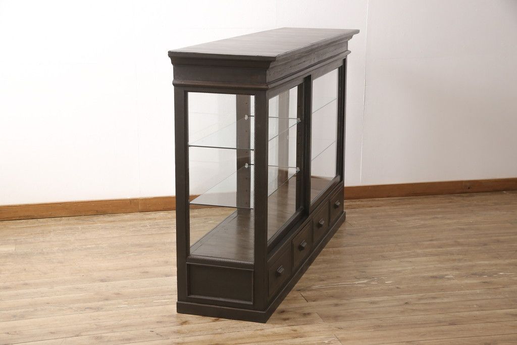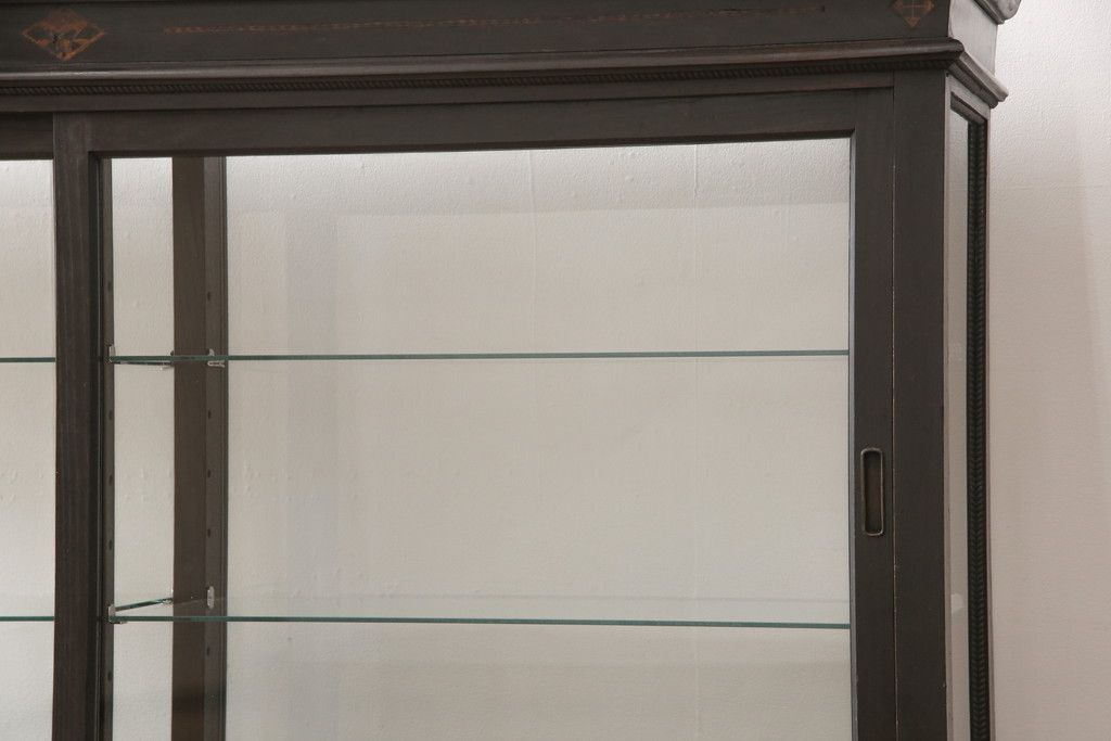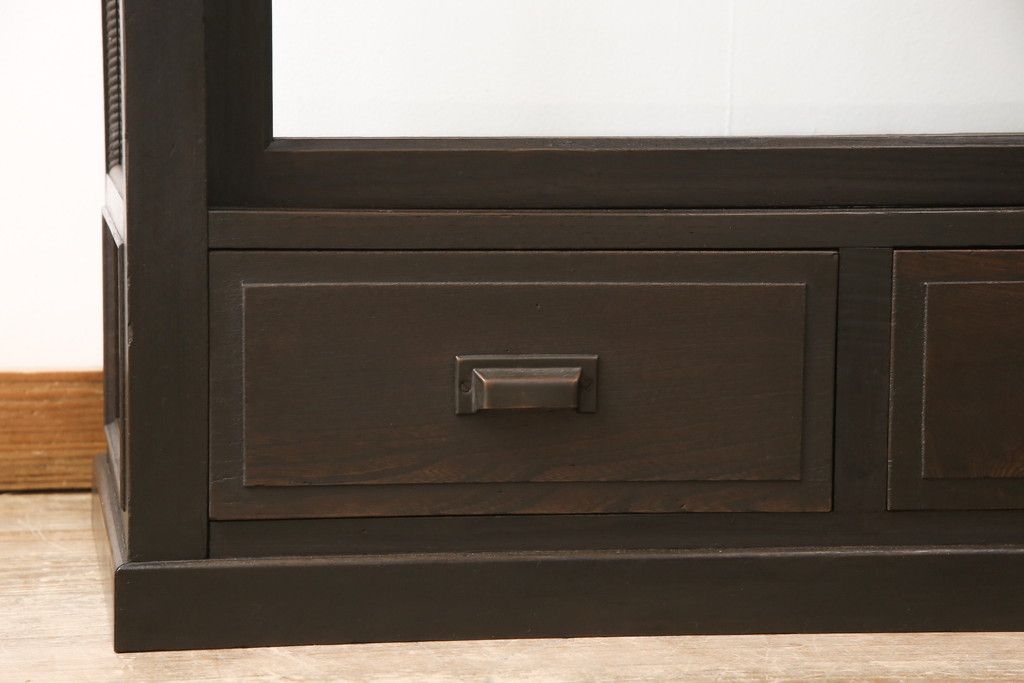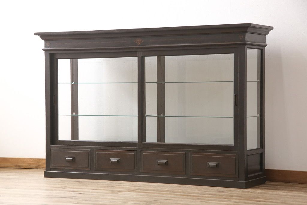 ガラスケースをリペア&カスタム!ガラス製棚板を取り付け、松本民芸家具の色味に近しい着色をし水性ワックス仕上げ。(ショーケース、陳列棚)