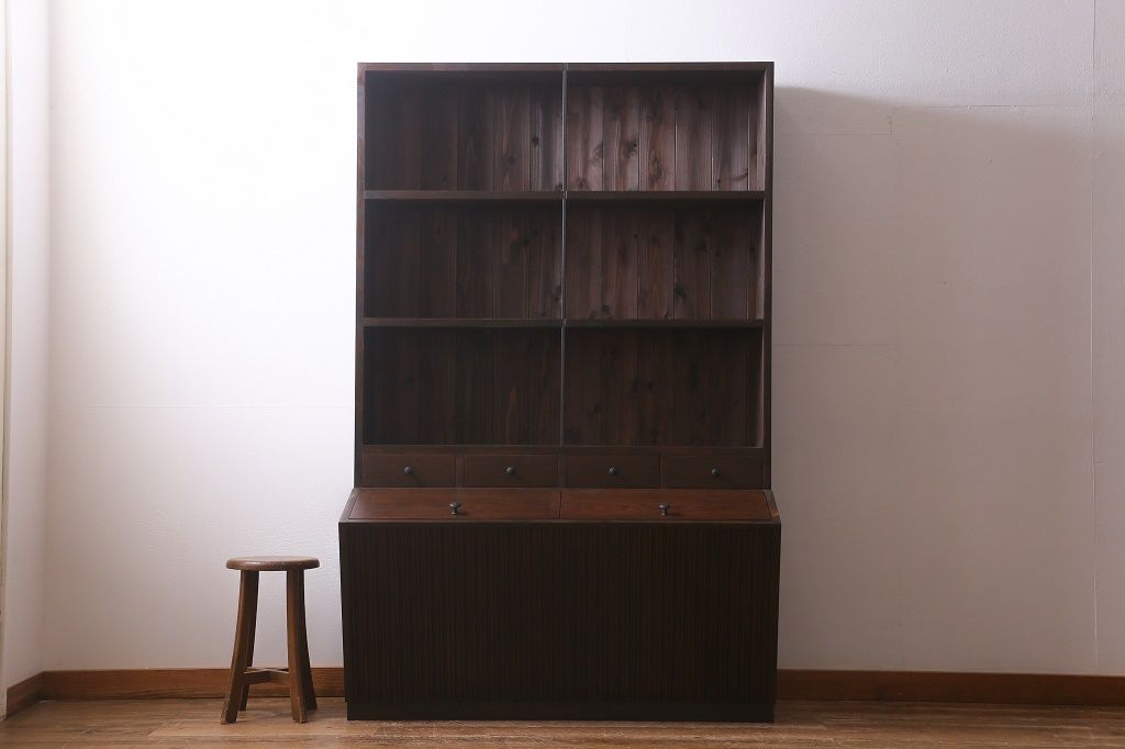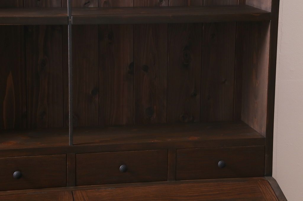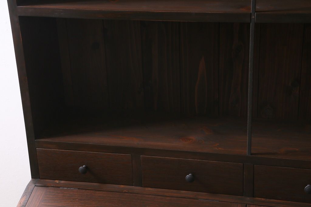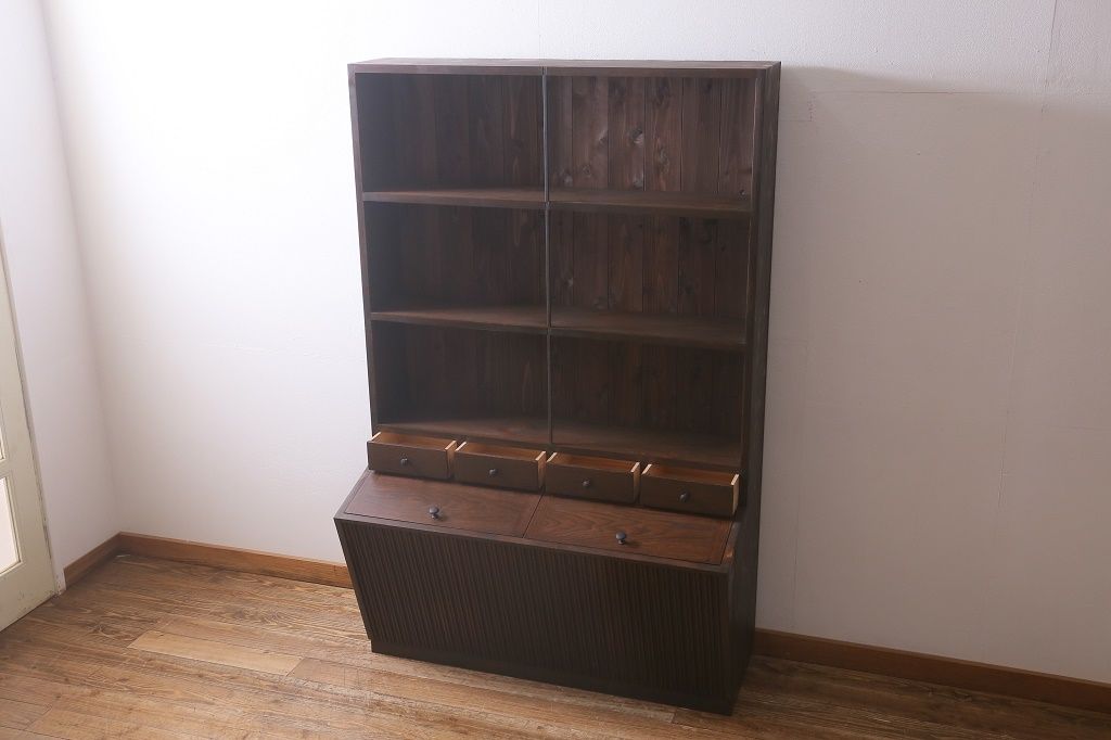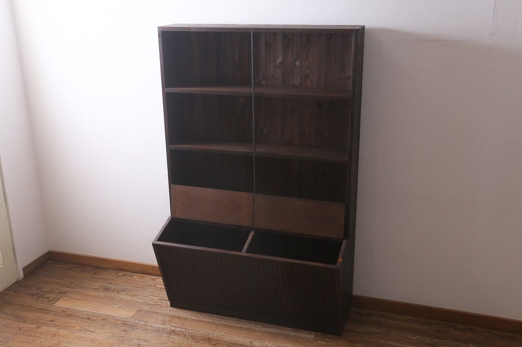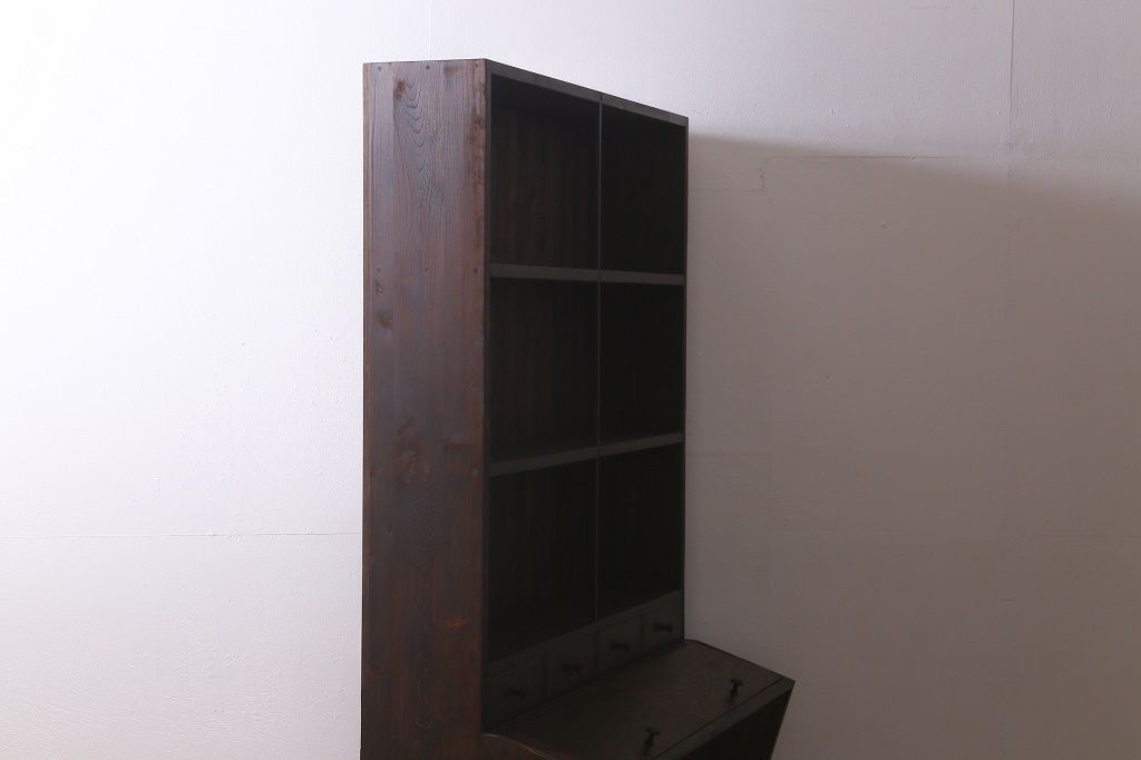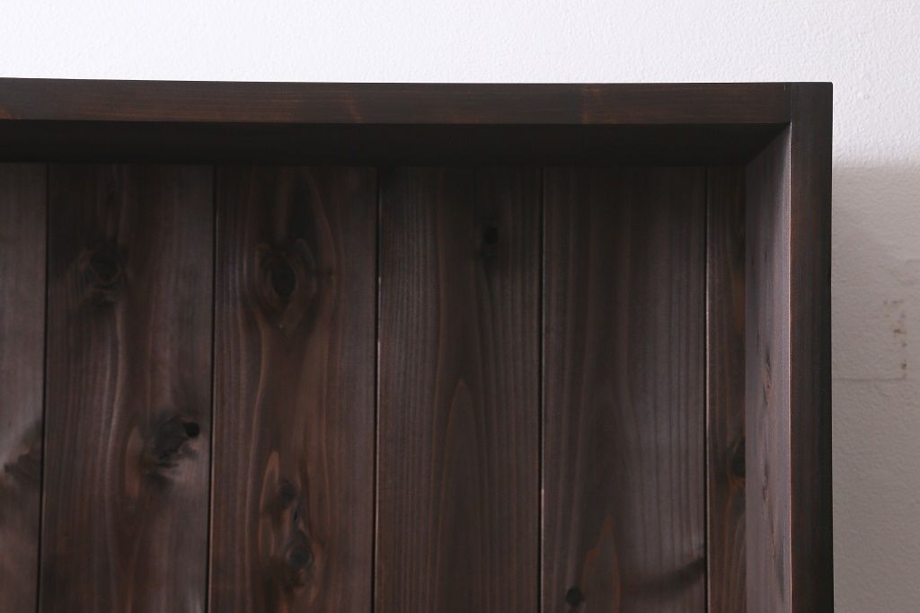 収納棚を新規製作!ラフジュ工房オリジナルのカタログ掲載品を再現。濃い茶色で着色仕上げ。(飾り棚、本棚、オープンラック)