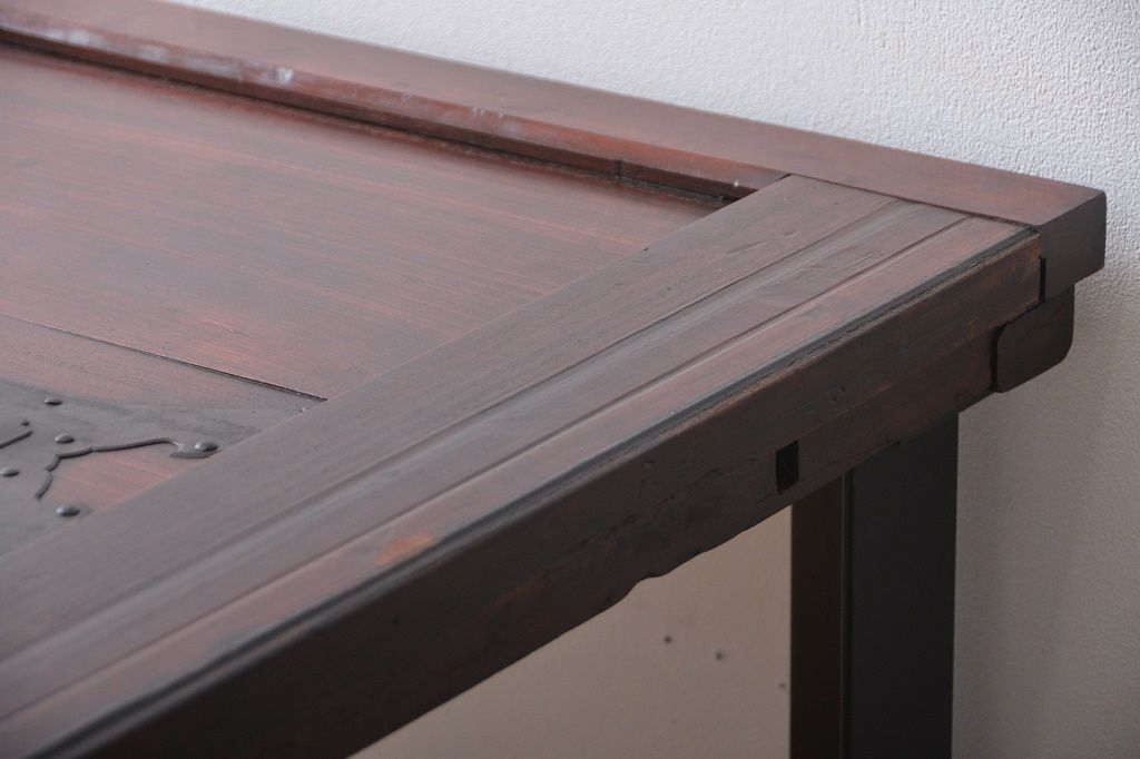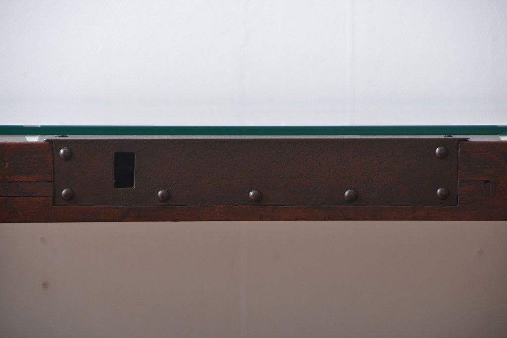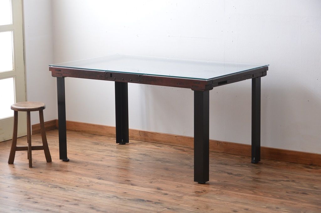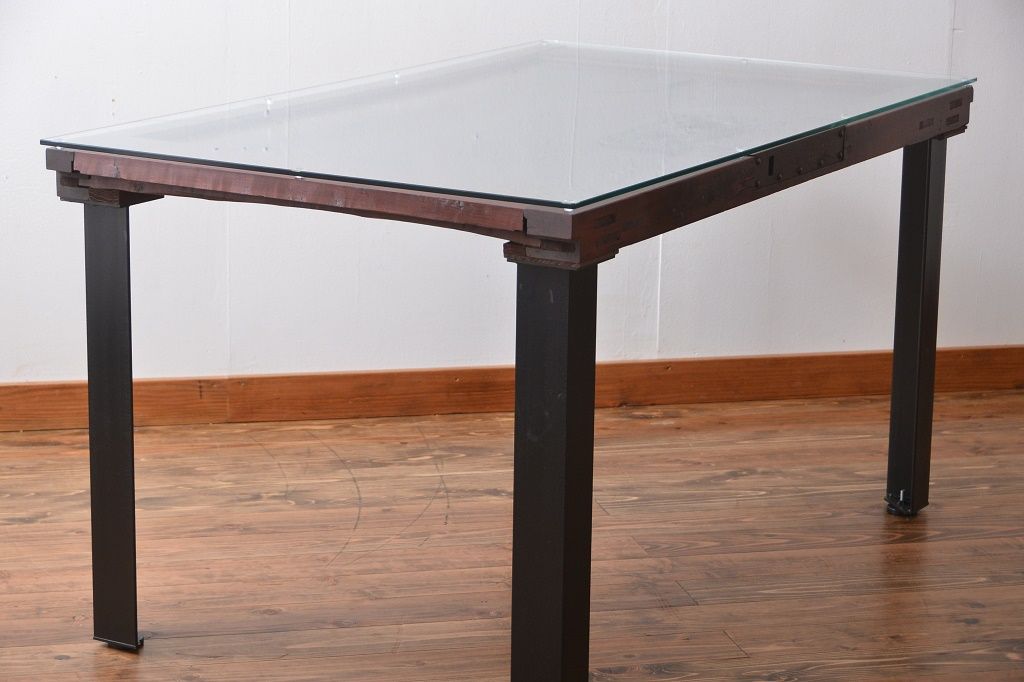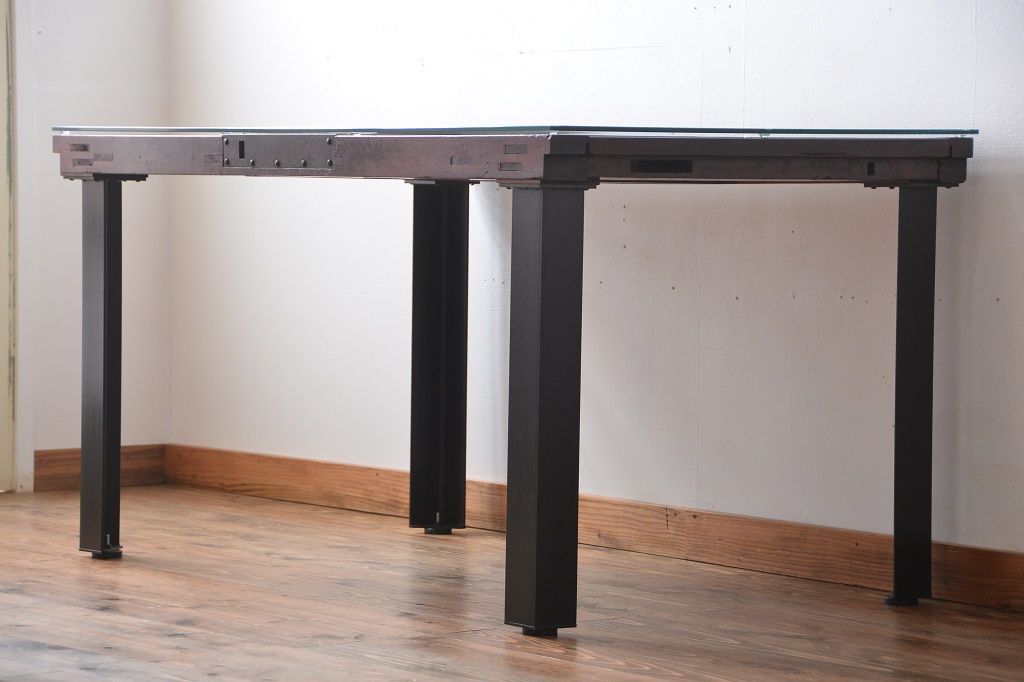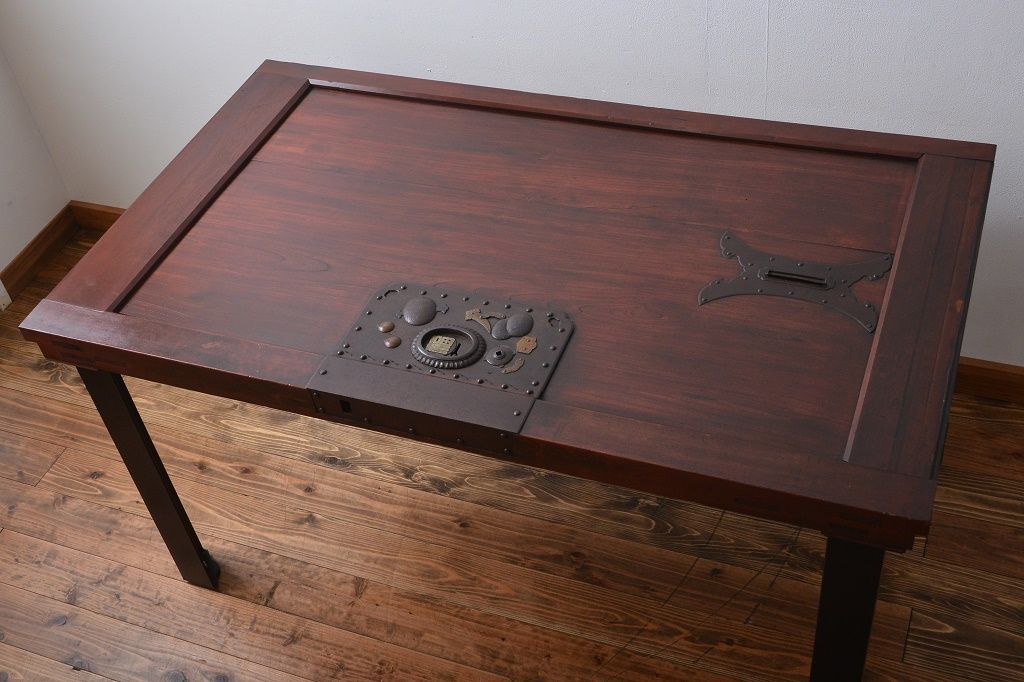 明治期の蔵戸をリペア&カスタム!取り外し可能なガラス天板と鉄脚を取り付けダイニングテーブルにリメイク。(6人掛け、4人掛け、作業台)