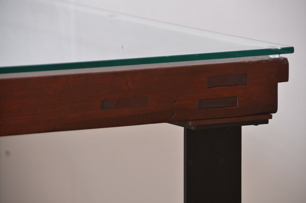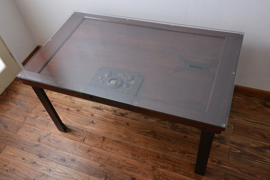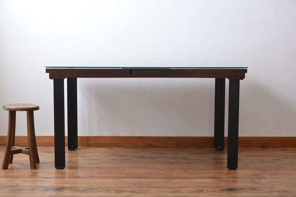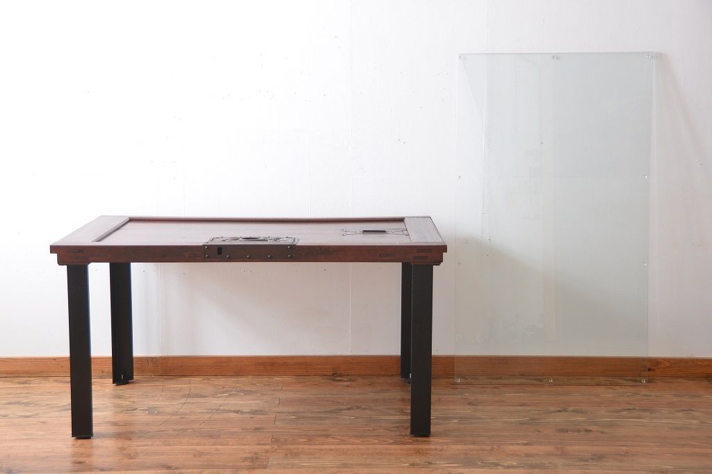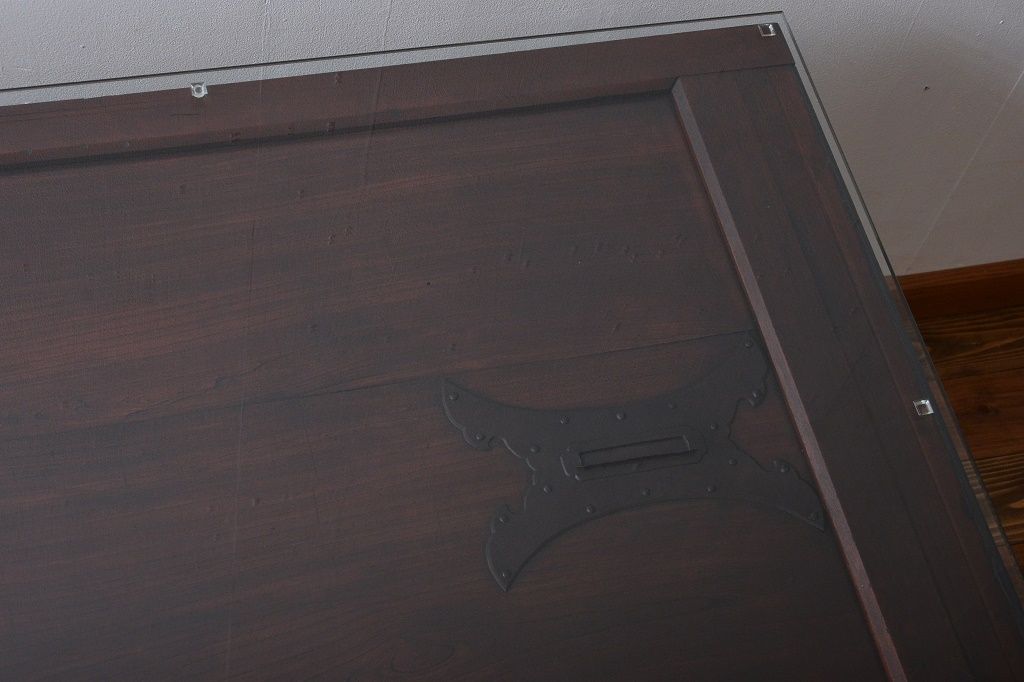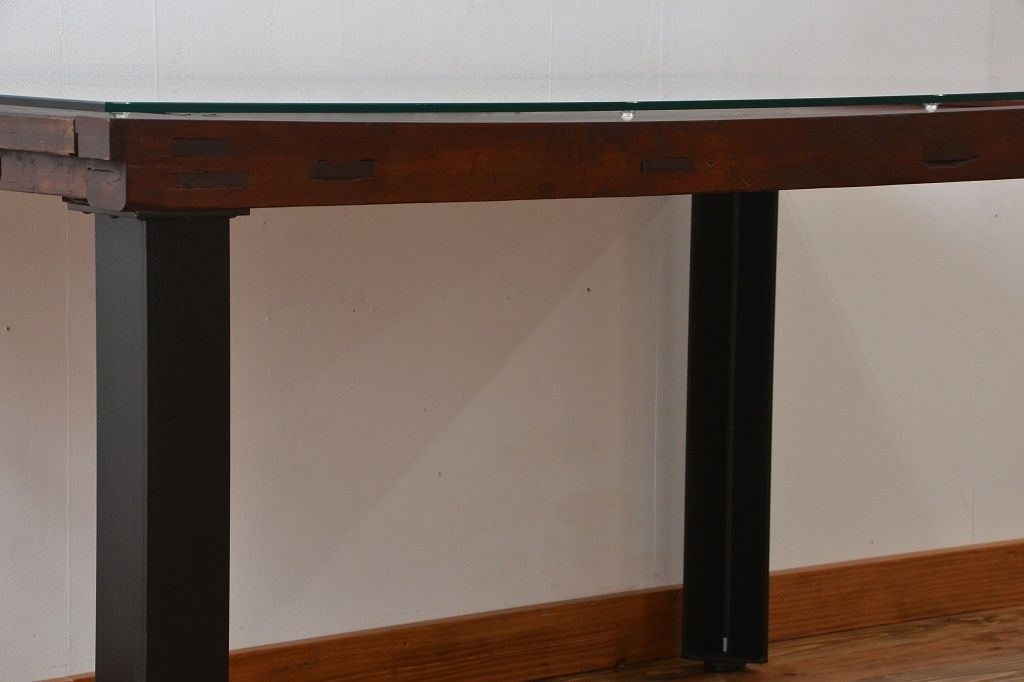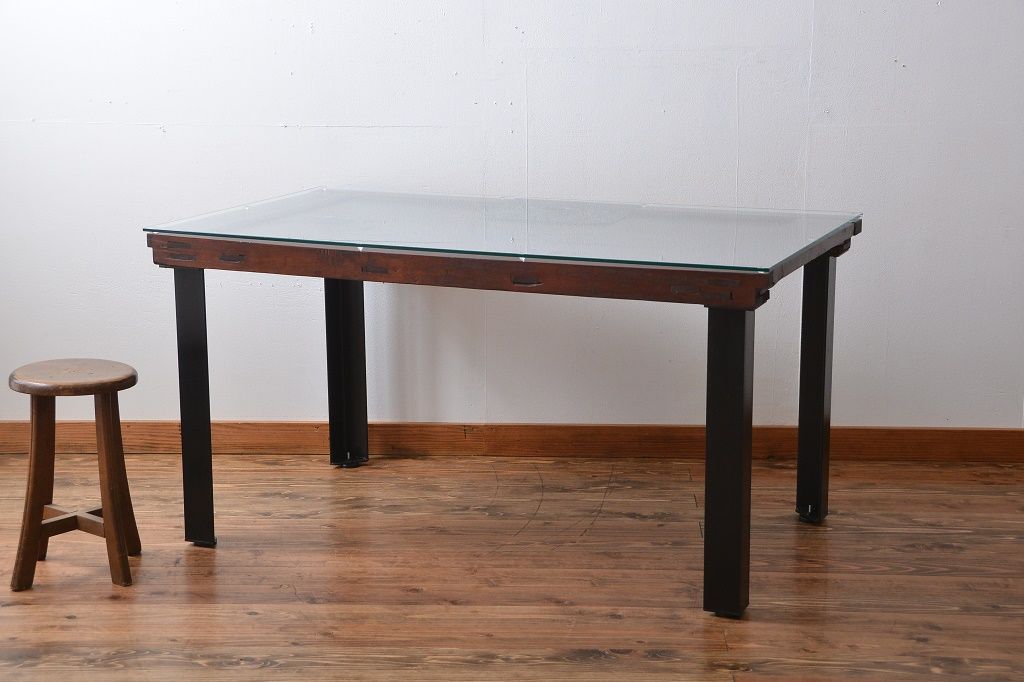 明治期の蔵戸をリペア&カスタム!取り外し可能なガラス天板と鉄脚を取り付けダイニングテーブルにリメイク。(6人掛け、4人掛け、作業台)