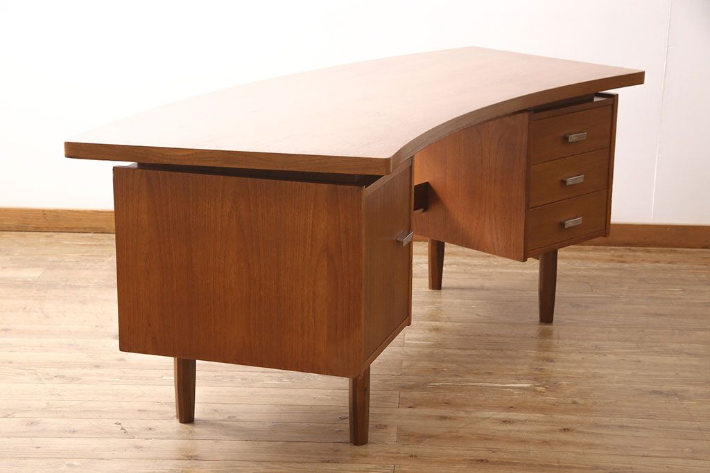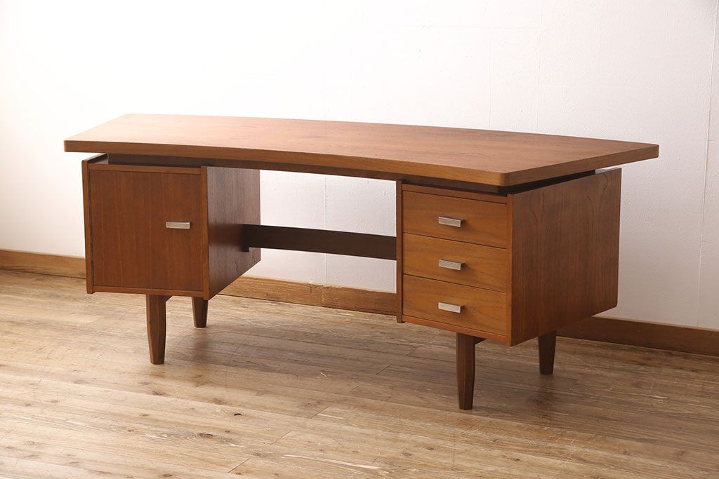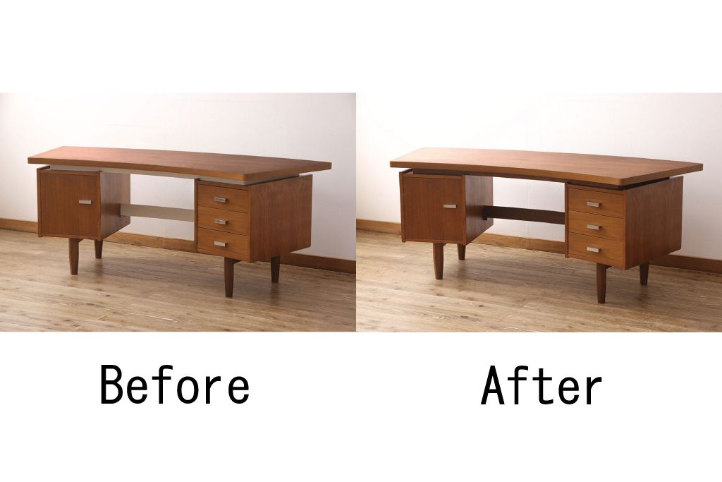 両袖デスクをリペア&カスタム!天板下の隙間埋め加工を施し、白い部分を本体と近しい色味にて着色仕上げ。(机、ワークデスク、オフィスデスク)