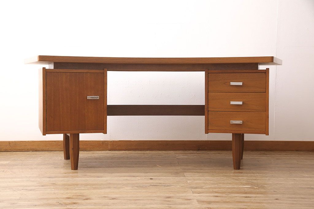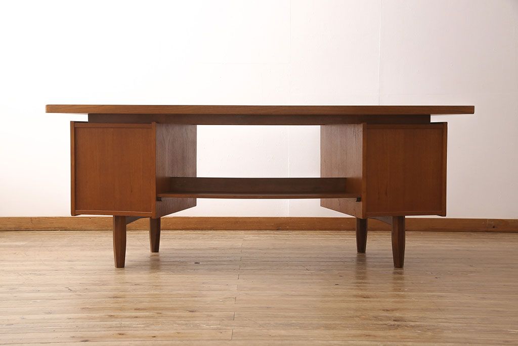 デスク> 片袖机・両袖机 > 両袖デスクをリペア&カスタム!天板下の隙間埋め加工を施し、白い部分を本体と近しい色味にて着色仕上げ。(机、ワークデスク、オフィスデスク)