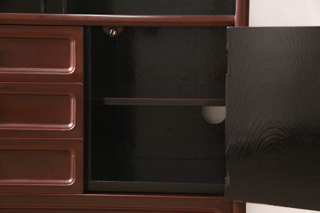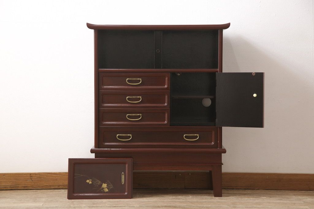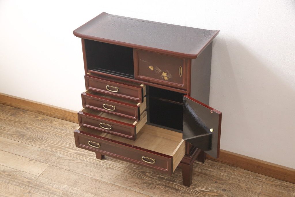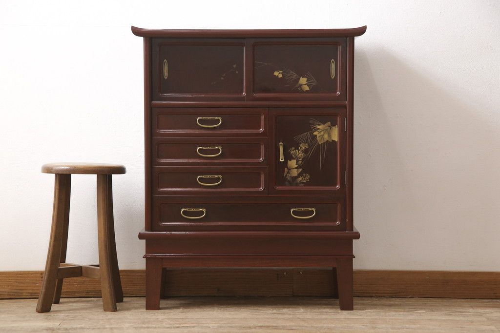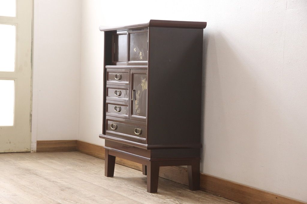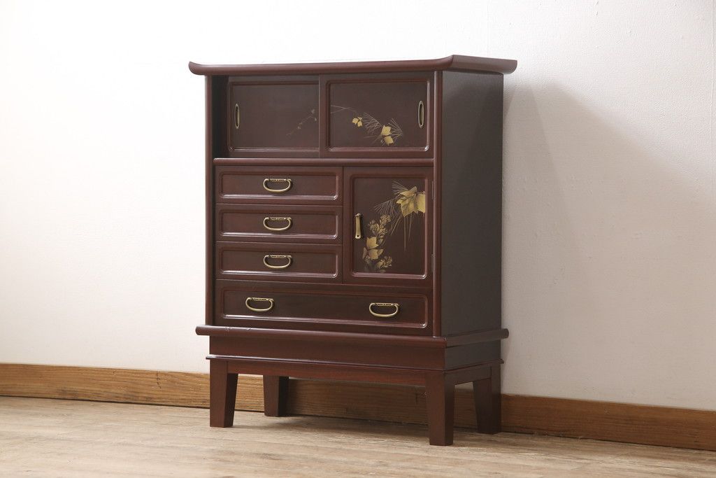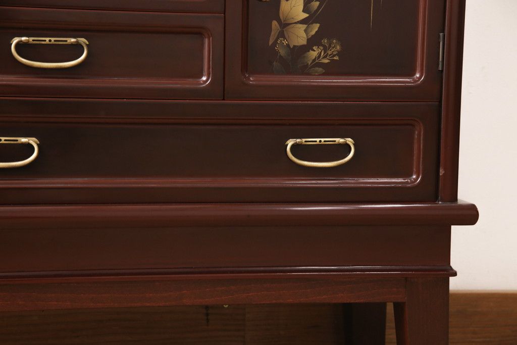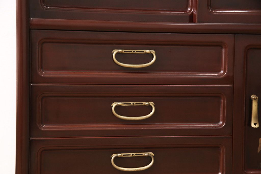 セミオーダー家具実績 > 小箪笥をリペア&カスタム!木製脚を取り付け、背面に配線用穴あけ加工。(和タンス、収納棚、戸棚、サイドボード、引き出し4杯)