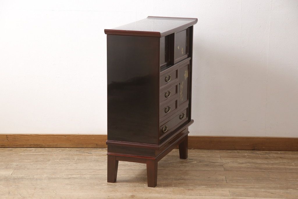 和箪笥> 小箪笥 > 小箪笥をリペア&カスタム!木製脚を取り付け、背面に配線用穴あけ加工。(和タンス、収納棚、戸棚、サイドボード、引き出し4杯)
