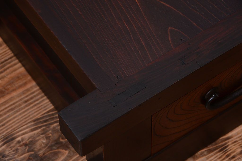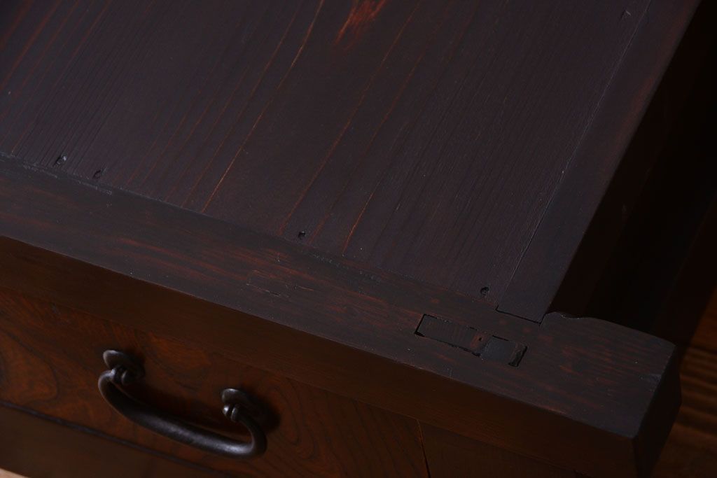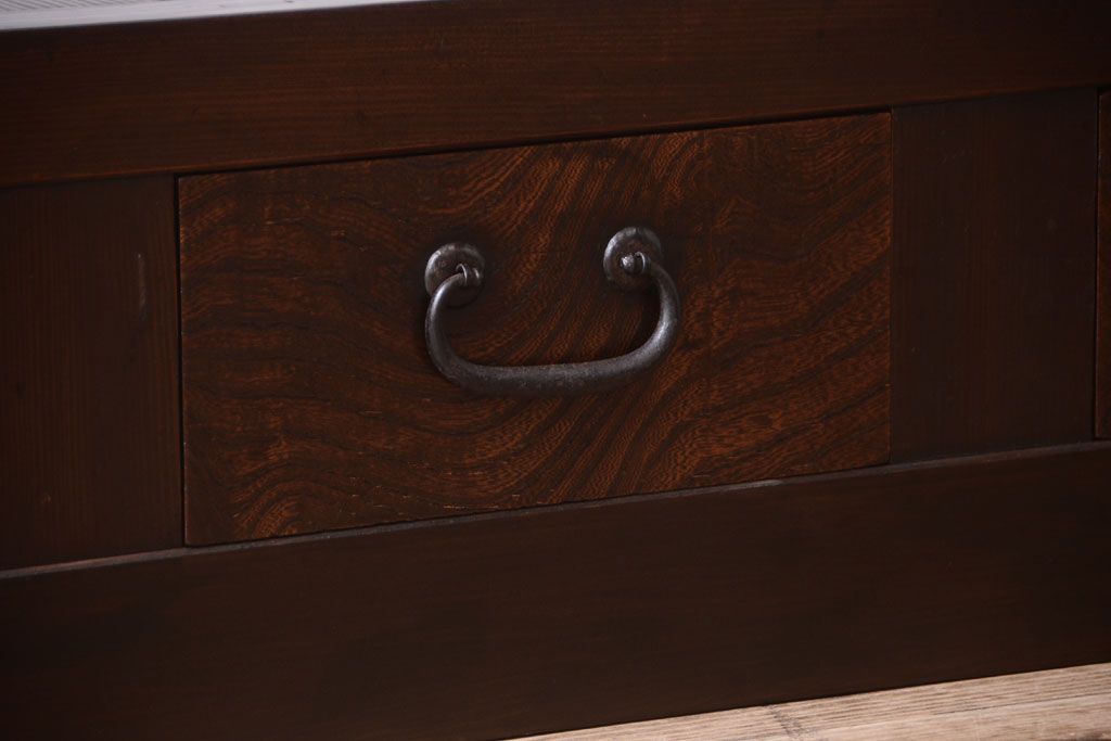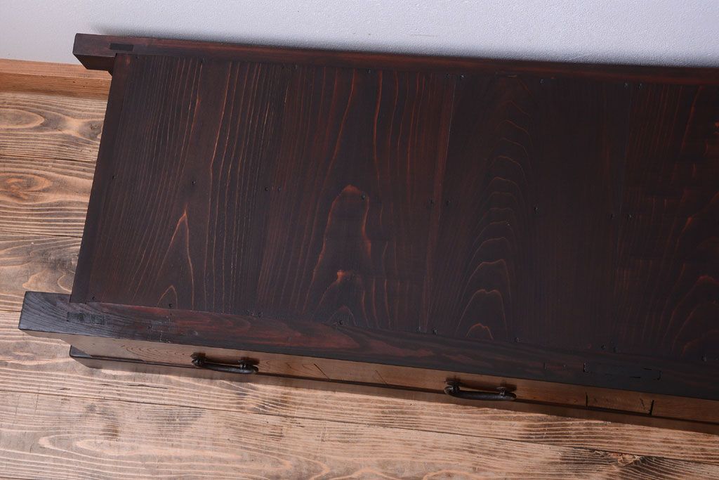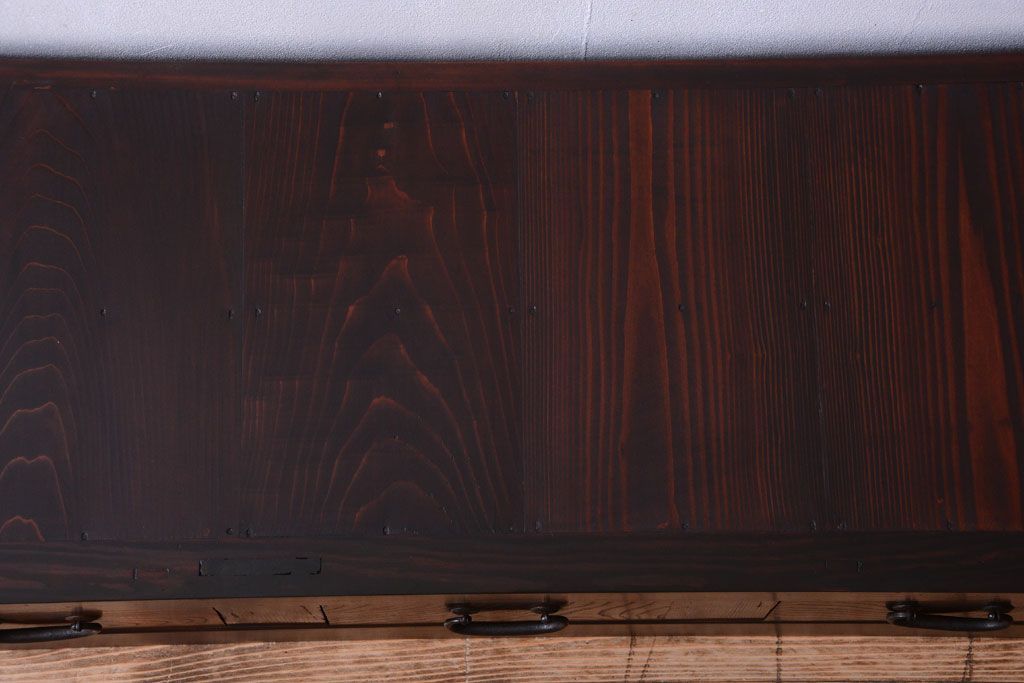 明治大正期の水屋箪笥をリペア&カスタム!背面を新材に張り替え、天板を取り付けローボードにリメイク。赤みがかった濃い茶色に着色し仕上げ。(テレビ台、テレビボード)