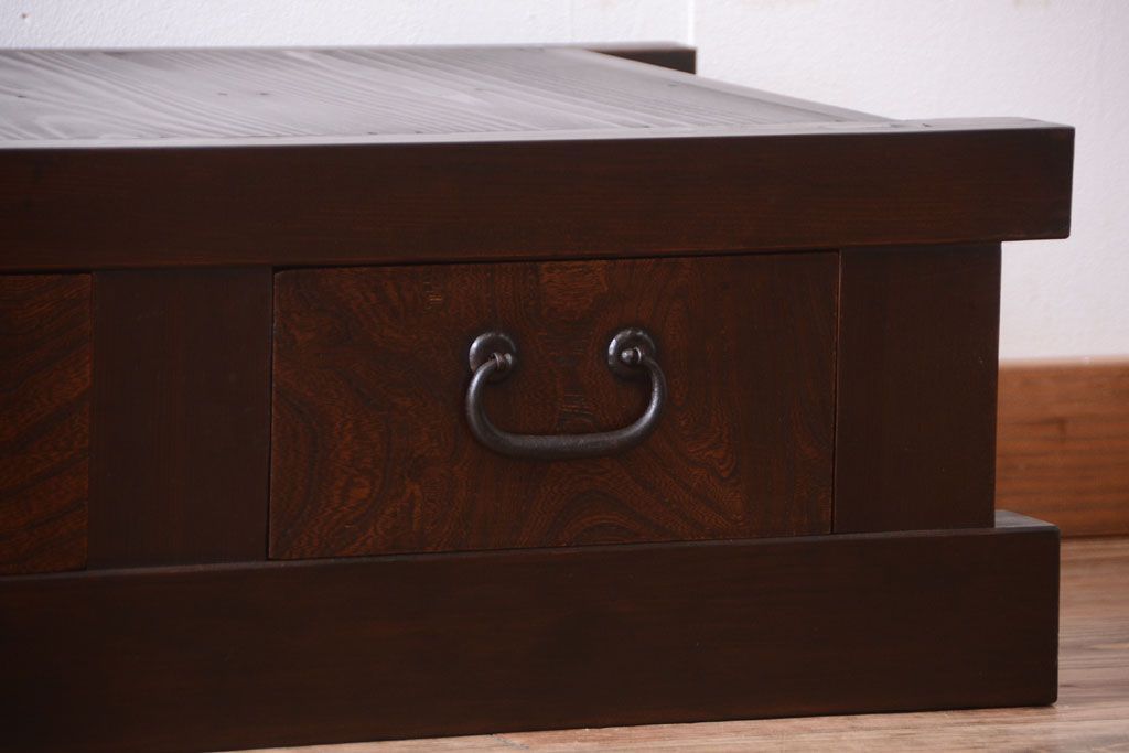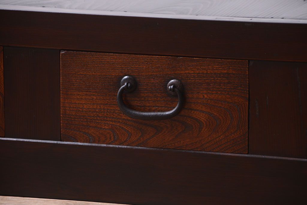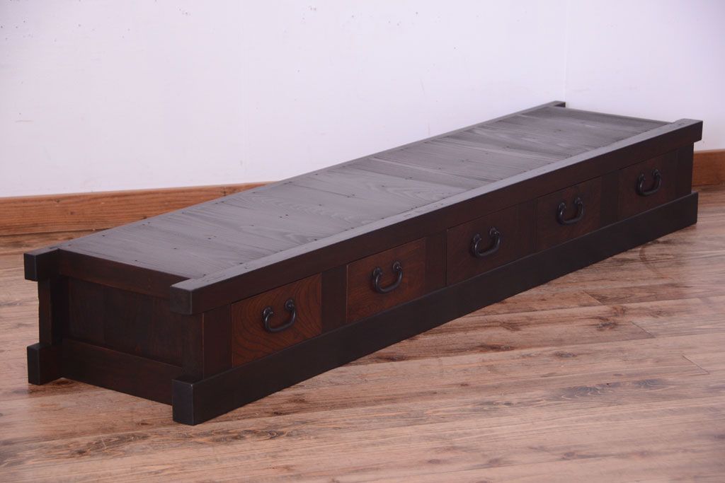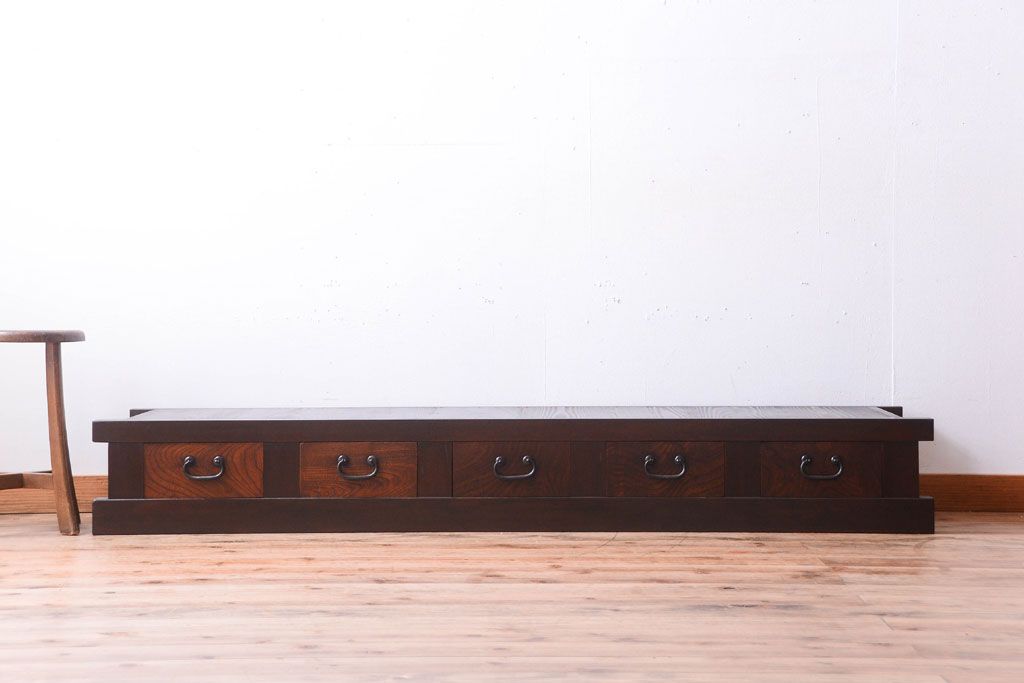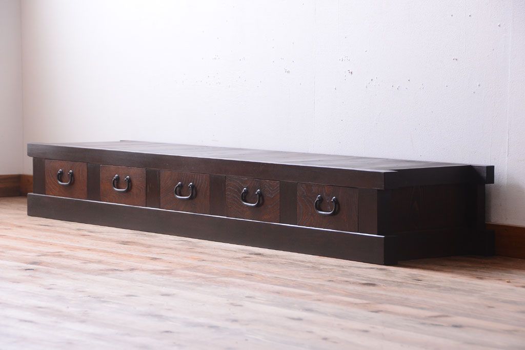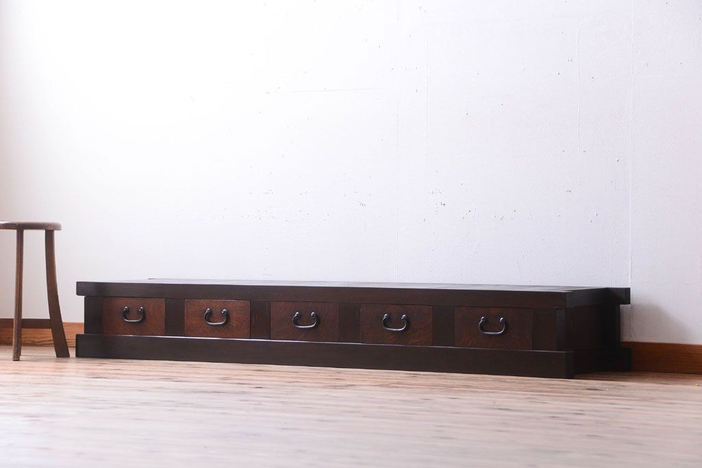 明治大正期の水屋箪笥をリペア&カスタム!背面を新材に張り替え、天板を取り付けローボードにリメイク。赤みがかった濃い茶色に着色し仕上げ。(テレビ台、テレビボード)