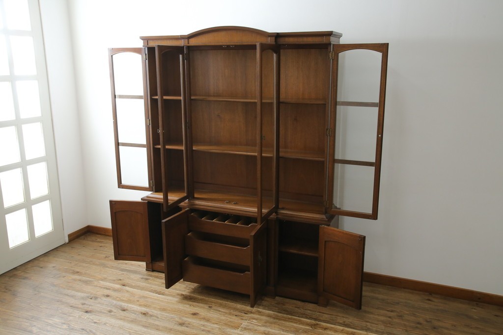 上部はガラス扉になっており、お気に入りの食器やコレクションなどを美しくディスプレイしていただけますよ。
