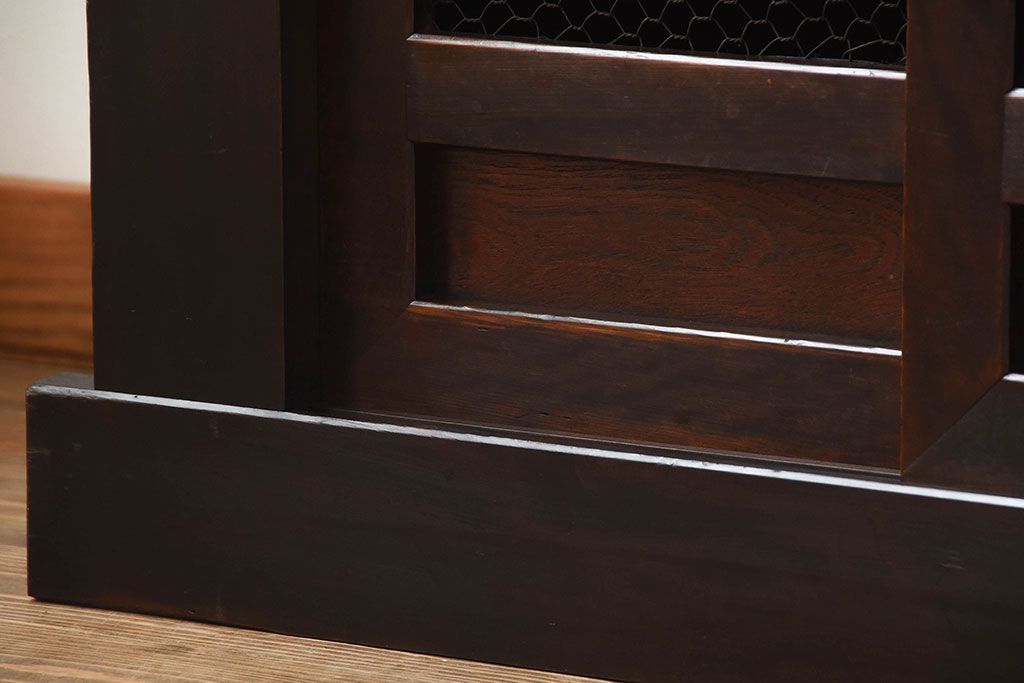 和箪笥> 水屋箪笥 > 水屋箪笥をリペア&カスタム!天板を取り付け、引き戸内には棚板を設置しローボードにリメイク。赤みがかった濃い茶色に着色し仕上げ。(テレビ台、テレビボード、収納棚、キャビネット)