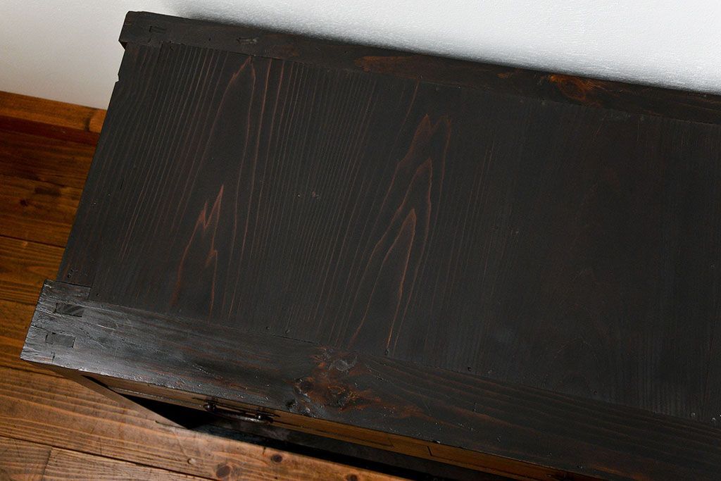 和箪笥 > 明治期の水屋箪笥をリペア&カスタム!天板を取り付け、棚板を追加しローボードにリメイク。黒系の茶色と赤系の茶色のツートンカラーに着色し仕上げ。(テレビ台、テレビボード、収納棚、キャビネット)