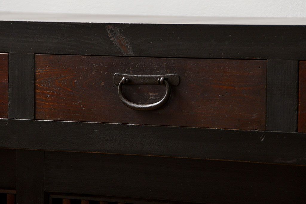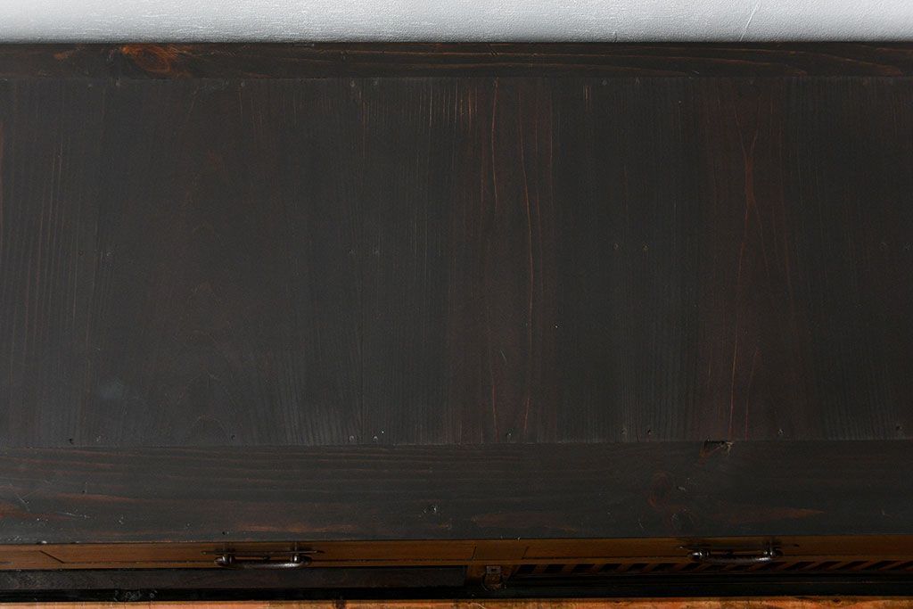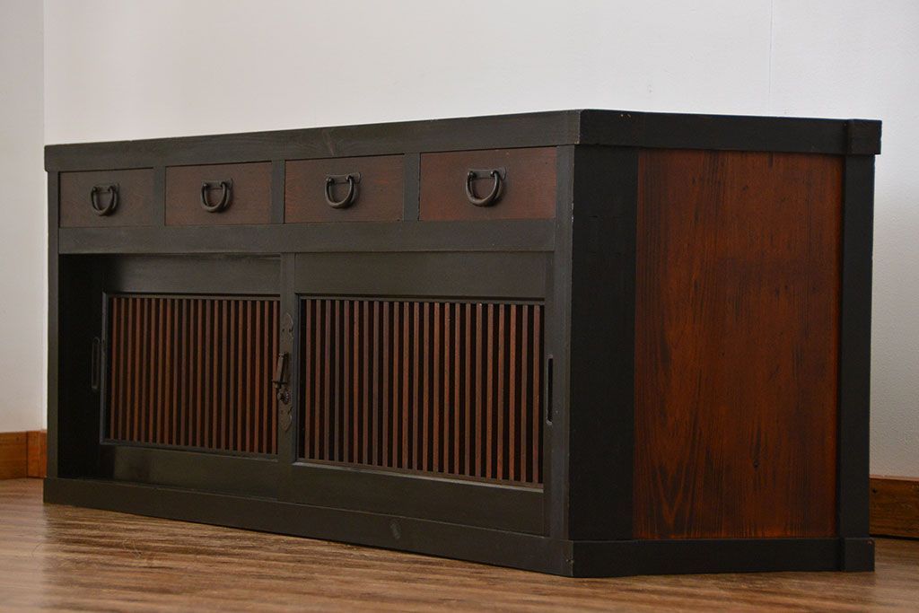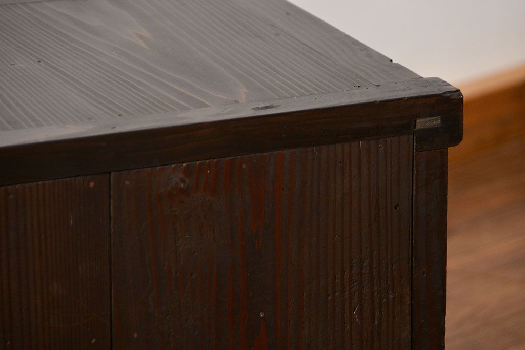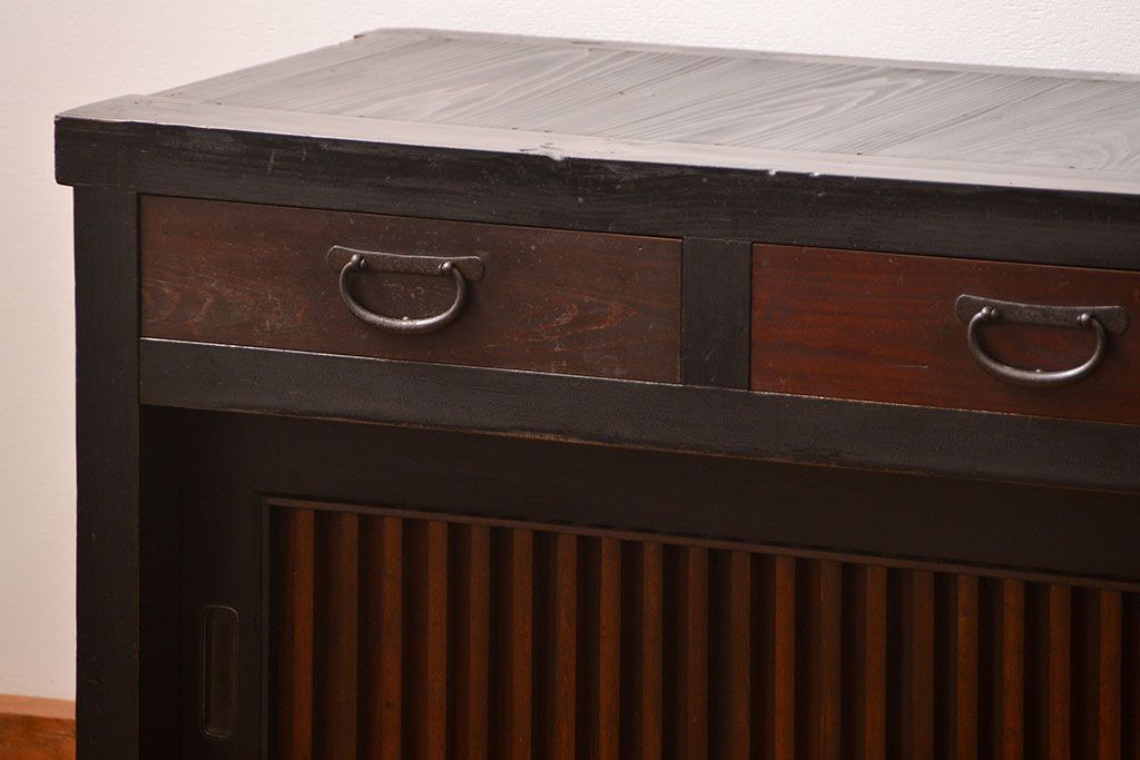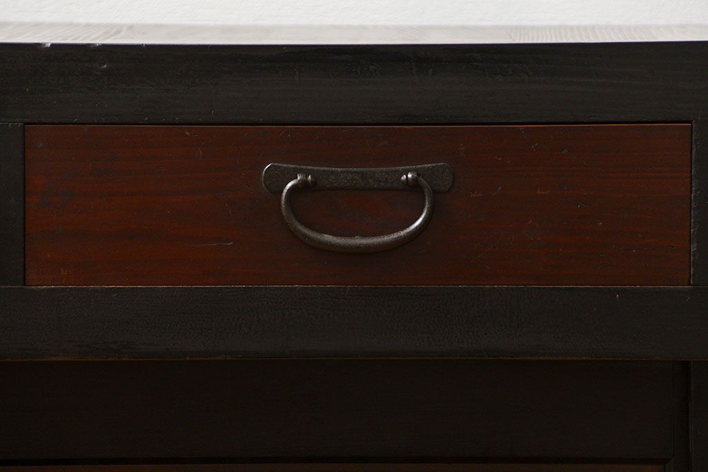 古家具 > 明治期の水屋箪笥をリペア&カスタム!天板を取り付け、棚板を追加しローボードにリメイク。黒系の茶色と赤系の茶色のツートンカラーに着色し仕上げ。(テレビ台、テレビボード、収納棚、キャビネット)