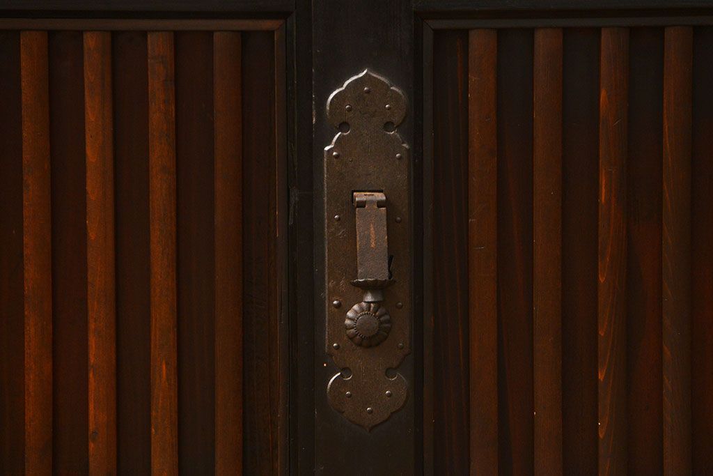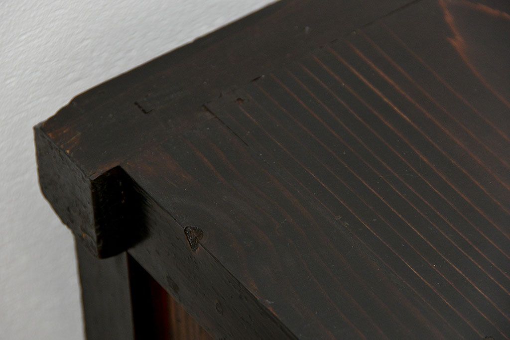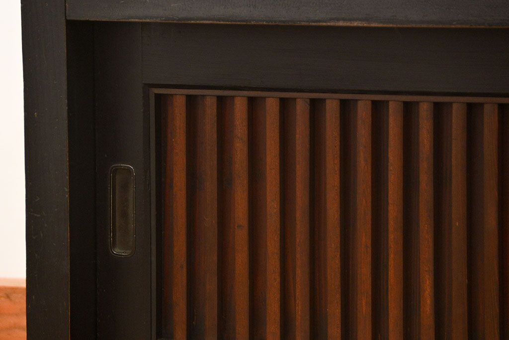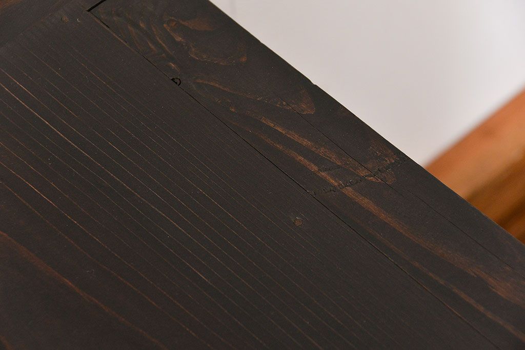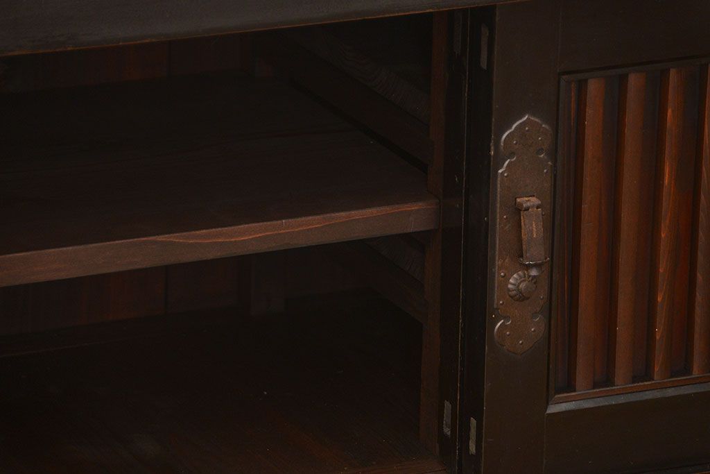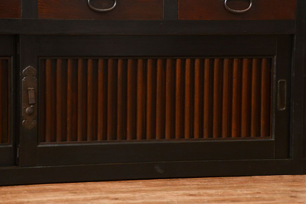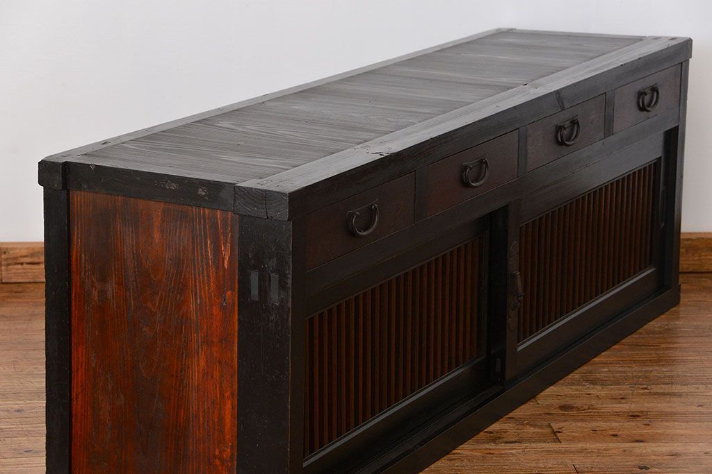 古家具 > 明治期の水屋箪笥をリペア&カスタム!天板を取り付け、棚板を追加しローボードにリメイク。黒系の茶色と赤系の茶色のツートンカラーに着色し仕上げ。(テレビ台、テレビボード、収納棚、キャビネット)