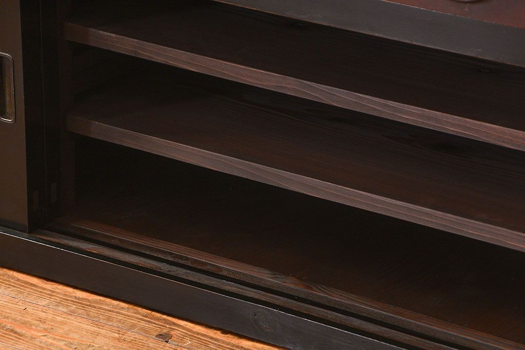 キャビネット・戸棚> テレビ台・ローボード > 明治期の水屋箪笥をリペア&カスタム!天板を取り付け、棚板を追加しローボードにリメイク。黒系の茶色と赤系の茶色のツートンカラーに着色し仕上げ。(テレビ台、テレビボード、収納棚、キャビネット)