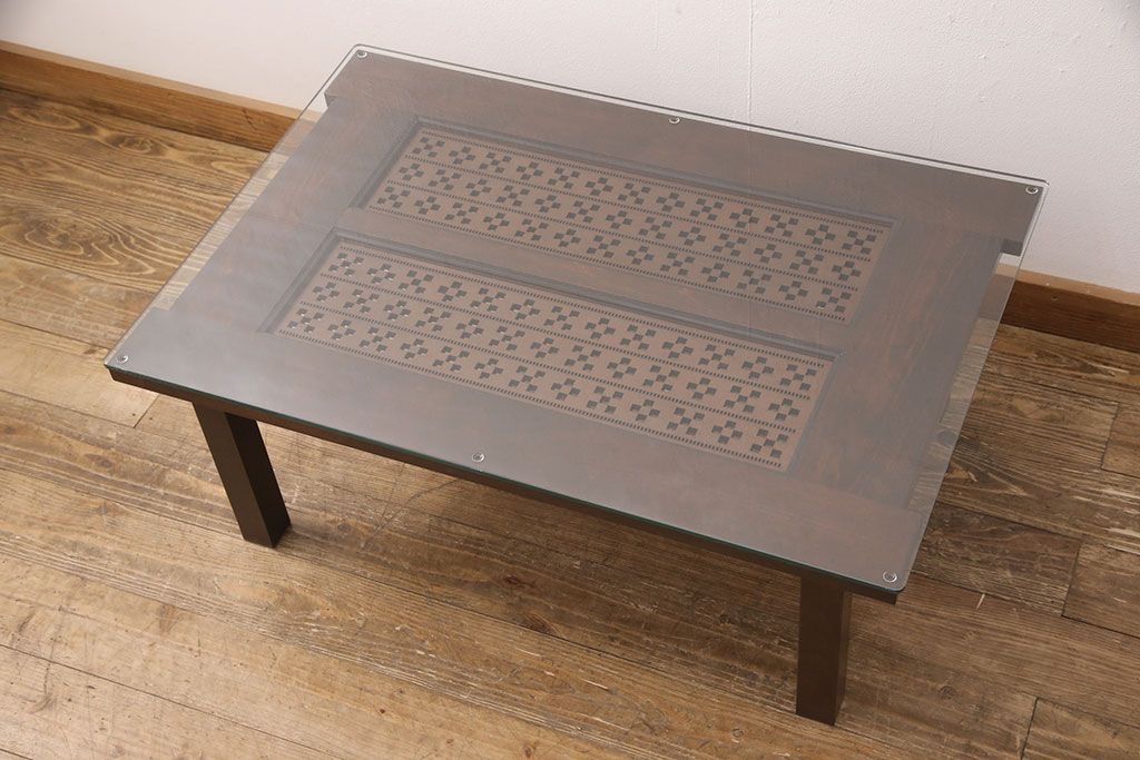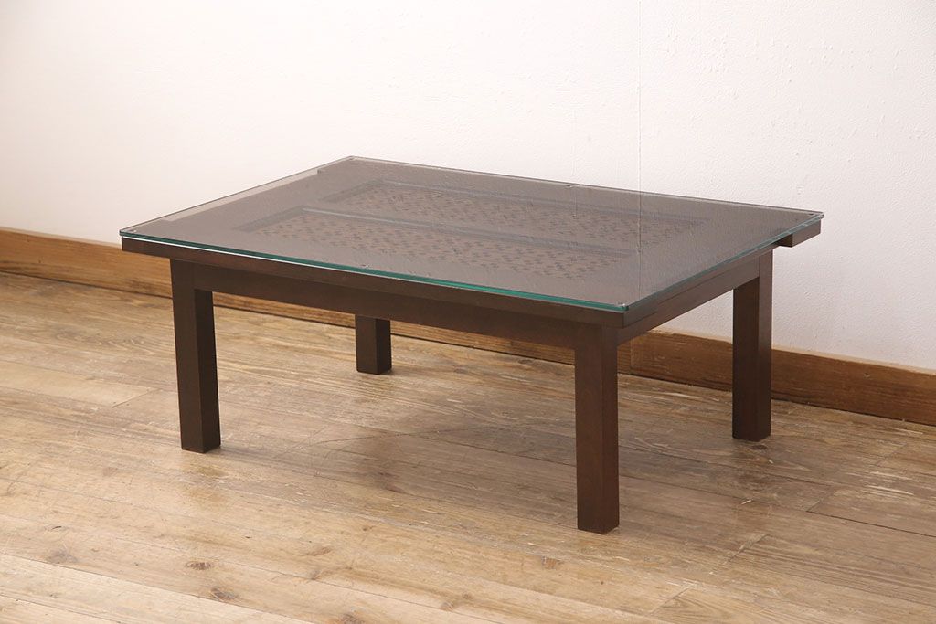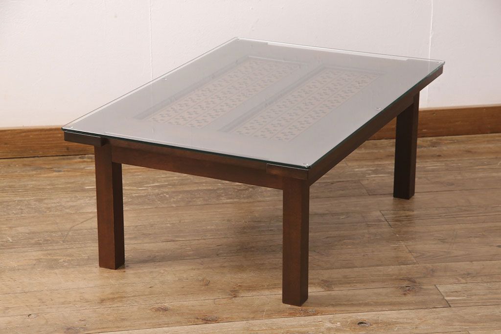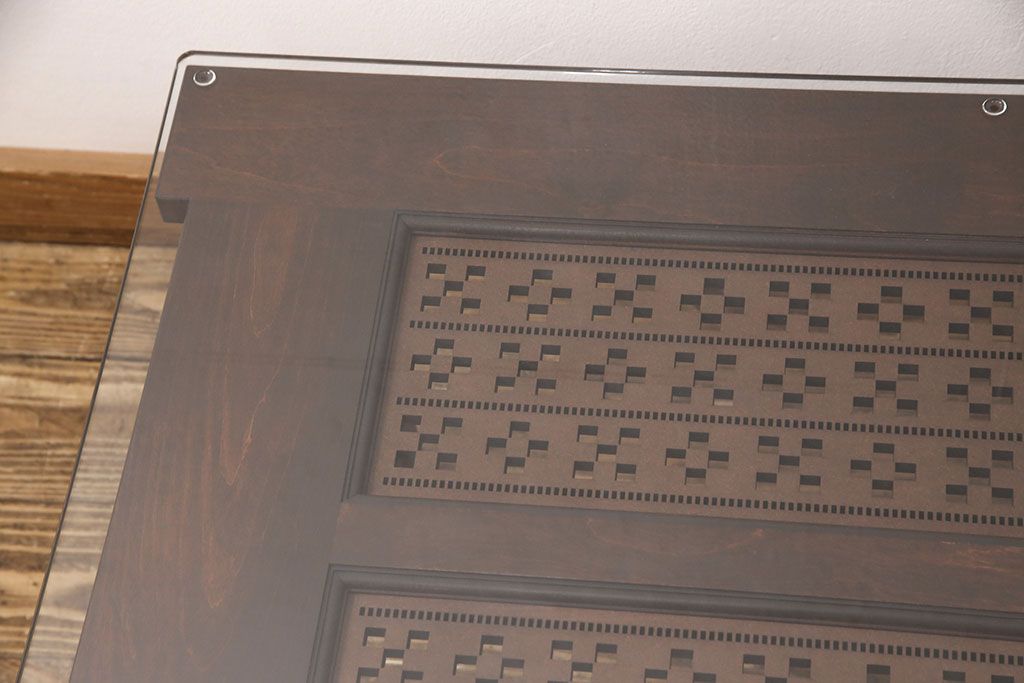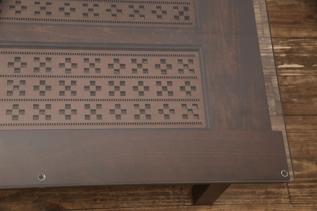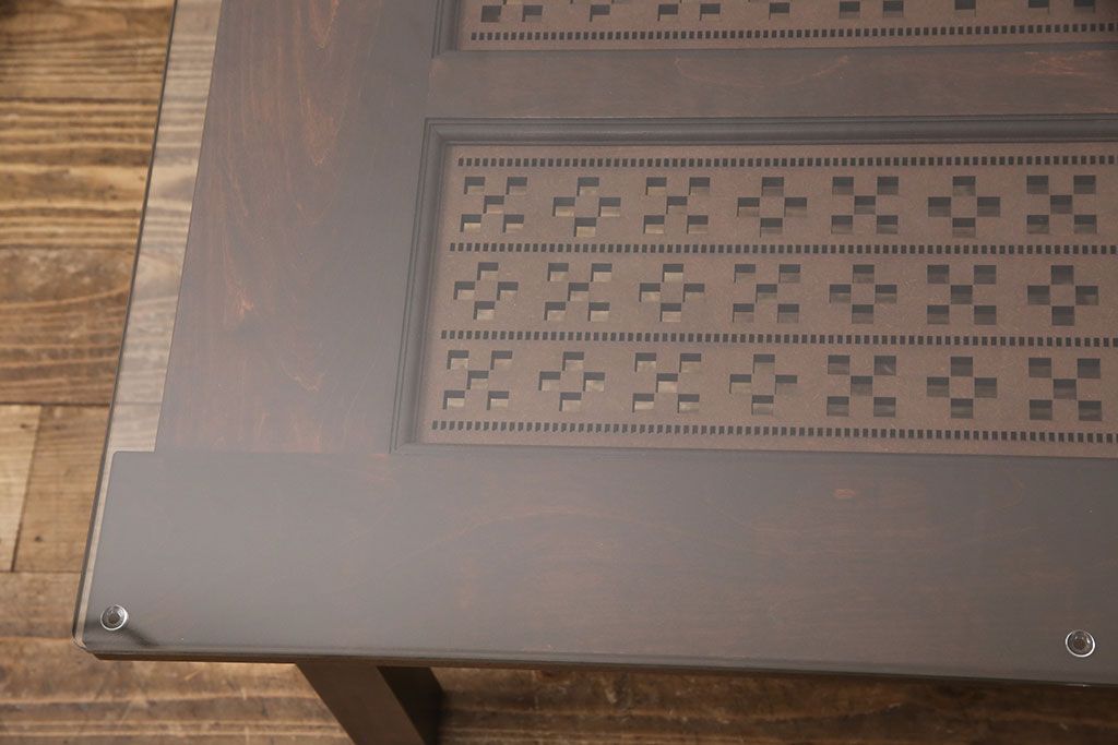 ローテーブルを新規製作!天板にミンサー柄の透かしを施し、ガラス天板を取り付け。(センターテーブル、リビングテーブル)