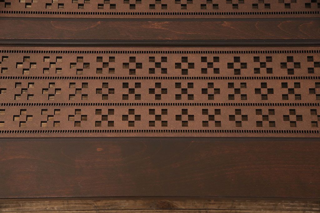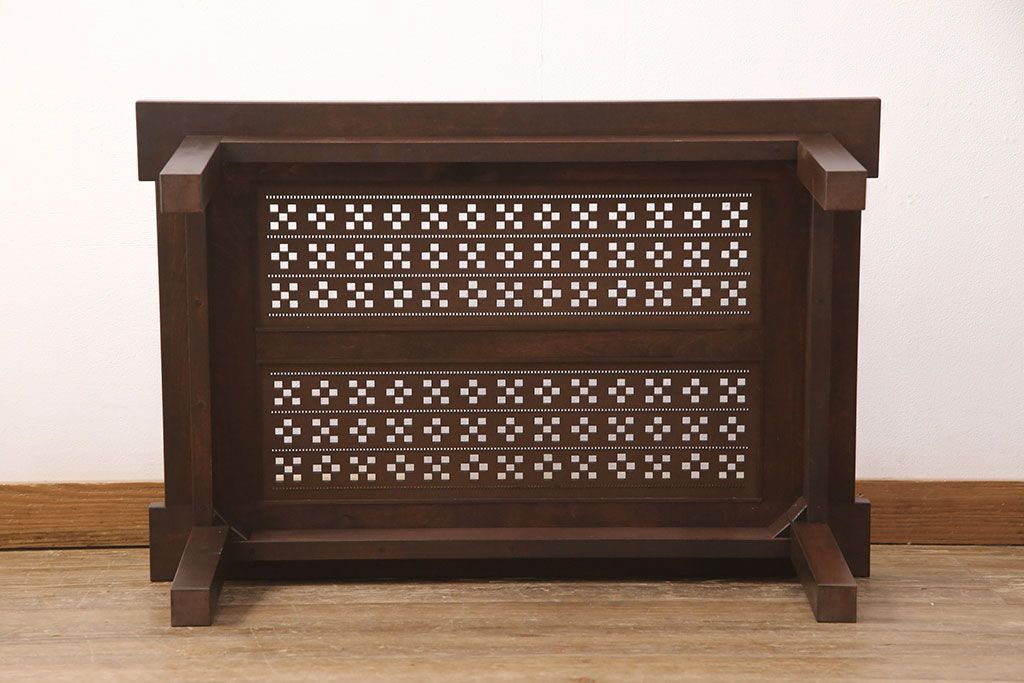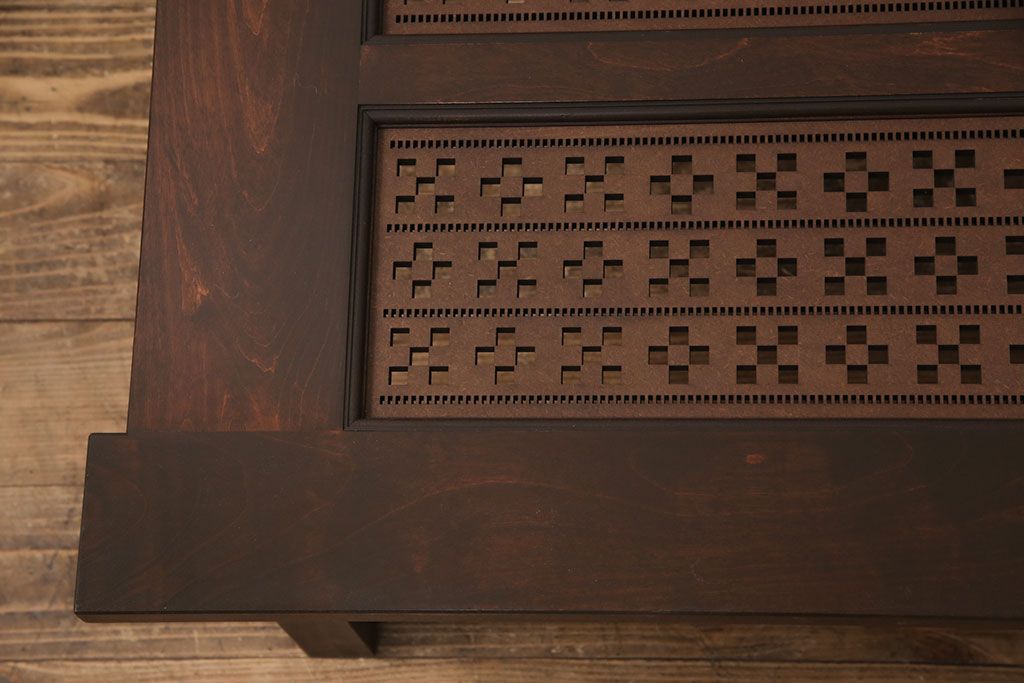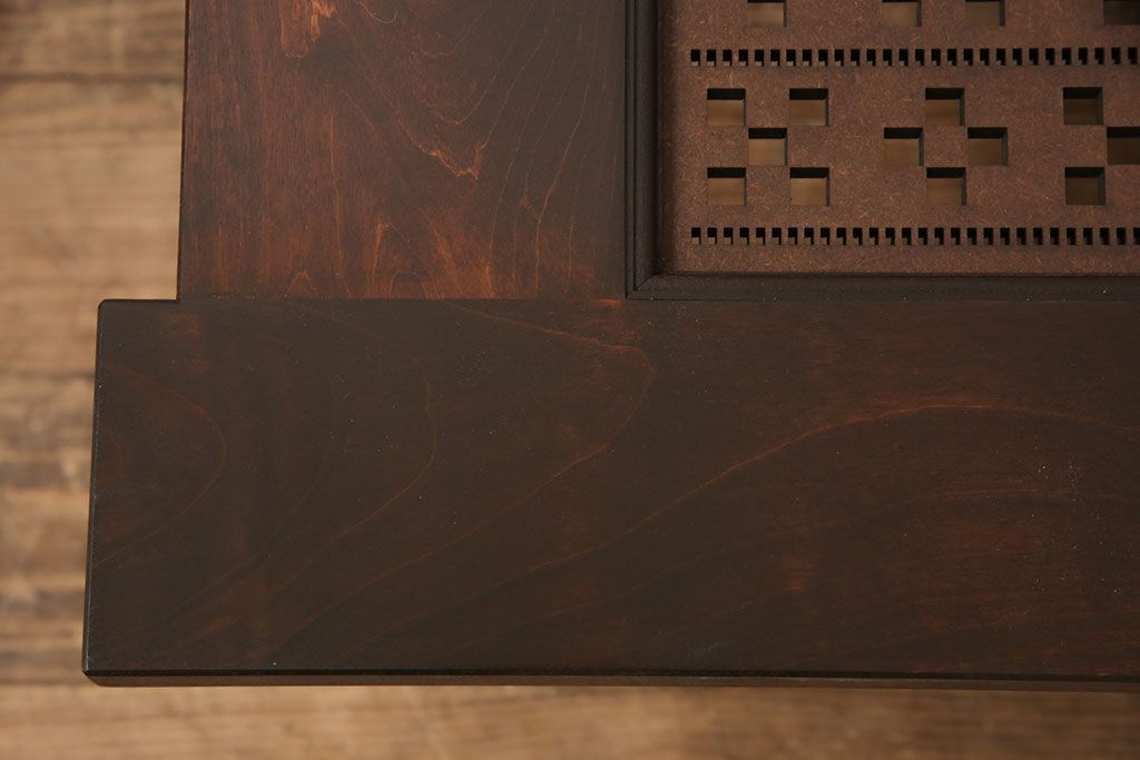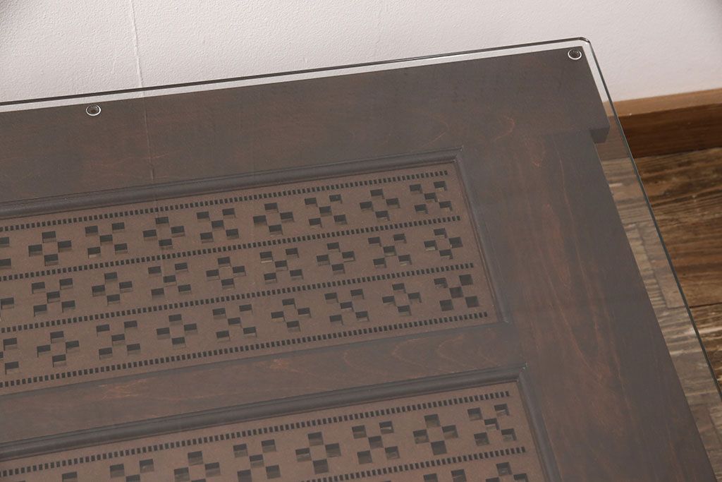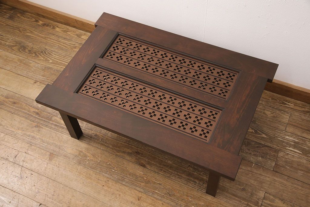 ローテーブルを新規製作!天板にミンサー柄の透かしを施し、ガラス天板を取り付け。(センターテーブル、リビングテーブル)