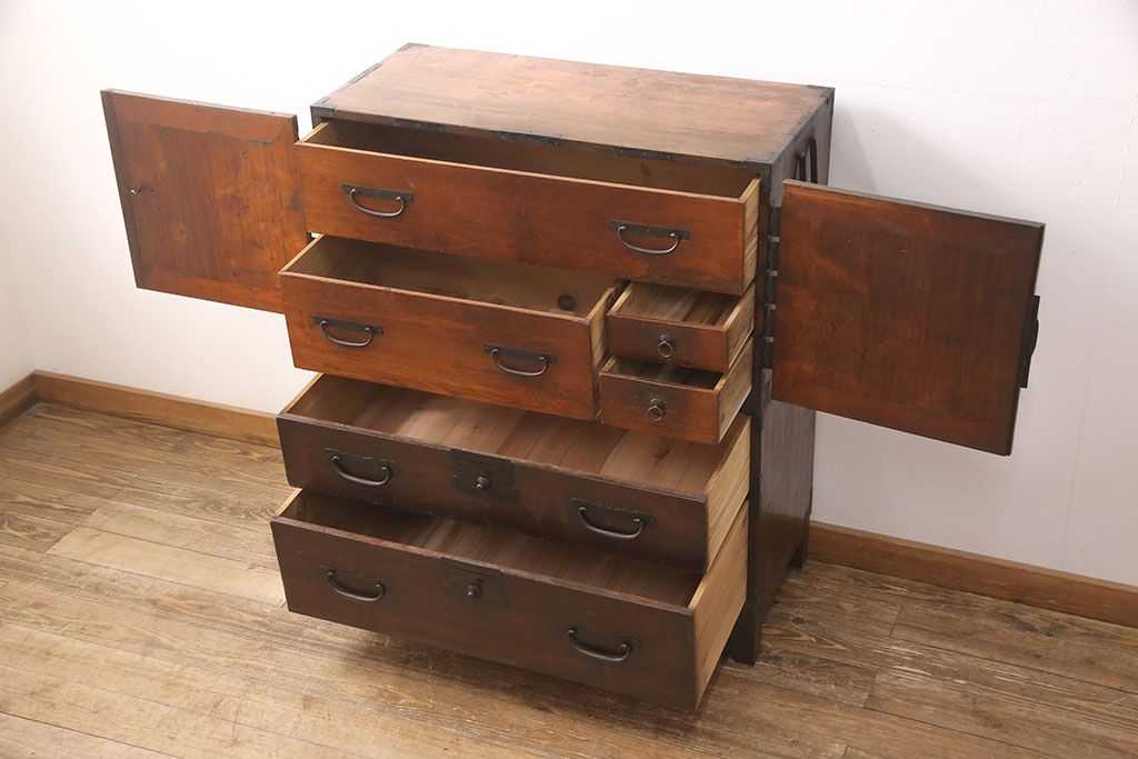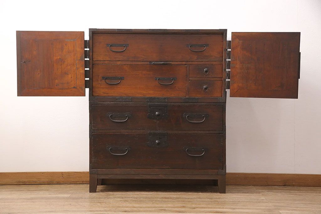 和箪笥> 衣装箪笥 > アンティーク観音箪笥をリペア&カスタム!高品質リペアを施し、木製脚を取り付け。(衣装箪笥、古箪笥、和タンス)