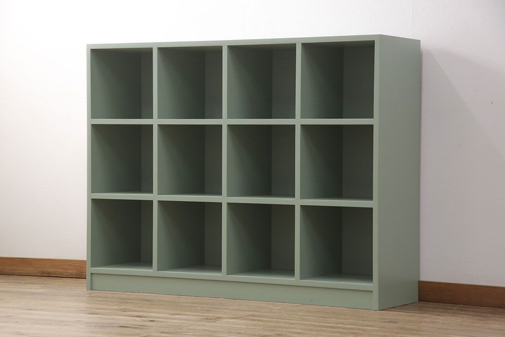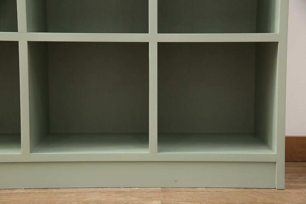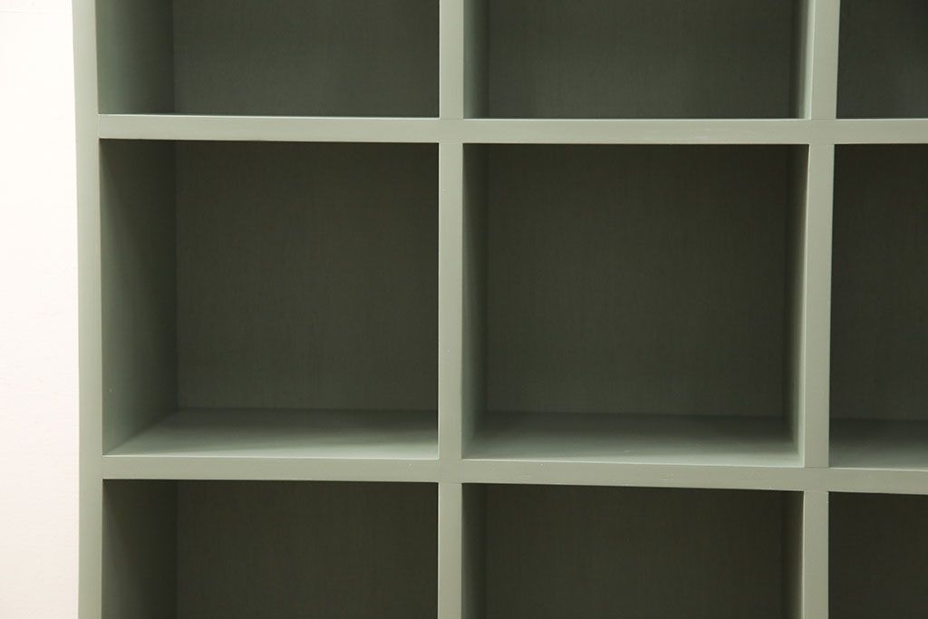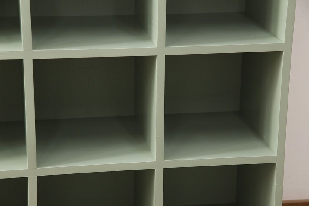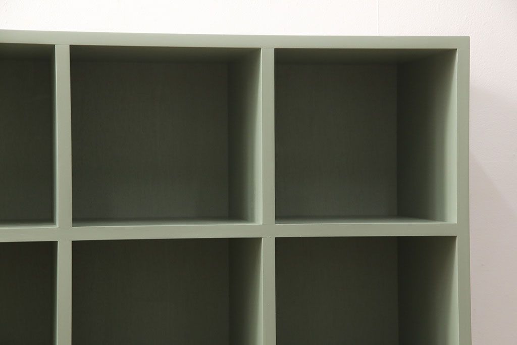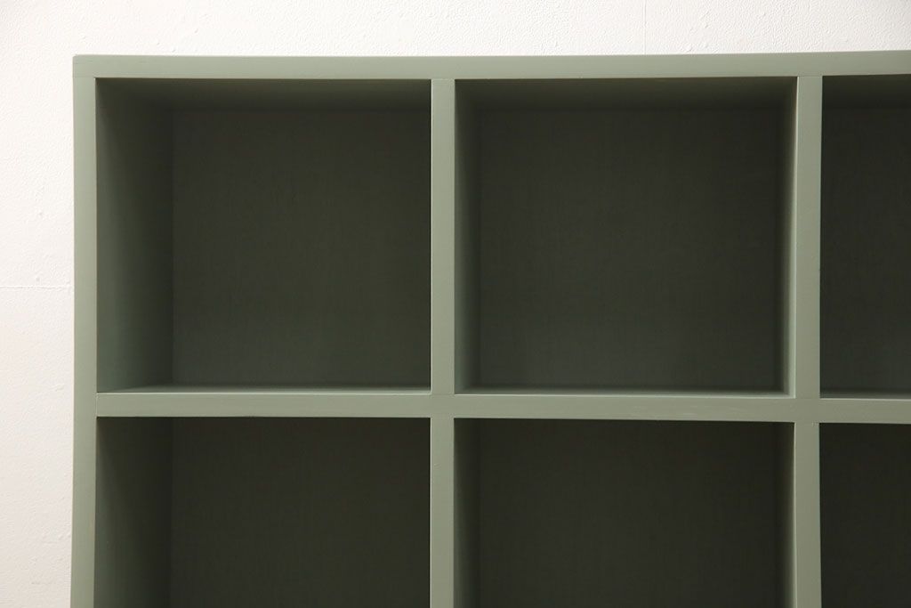 マス目棚を新規製作!くすんだグリーンでペイント仕上げ。(オープンラック、飾り棚、収納棚)