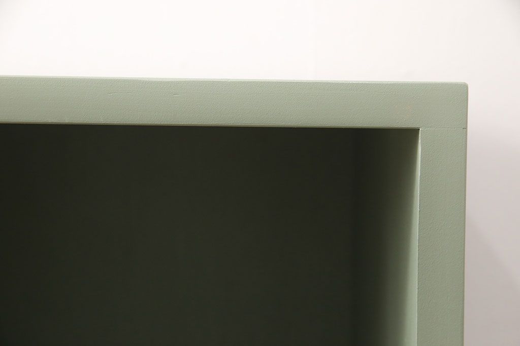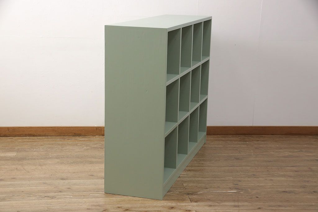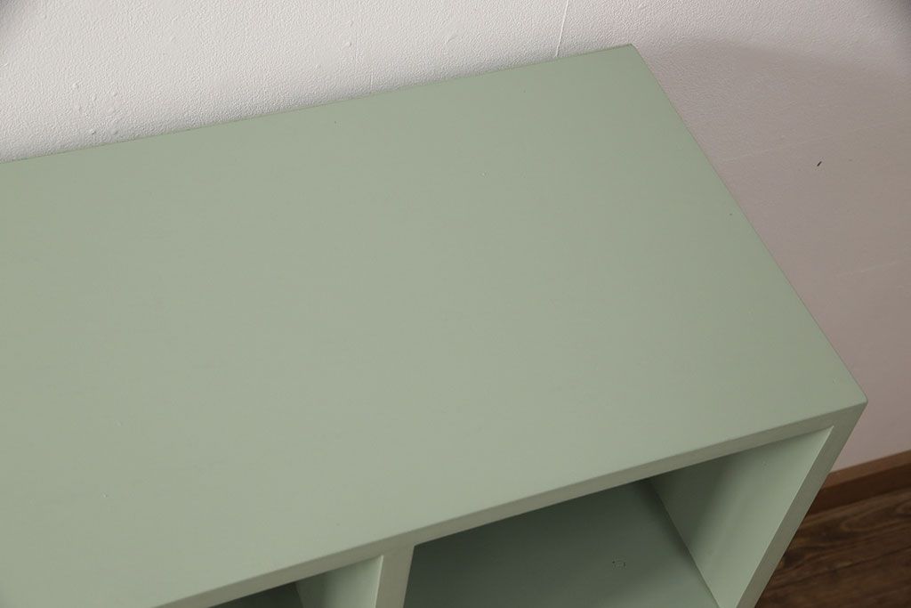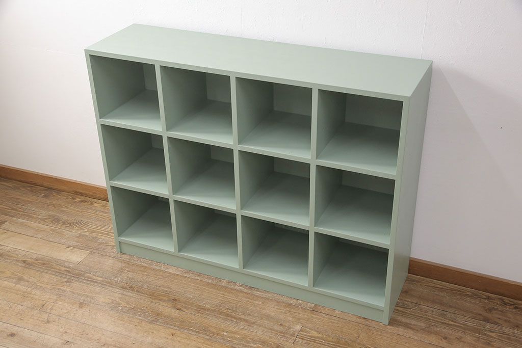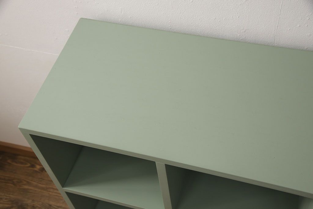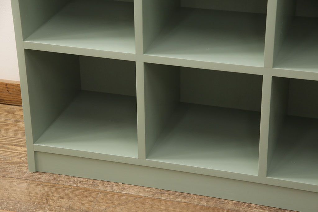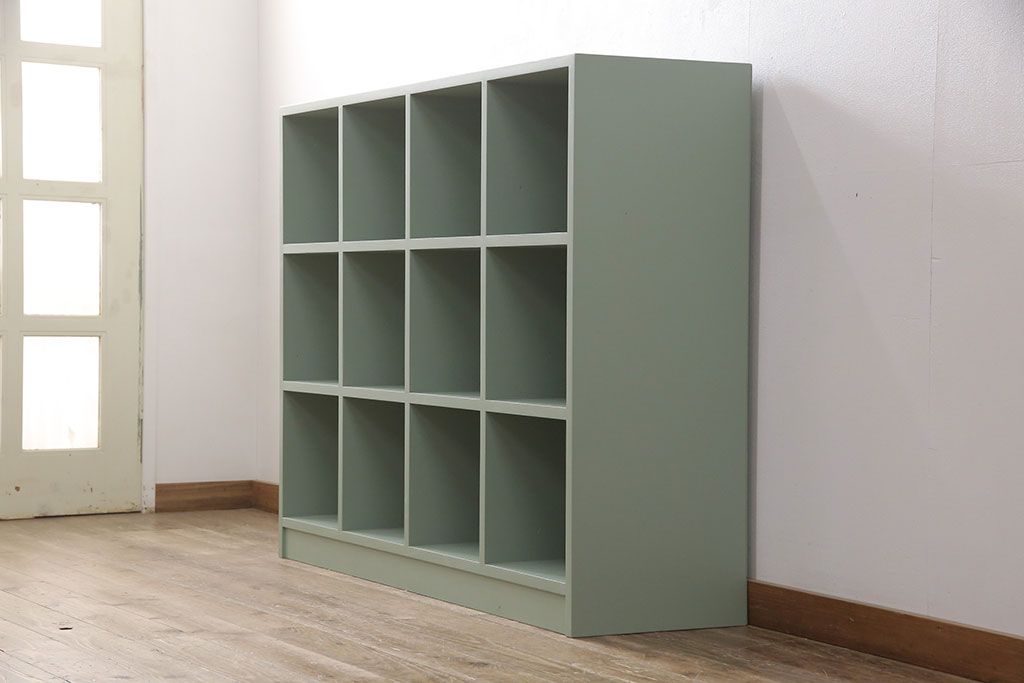 マス目棚を新規製作!くすんだグリーンでペイント仕上げ。(オープンラック、飾り棚、収納棚)