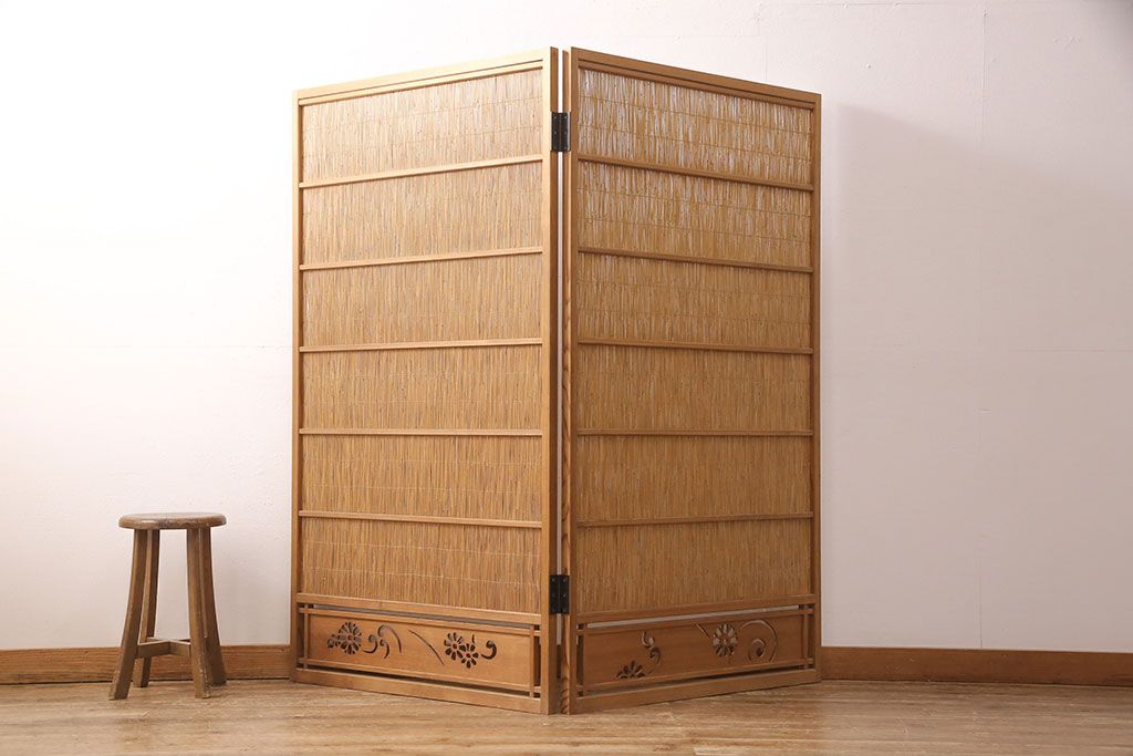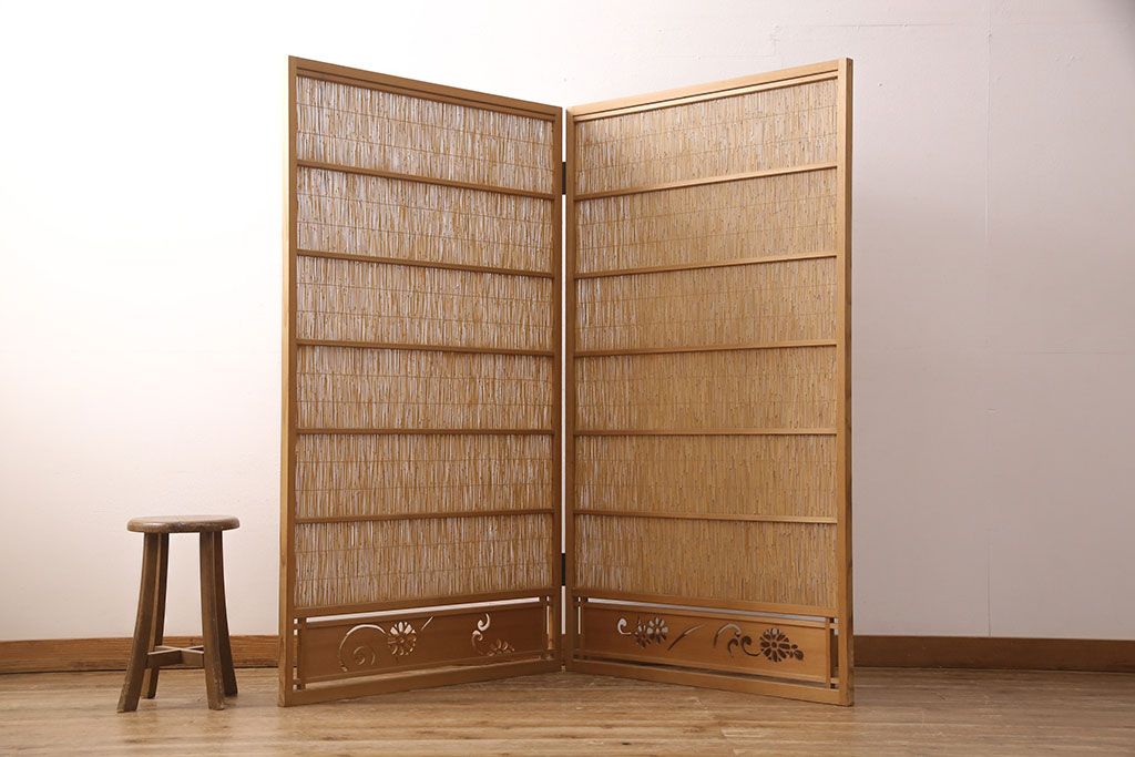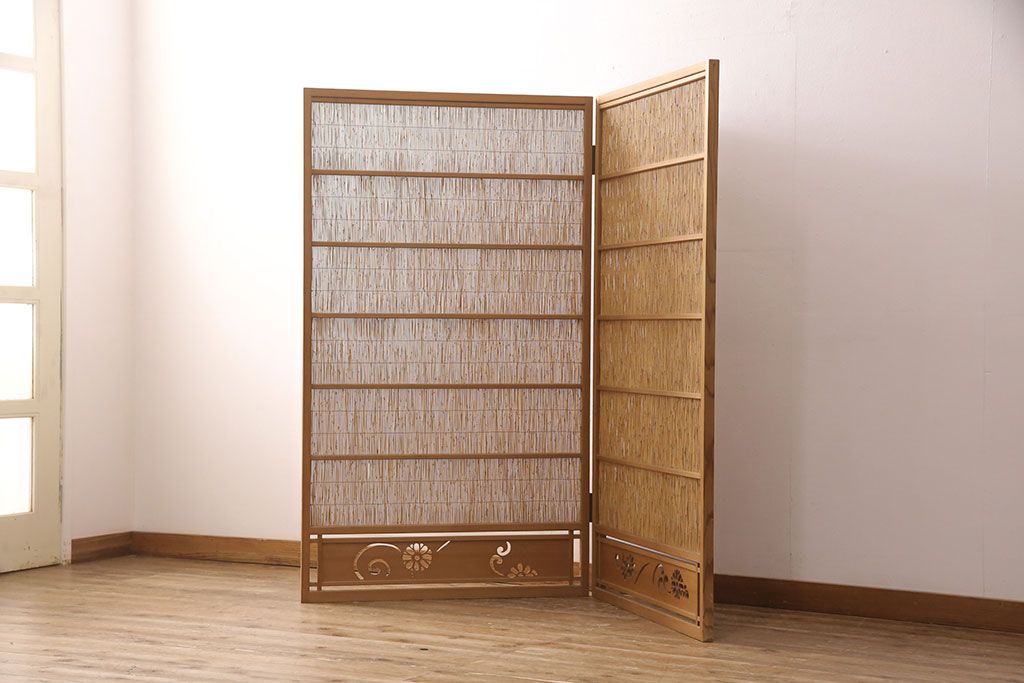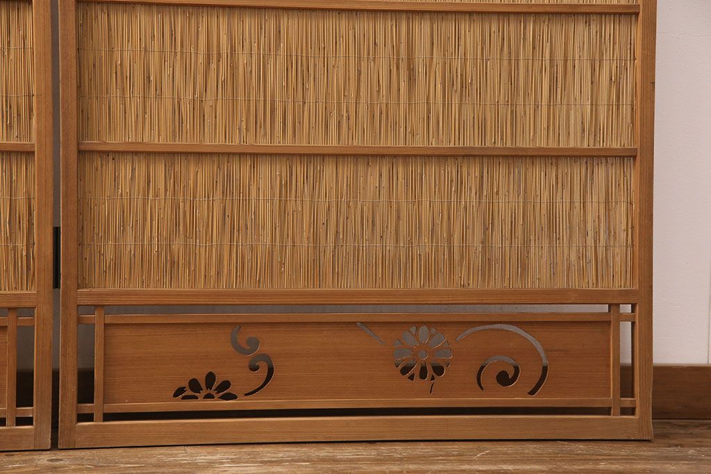 ・御簾戸4枚セットのうち、引き手のない2枚を使って衝立を制作