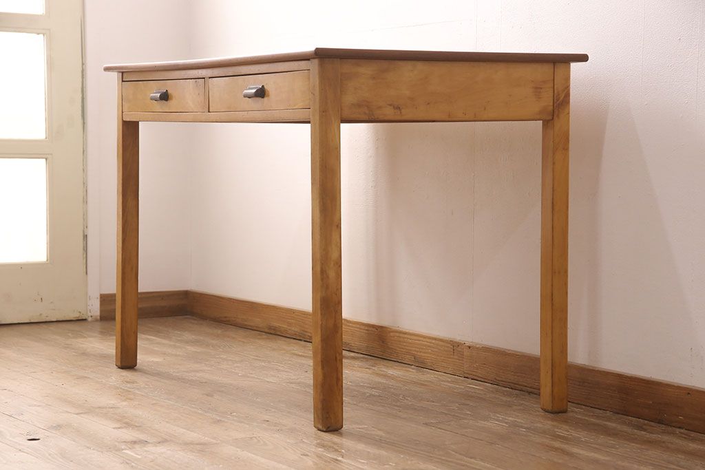 イギリスヴィンテージのデスクをリペア&カスタム!取っ手を交換し、元の色味を生かした自然な仕上げに。(平机、ワークデスク)