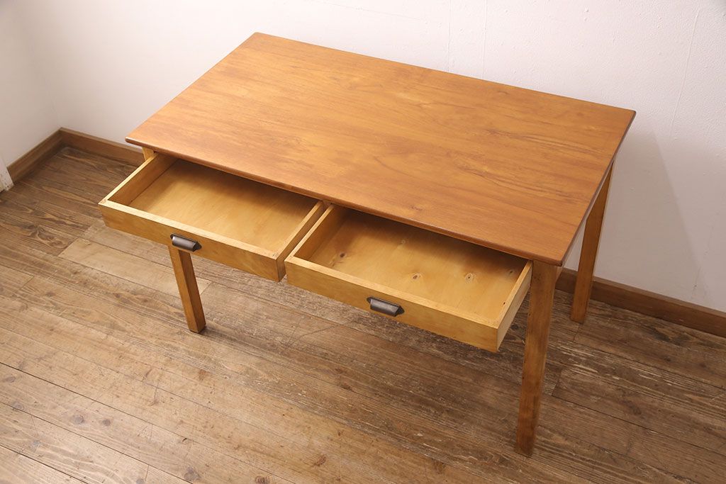 デスク> 平机 > イギリスヴィンテージのデスクをリペア&カスタム!取っ手を交換し、元の色味を生かした自然な仕上げに。(平机、ワークデスク)