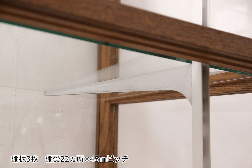 棚板は取り外しできます。棚板は3枚あります。棚受け22ヶ所、45mmピッチで調整できます。棚幅サイズのものが1枚の作りです。