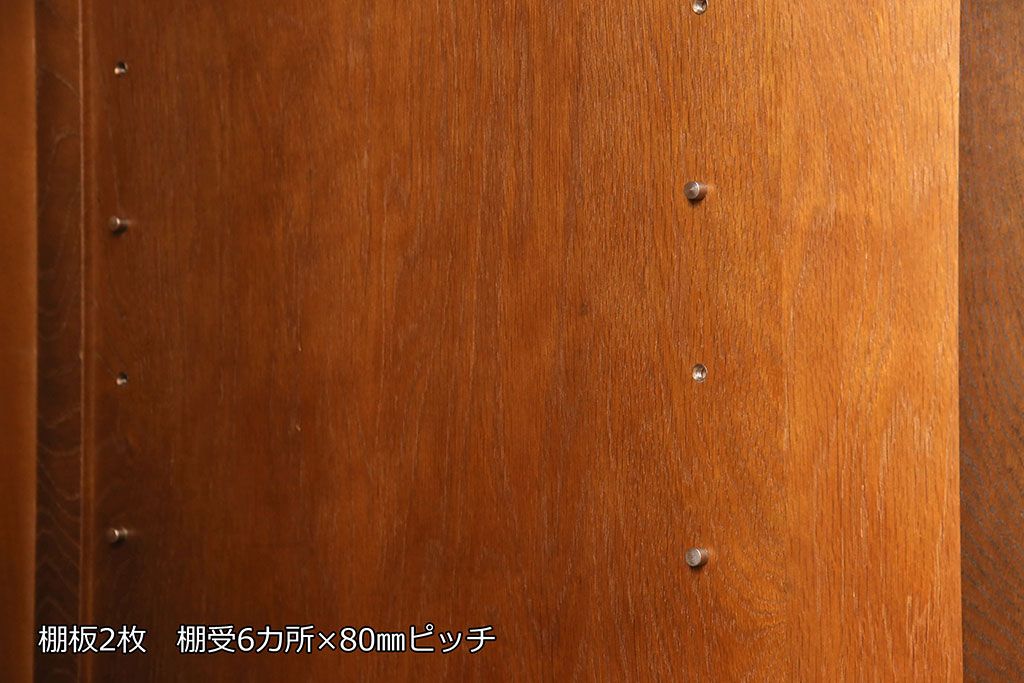 棚板は取り外しできます。棚板は2枚あります。棚受けは6ヶ所、80mmピッチで調整できます。