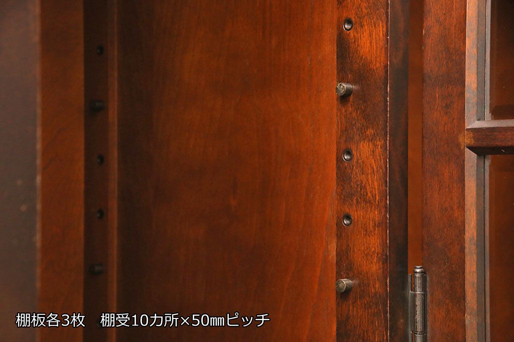 棚板は取り外しできます。棚板は左右各3枚、各棚受け10ヶ所、50mmピッチで調整できます。棚幅サイズのものが1枚の作りです。
