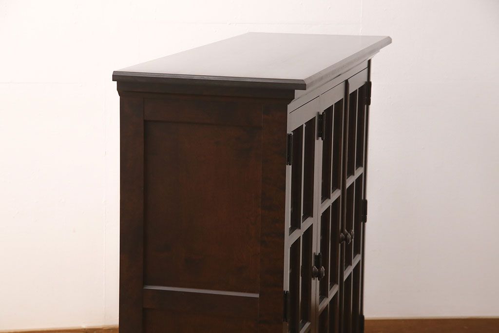 セミオーダー家具実績 > 北海道民芸家具のサイドキャビネットをリペア&カスタム!天板と台輪を取り付け、本体の色に合わせて着色し仕上げ。(収納棚、戸棚)