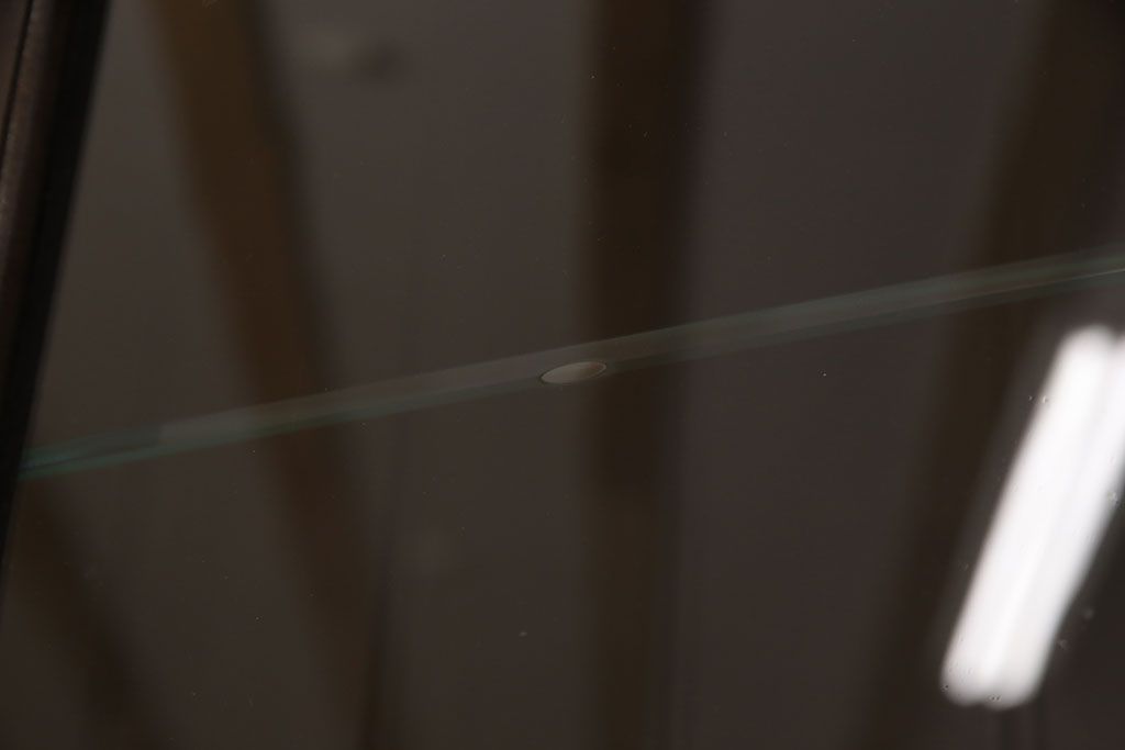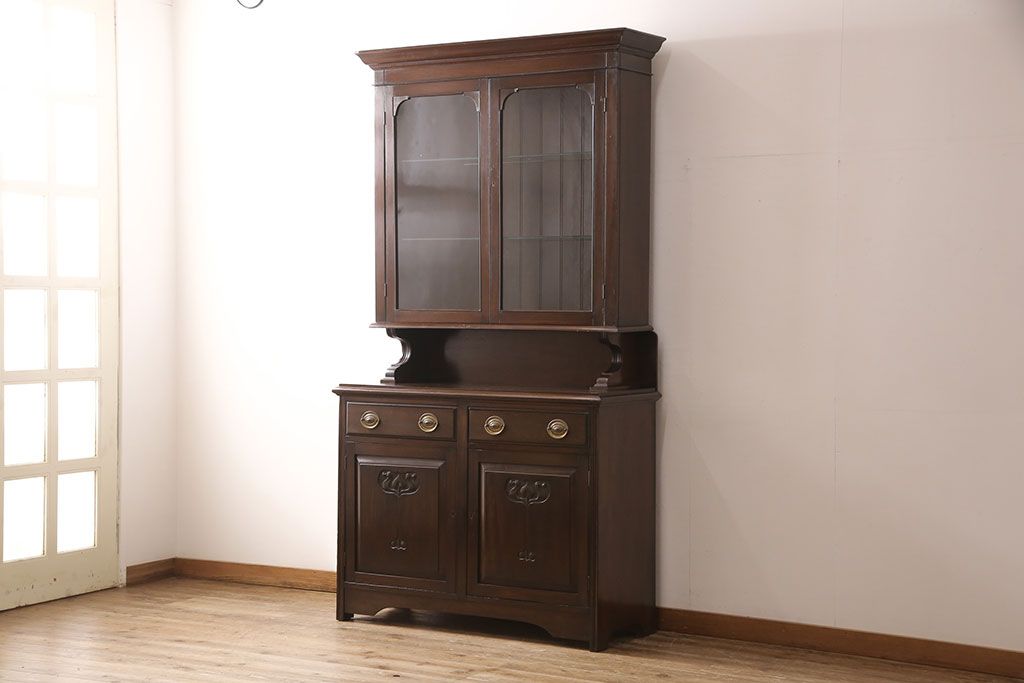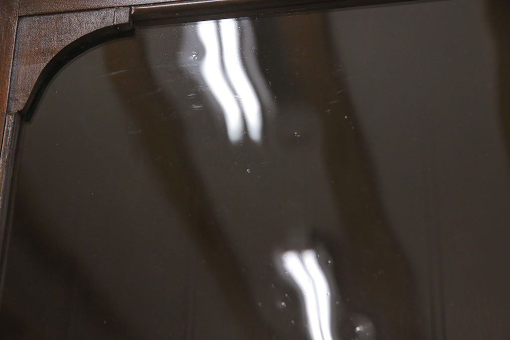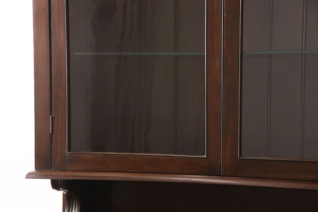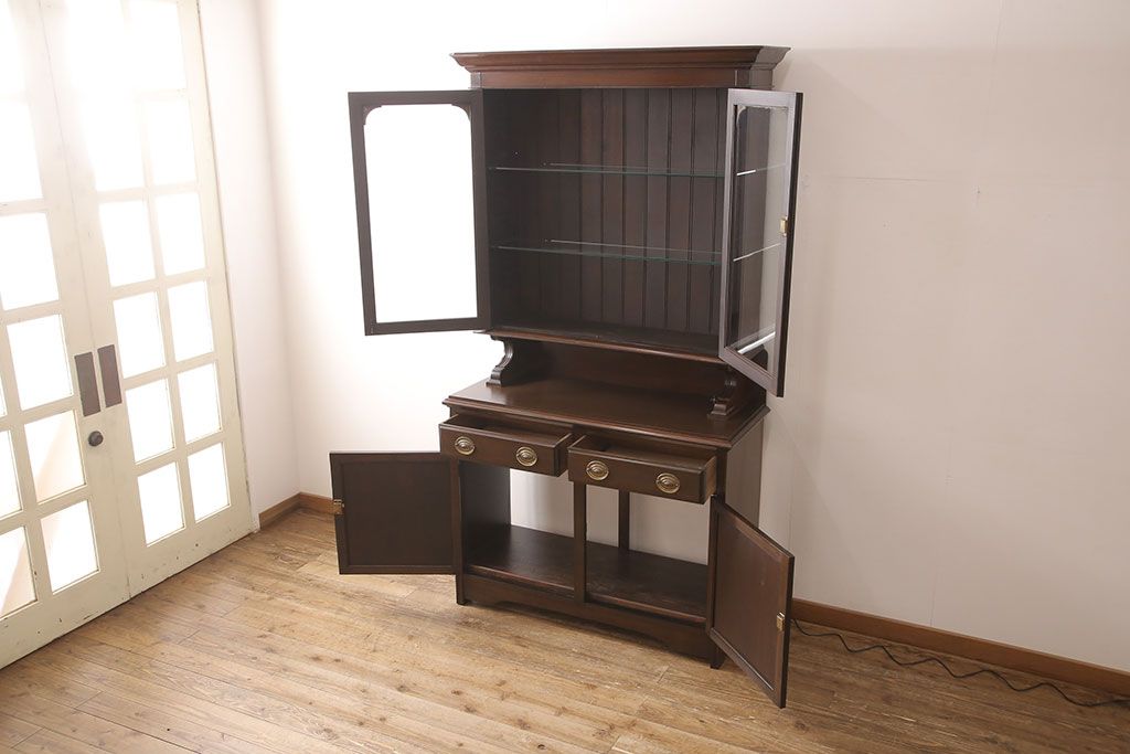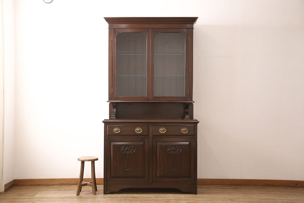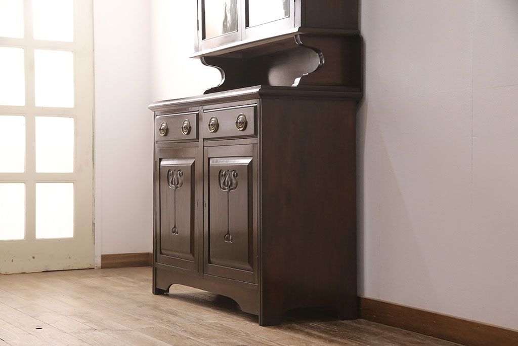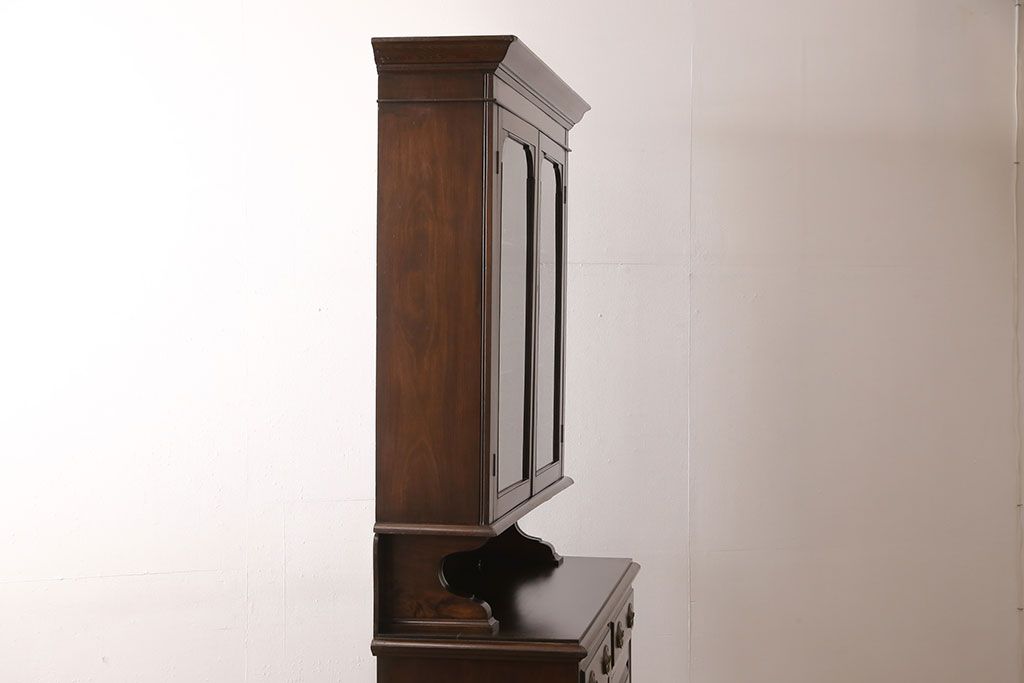 イギリスアンティークのカップボードをリペア&カスタム!棚板をガラス棚板に変更し、照明を取り付け。下段は棚板と背板を取り外し。(カップボード、陳列棚)
