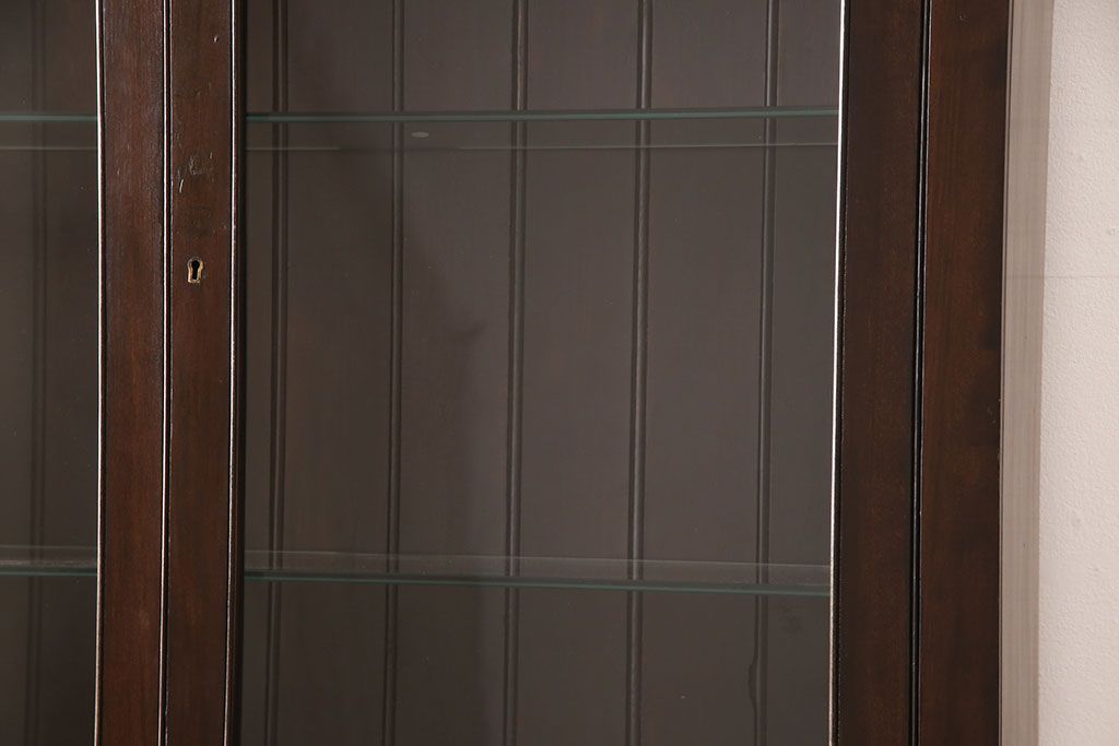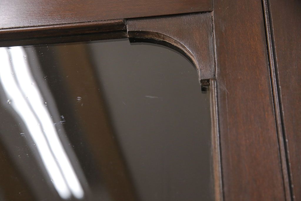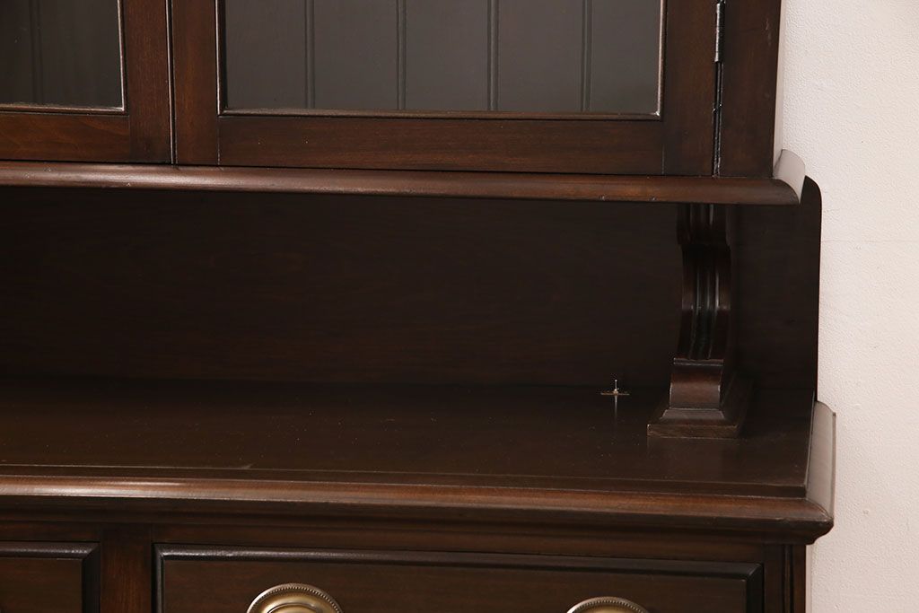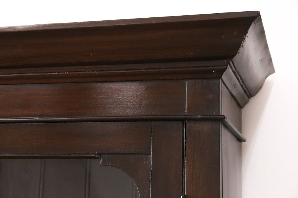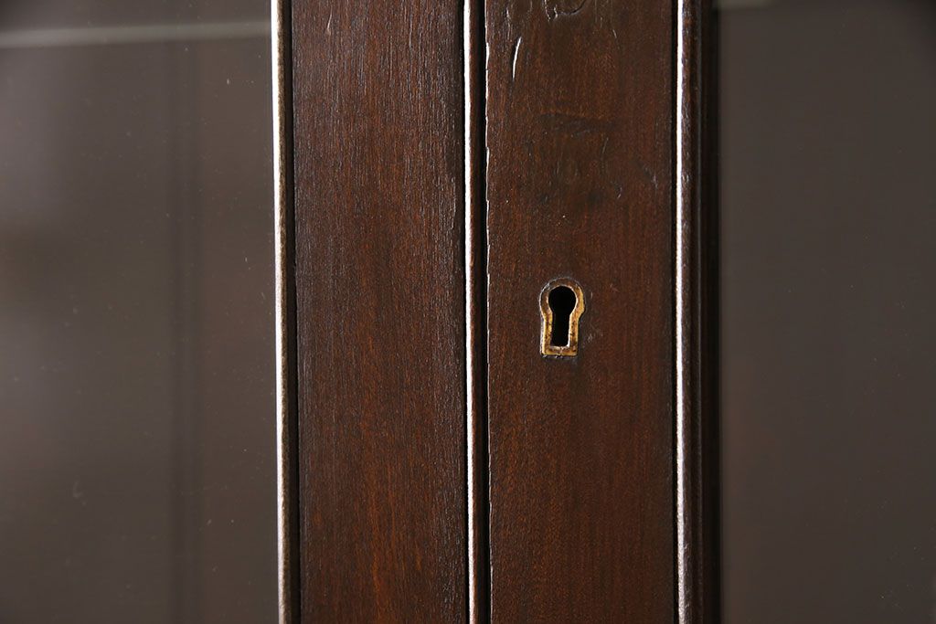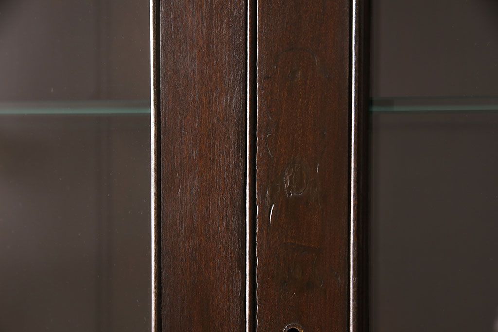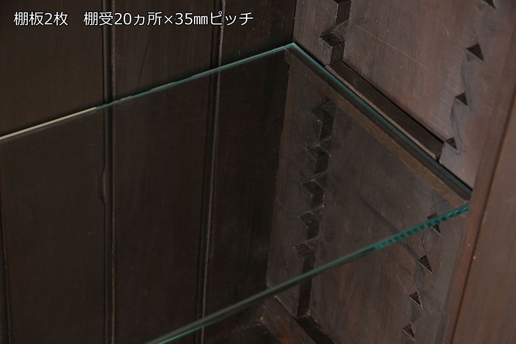 イギリスアンティークのカップボードをリペア&カスタム!棚板をガラス棚板に変更し、照明を取り付け。下段は棚板と背板を取り外し。(カップボード、陳列棚)