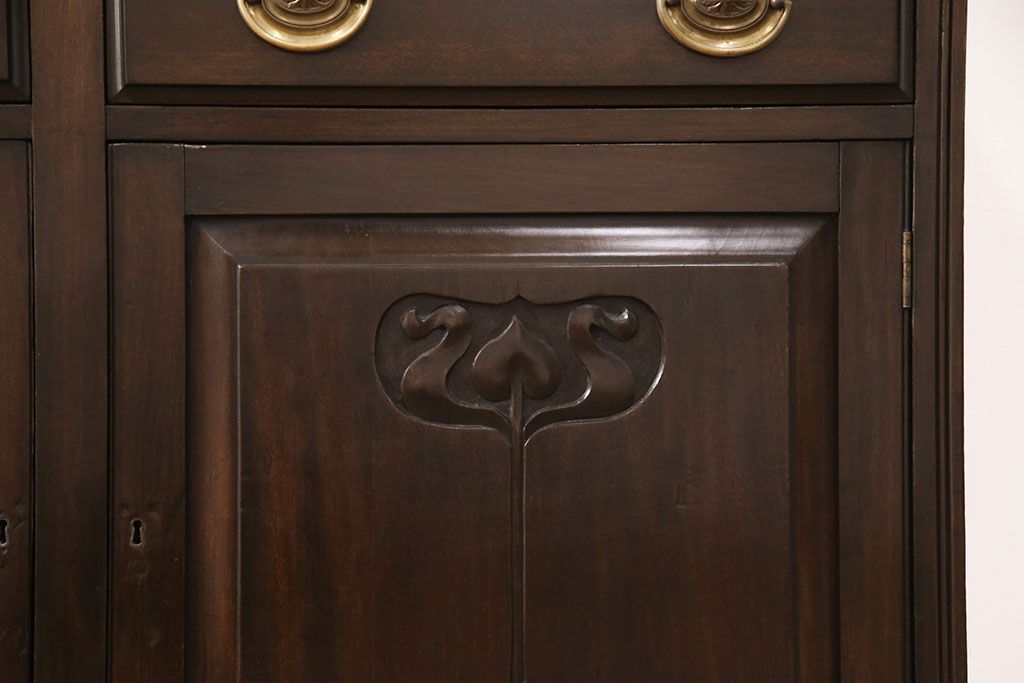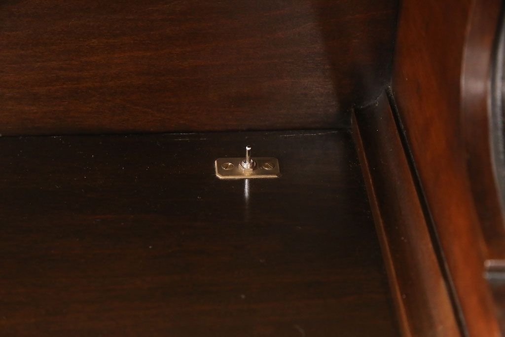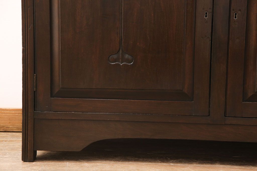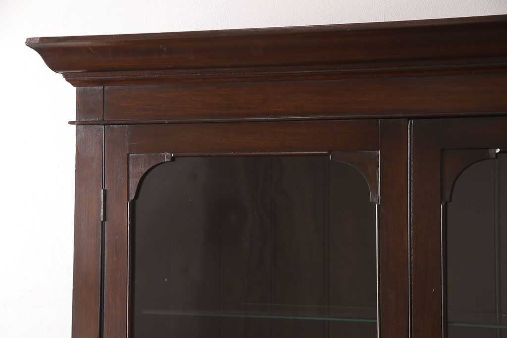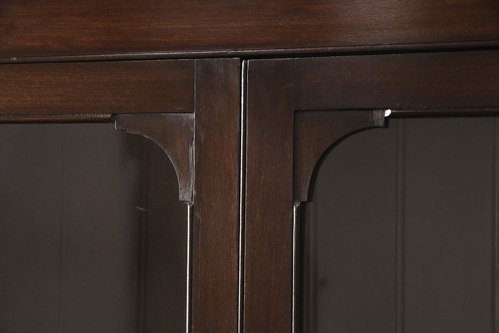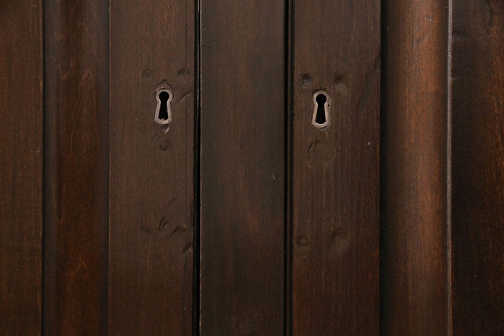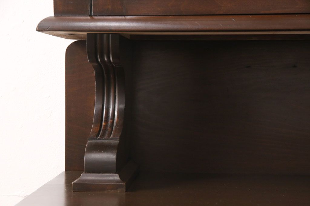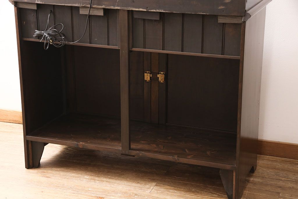イギリスアンティークのカップボードをリペア&カスタム!棚板をガラス棚板に変更し、照明を取り付け。下段は棚板と背板を取り外し。(カップボード、陳列棚)