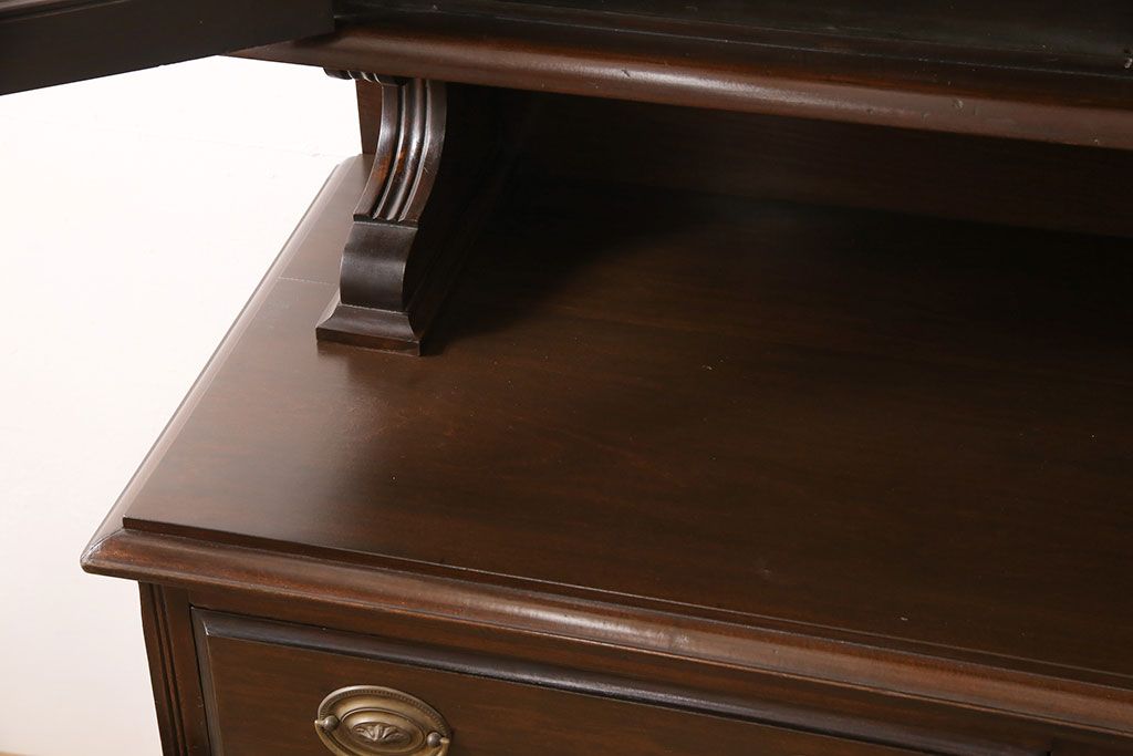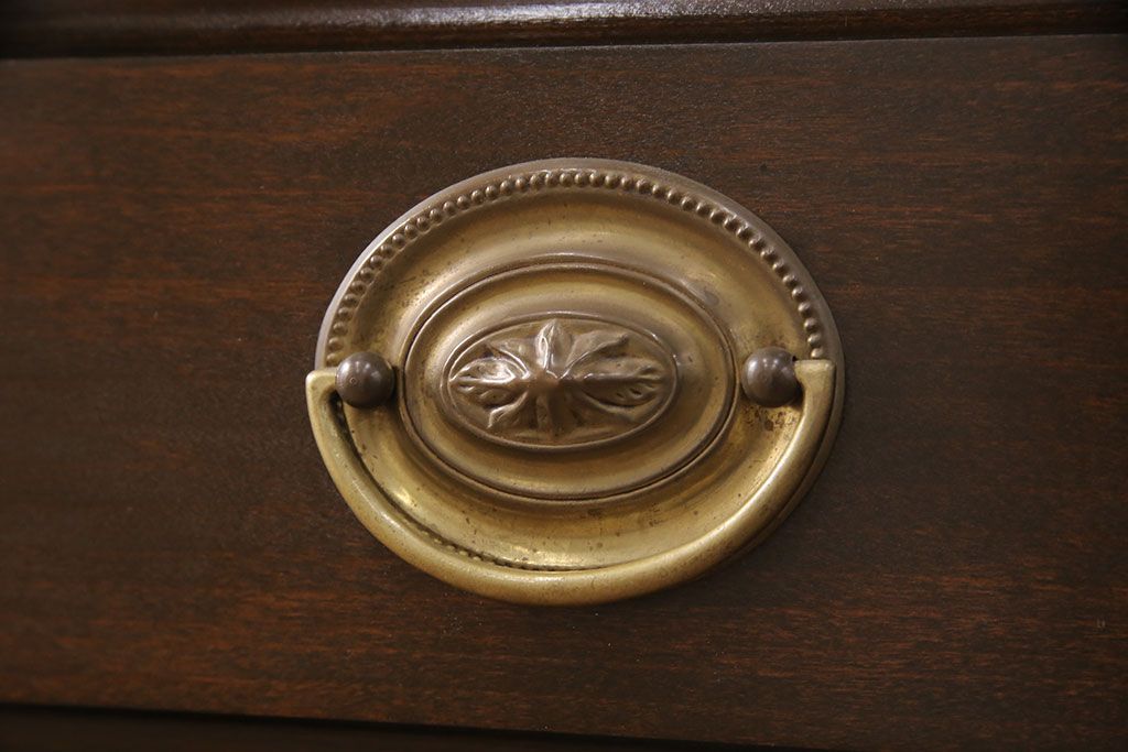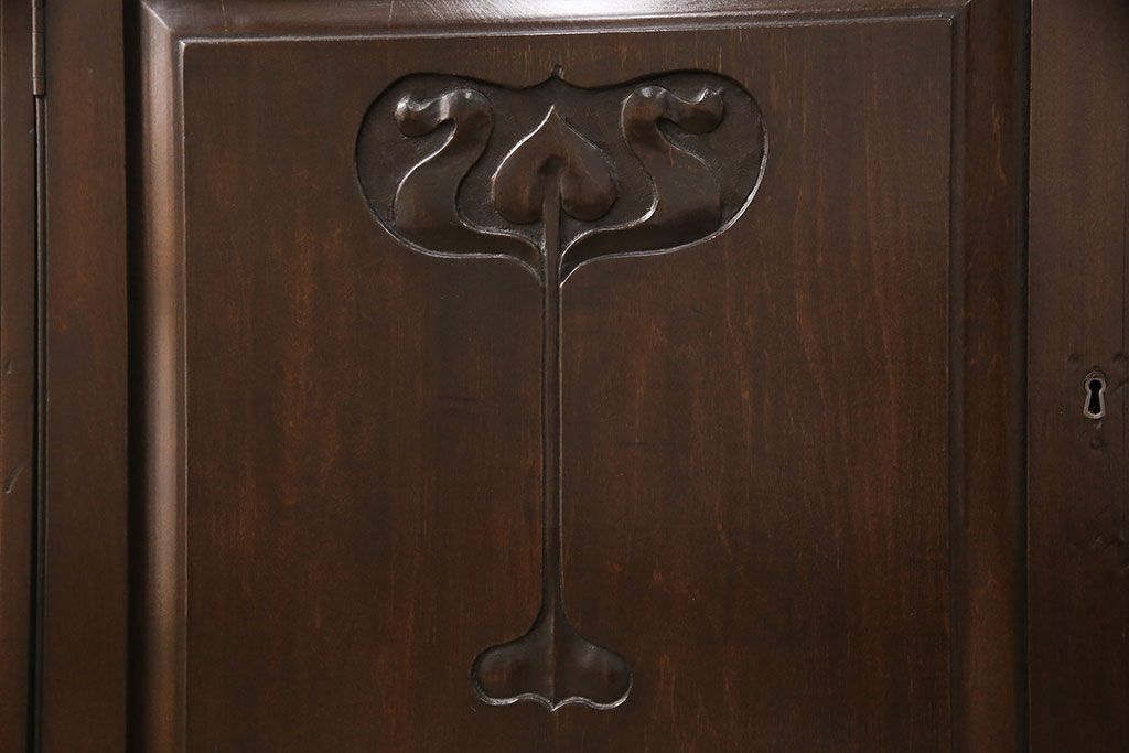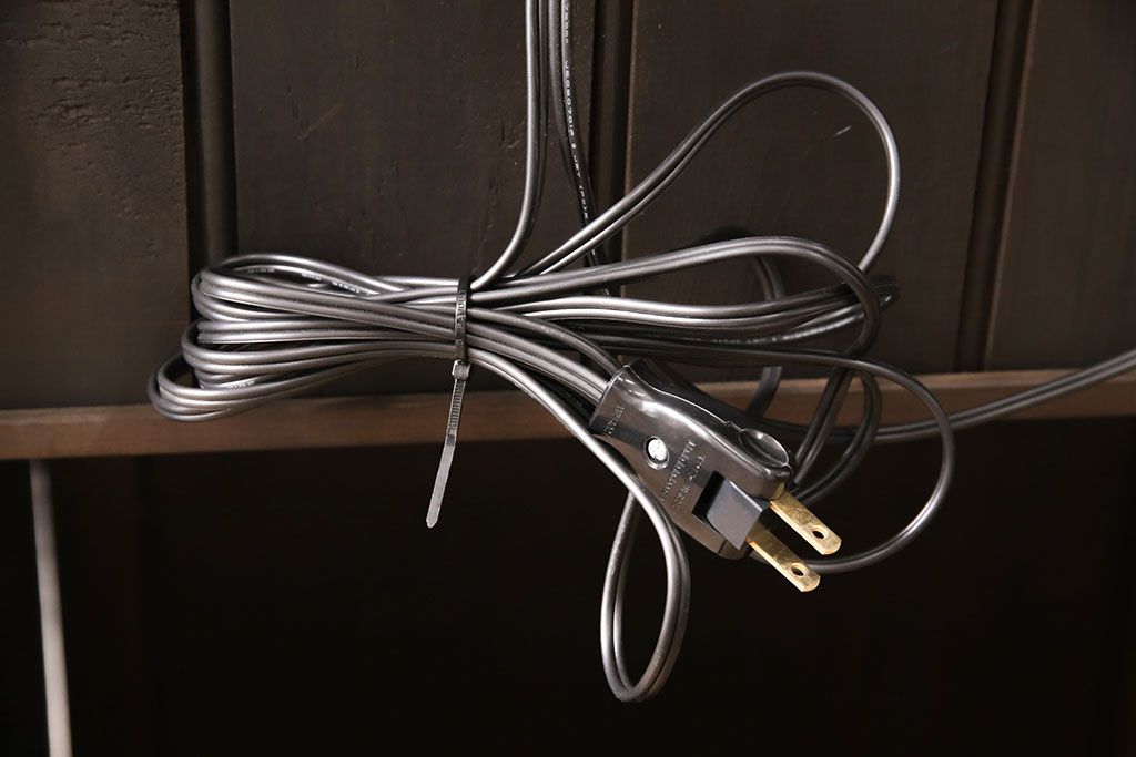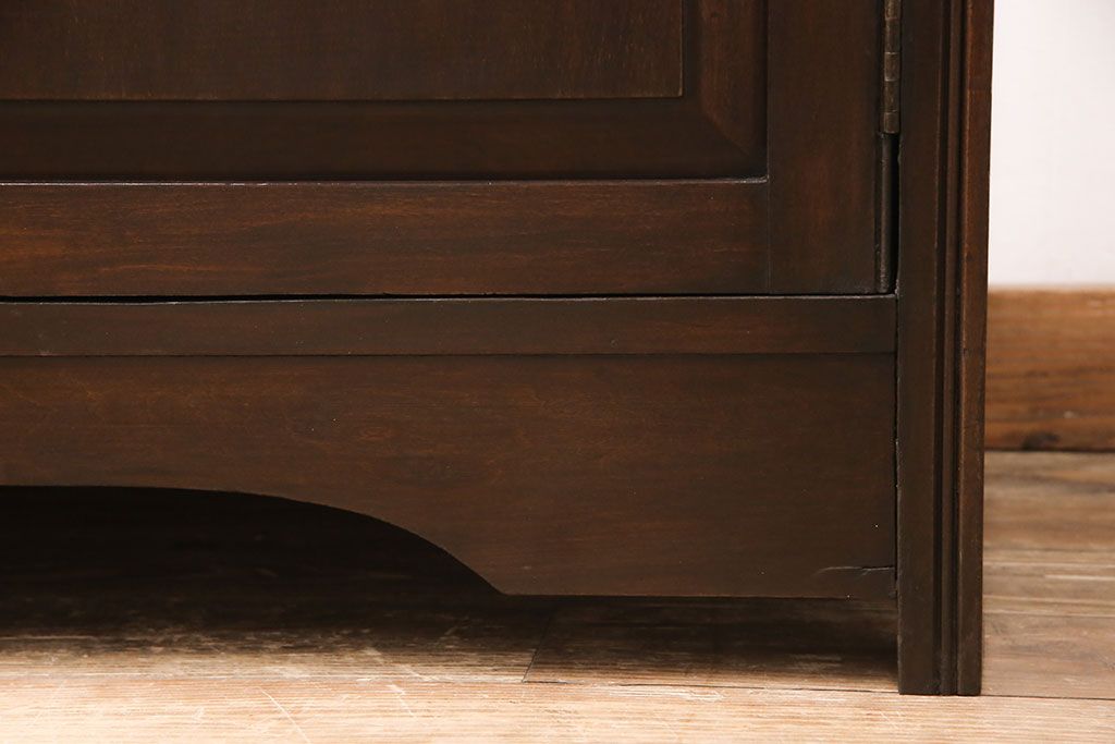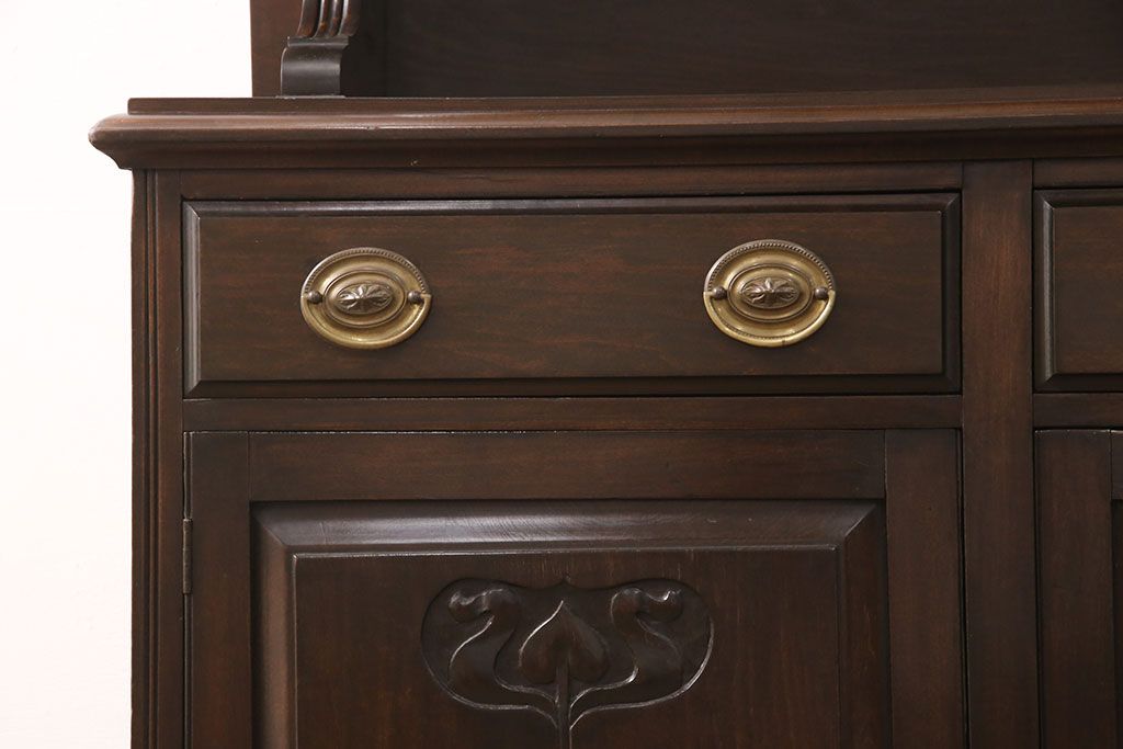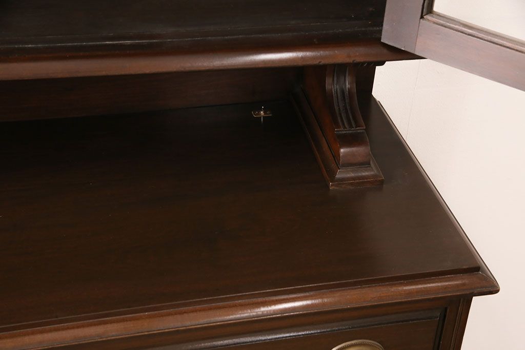 イギリスアンティークのカップボードをリペア&カスタム!棚板をガラス棚板に変更し、照明を取り付け。下段は棚板と背板を取り外し。(カップボード、陳列棚)