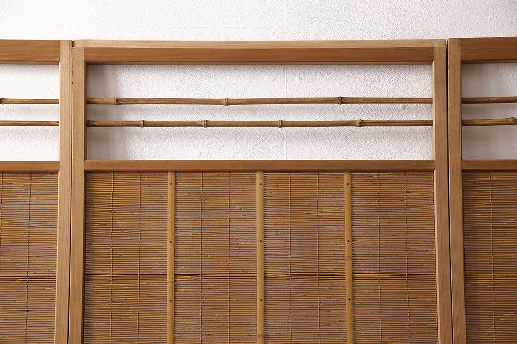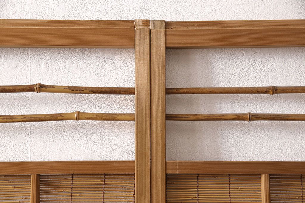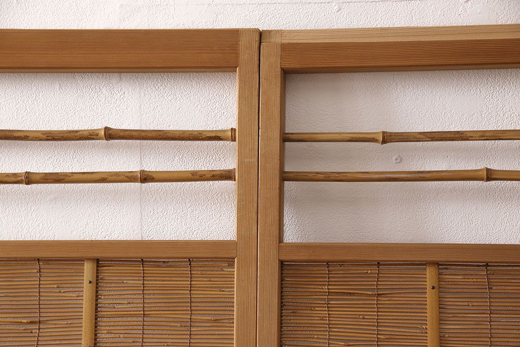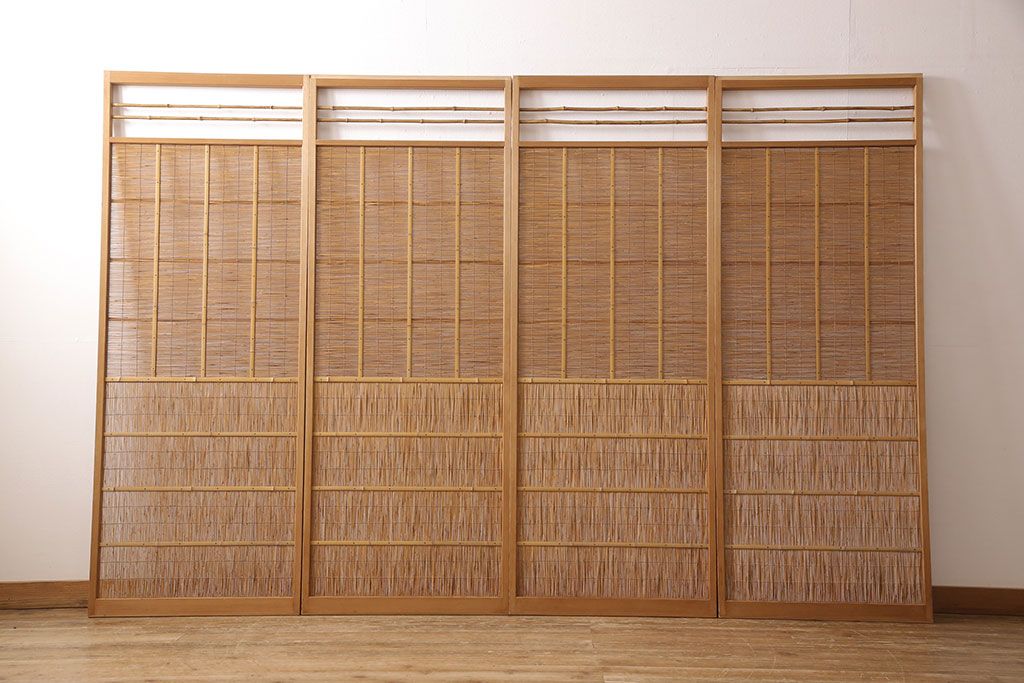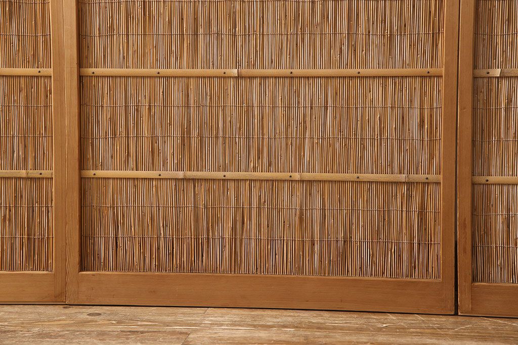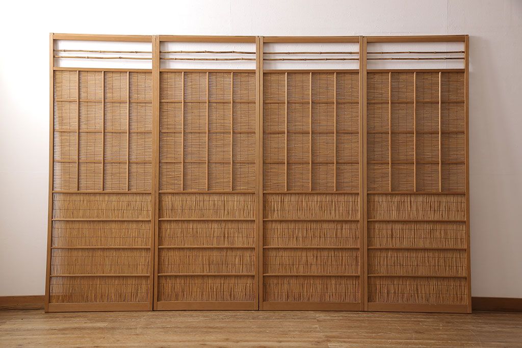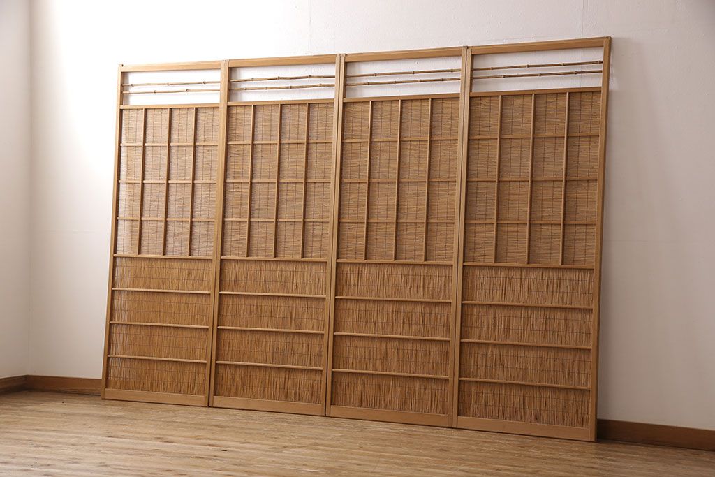 ドア・建具> 4枚〜セット > アンティーク御簾戸4枚セットをリペア&カスタム!高さをリサイズし、既存の鴨井・敷居で使えるよう加工。(建具、簀戸、夏障子)