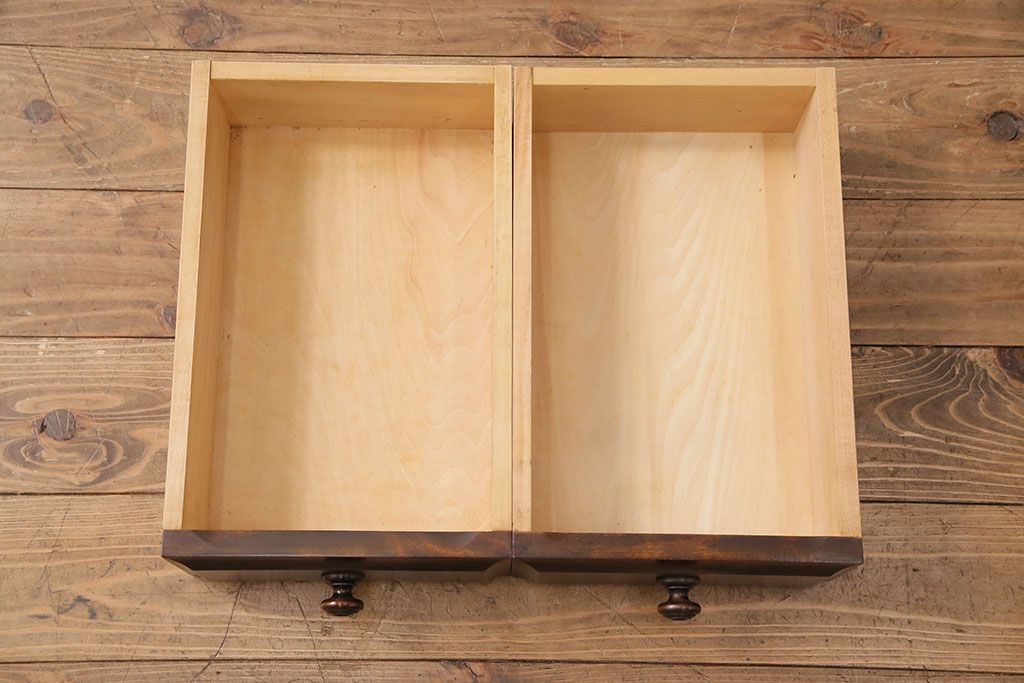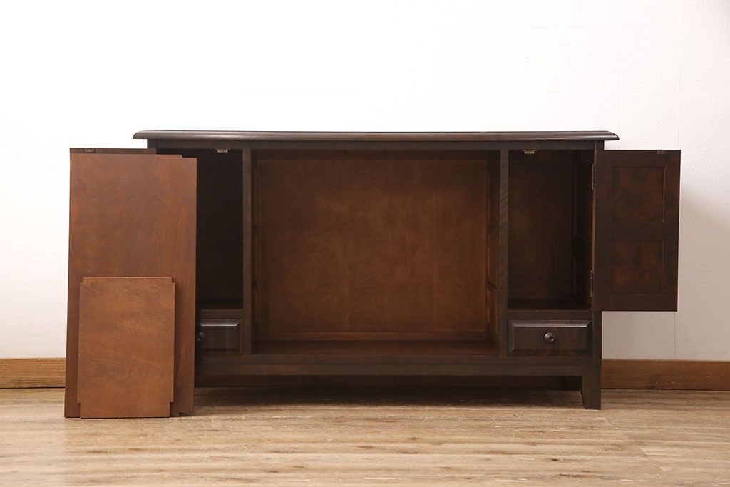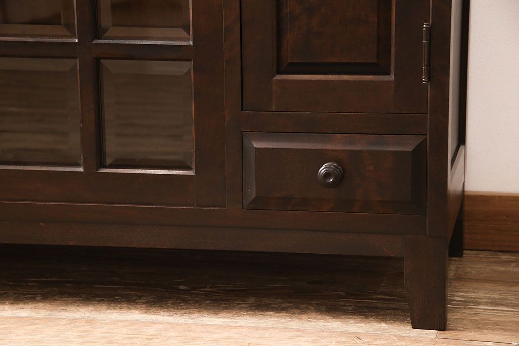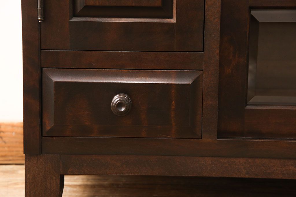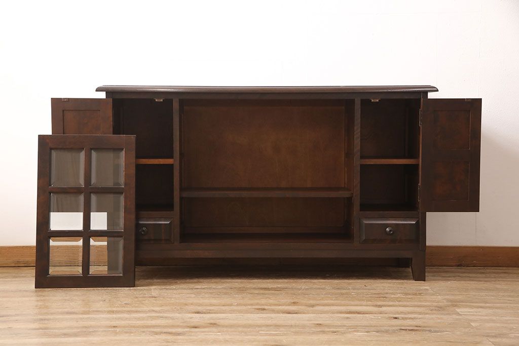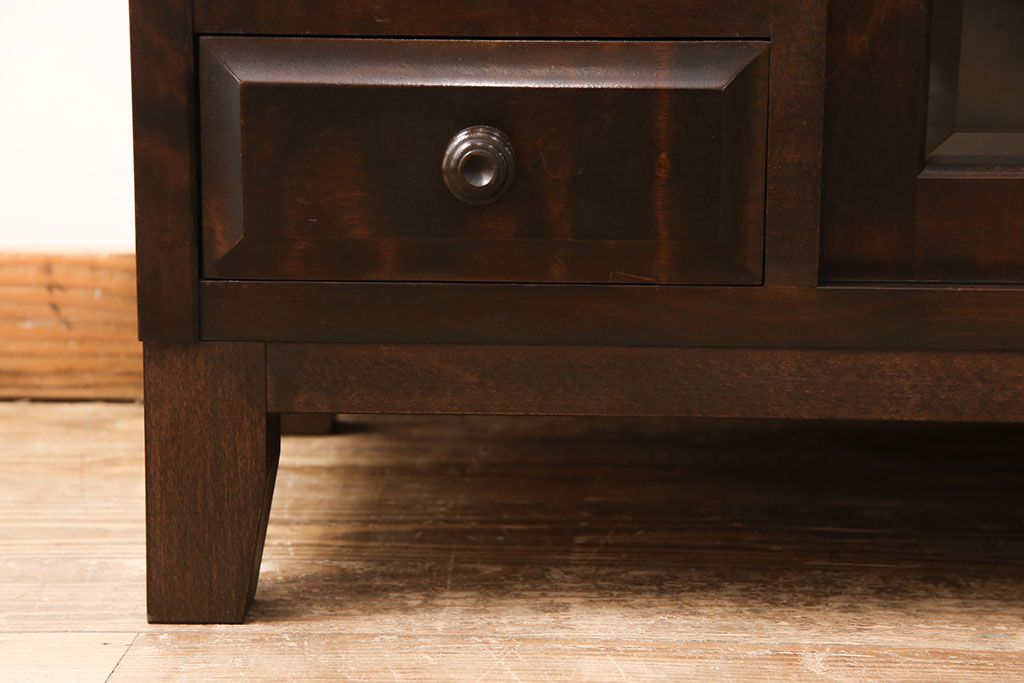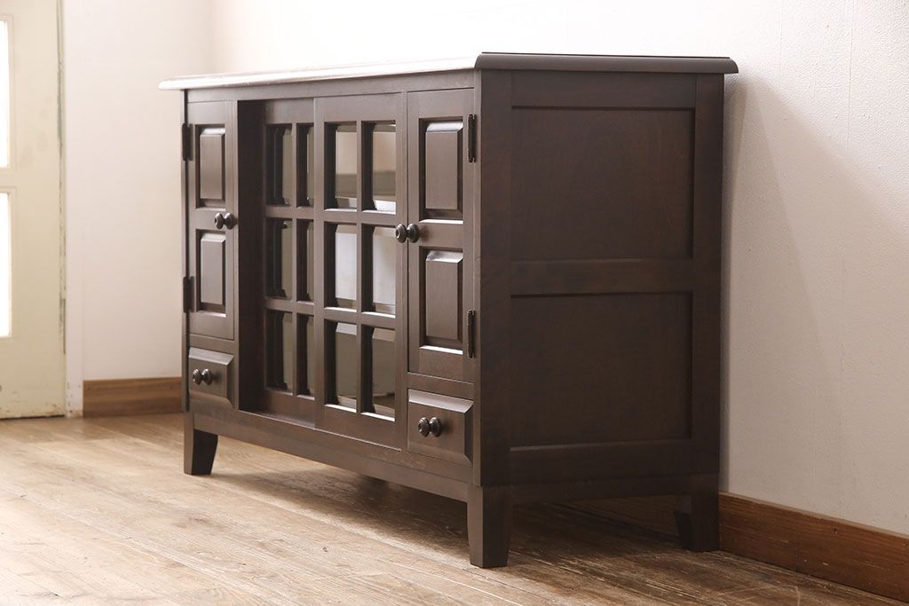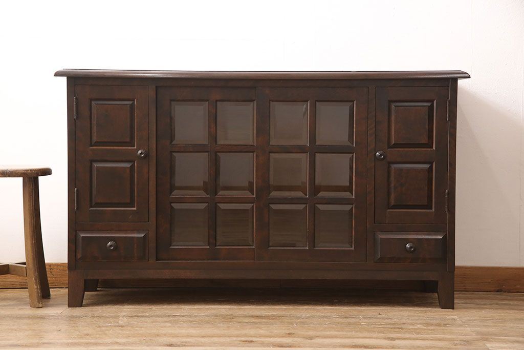 セミオーダー家具実績 > 北海道民芸家具のサイドボードをリペア&カスタム!木製脚を取り付け、本体の色に合わせて着色し仕上げ。(キャビネット、収納棚、リビングボード)