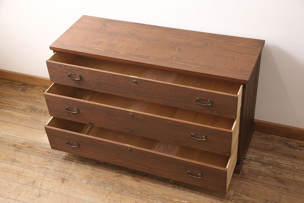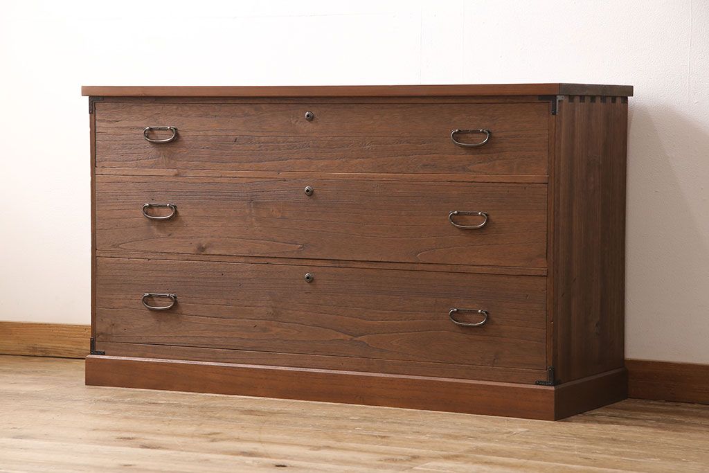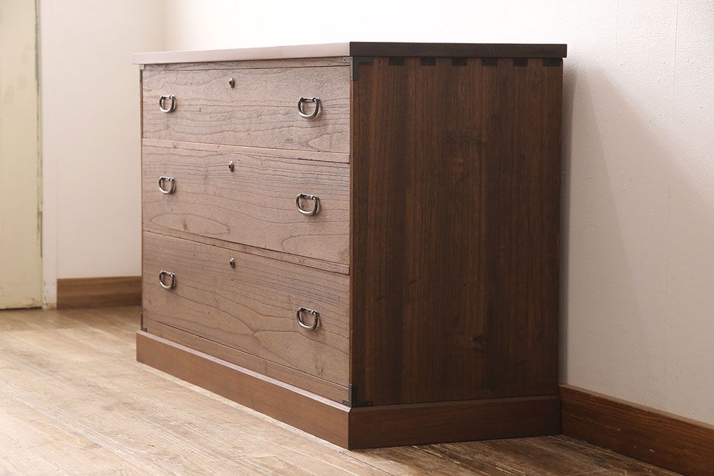 和箪笥> 衣装箪笥 > 桐箪笥をリペア&カスタム!天板と台輪を取り付けローボードにリメイク。明るめの茶色に着色し仕上げ。(ローチェスト、テレビ台)