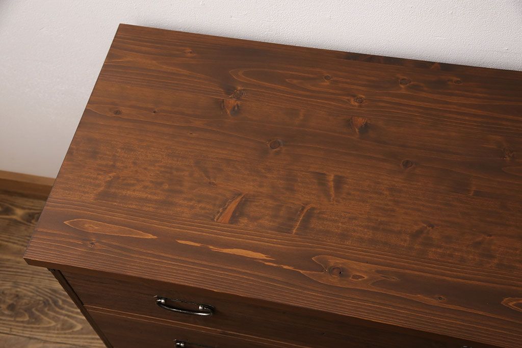 和箪笥 > 桐箪笥をリペア&カスタム!天板と台輪を取り付けローボードにリメイク。明るめの茶色に着色し仕上げ。(ローチェスト、テレビ台)