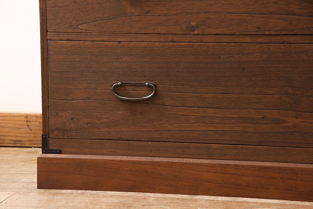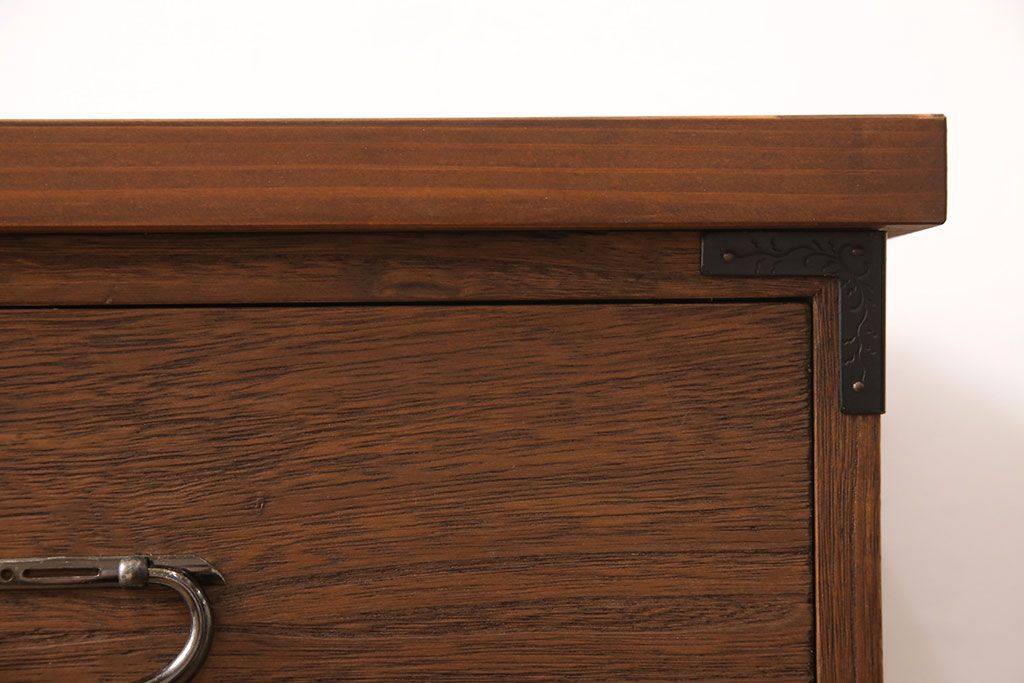 セミオーダー家具実績 > 桐箪笥をリペア&カスタム!天板と台輪を取り付けローボードにリメイク。明るめの茶色に着色し仕上げ。(ローチェスト、テレビ台)
