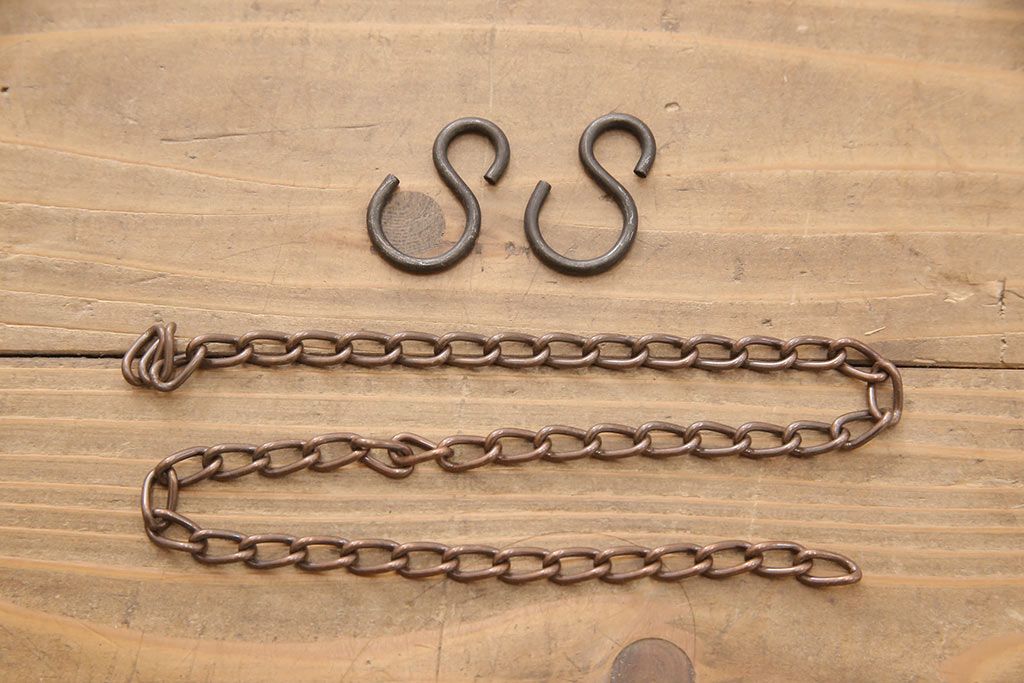 ◆鏡本体の裏面に壁掛け用金具およびチェーンを取り付け