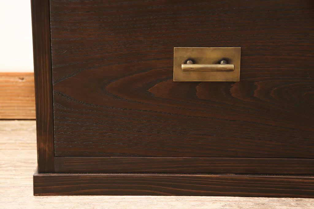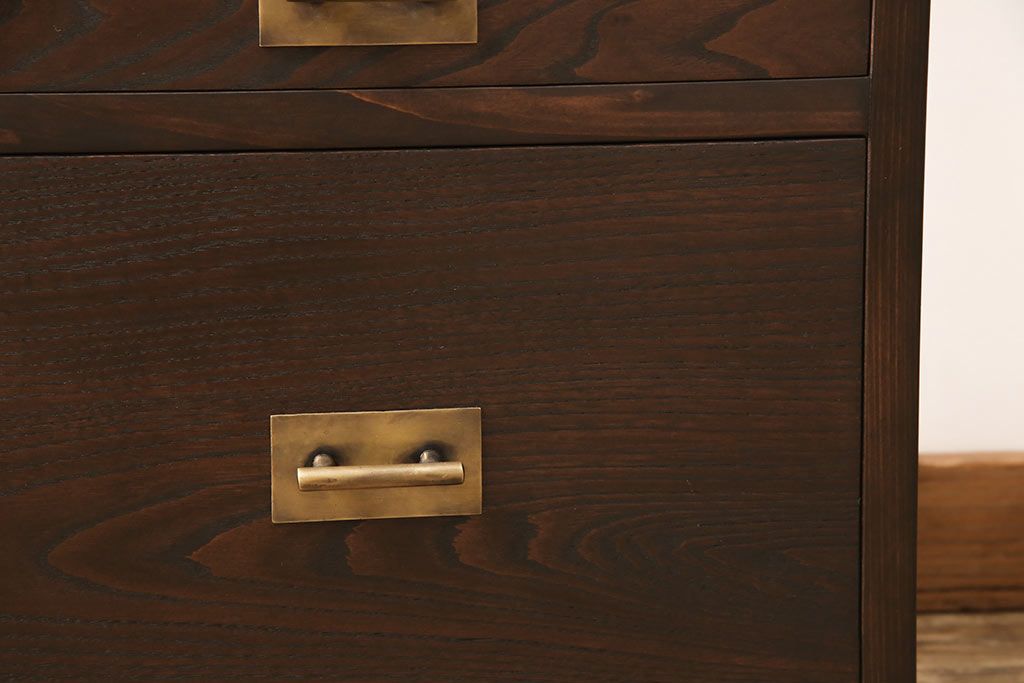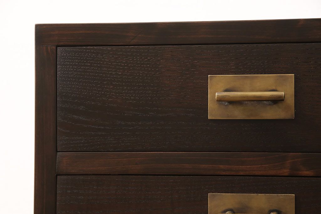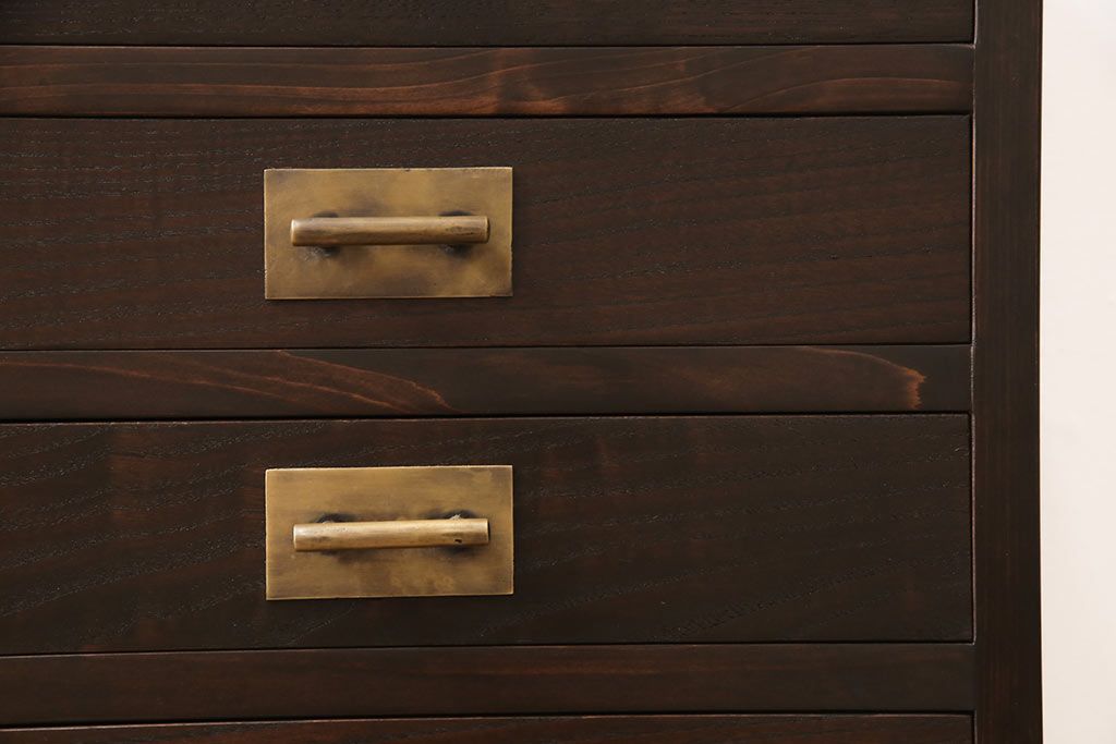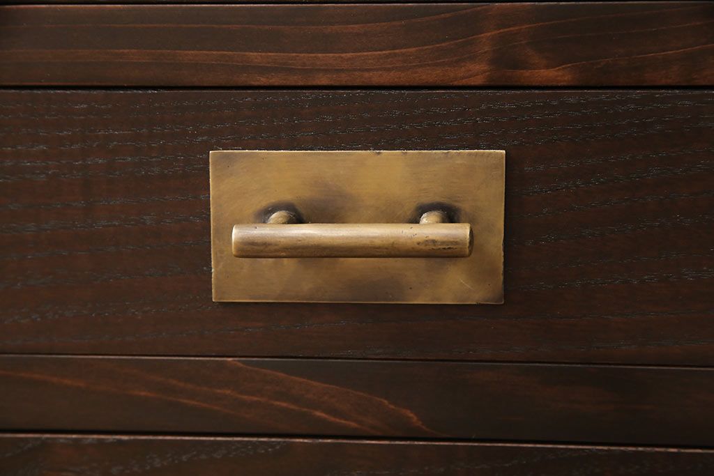 小引き出しを新規製作!引手にお客様支給の真鍮製引手を使用。(サイドチェスト)